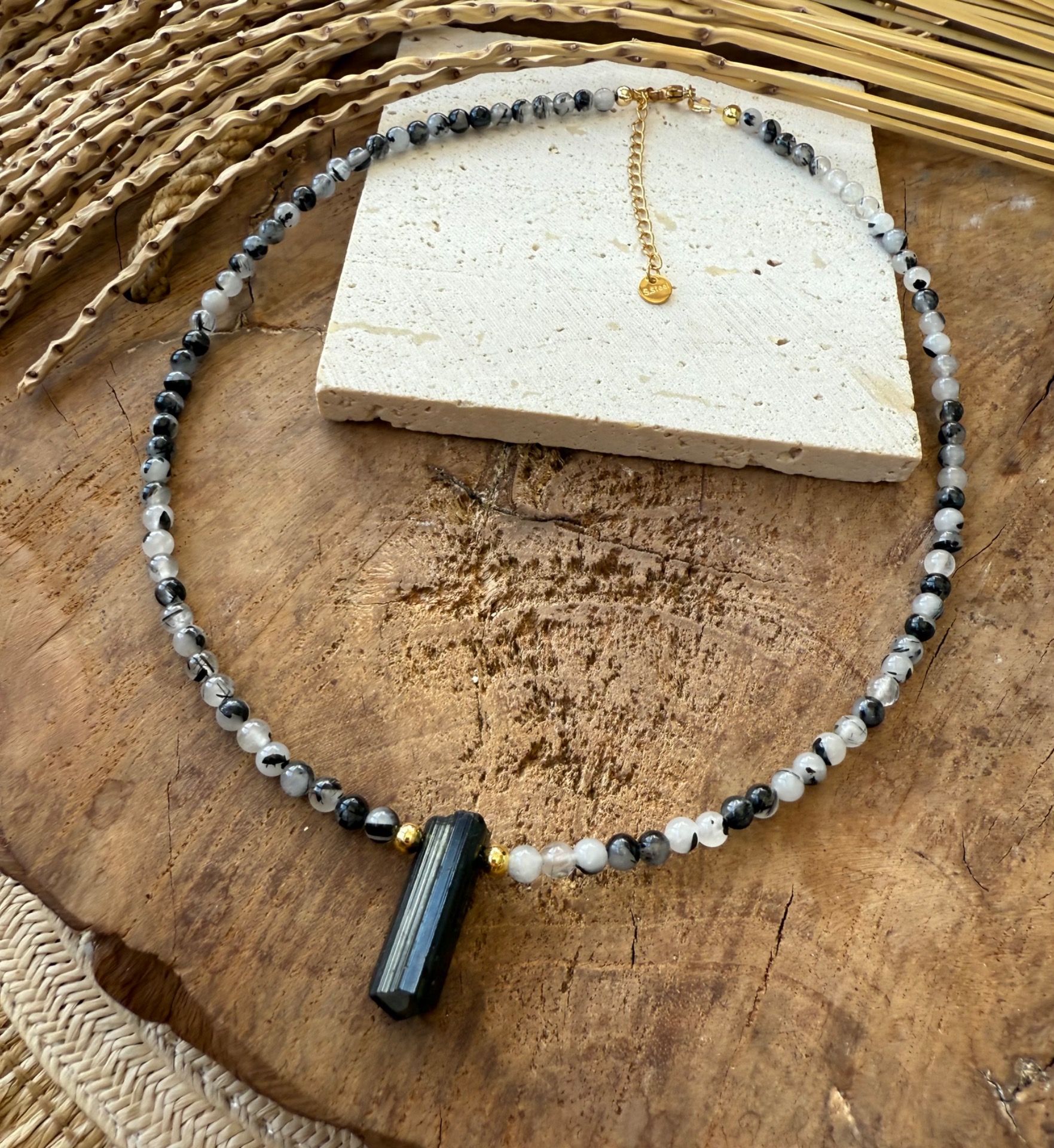 Choker z minerálu turmalín čierny skoryl + krištáľ s vrasteným turmalínom - ochranný sprievodca 60,00 € 0,00 €