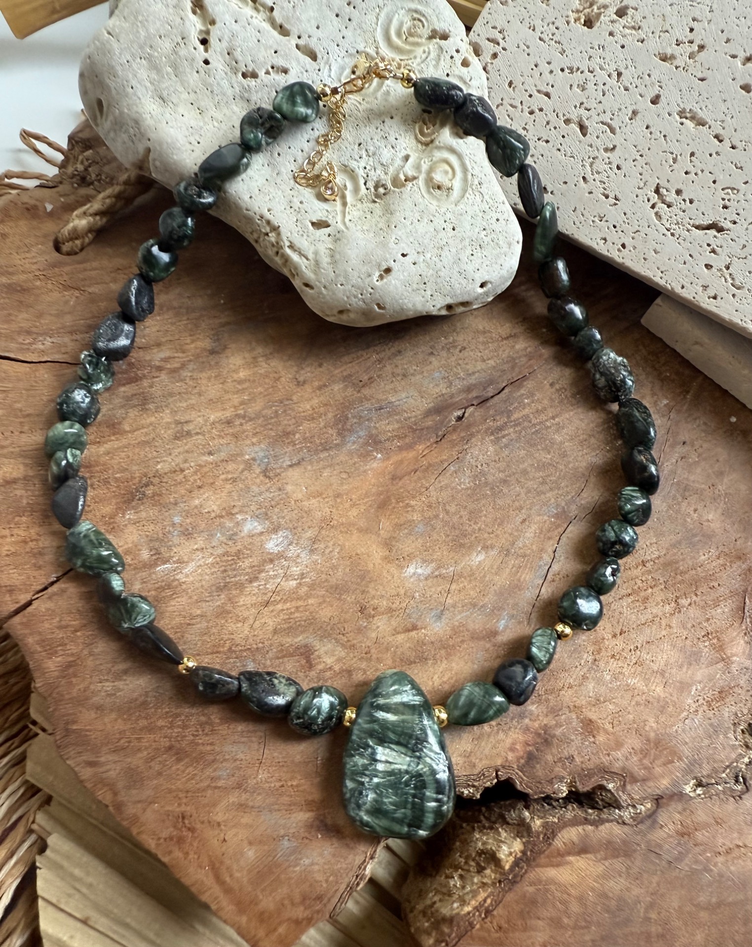 Choker náhrdelník z minerálu prírodný malachit + krištáľ horský -múdrosť duše Vypredané 50,00 € 0,00 €