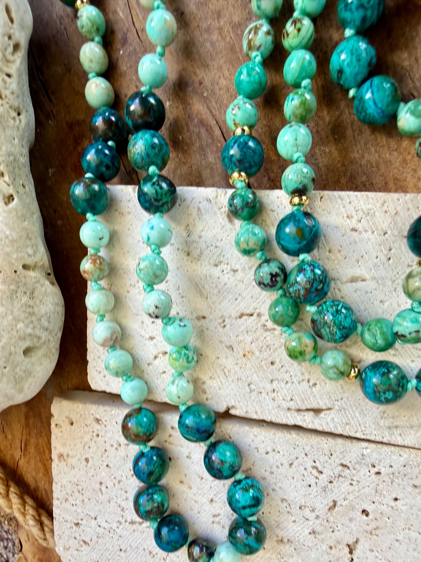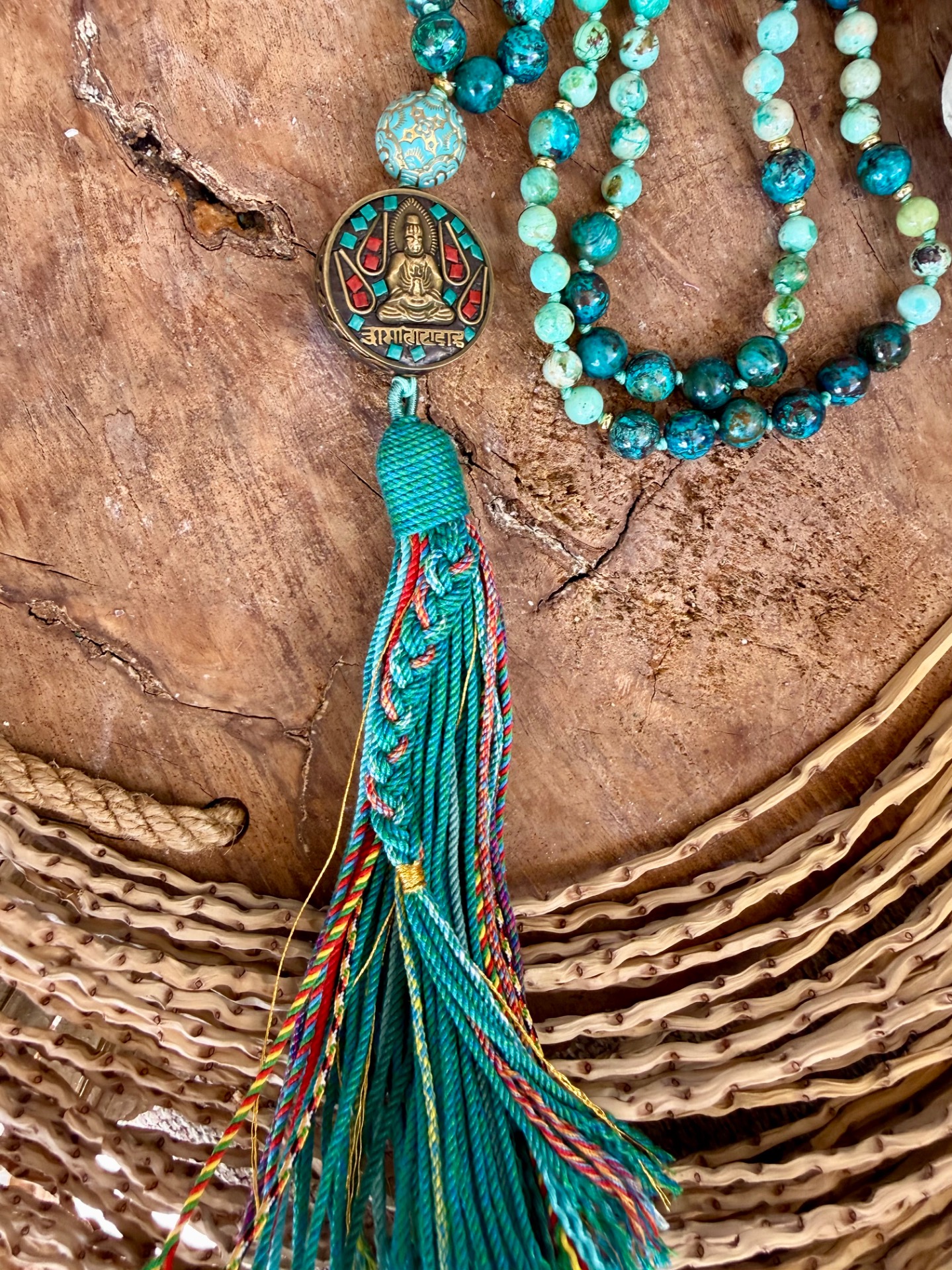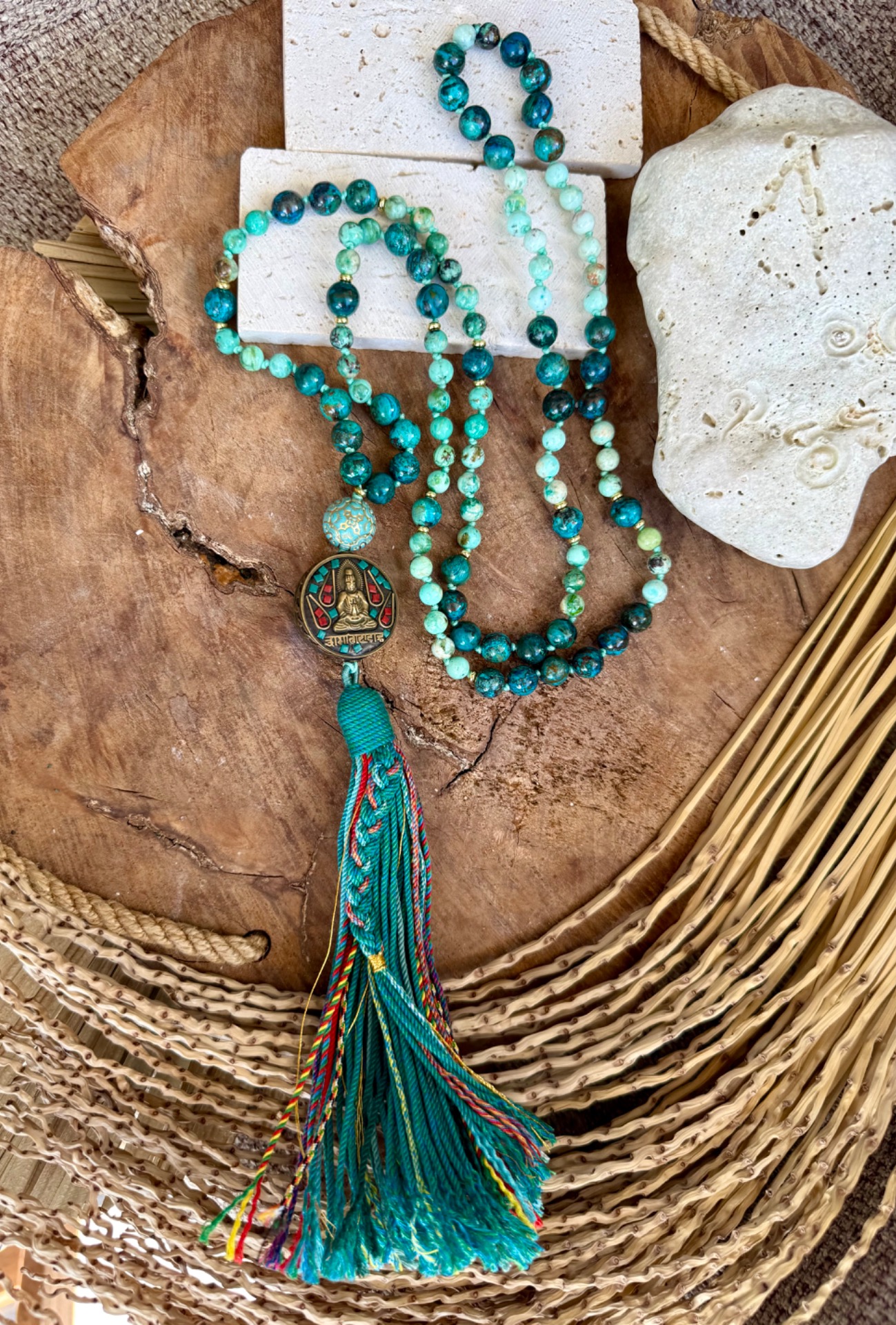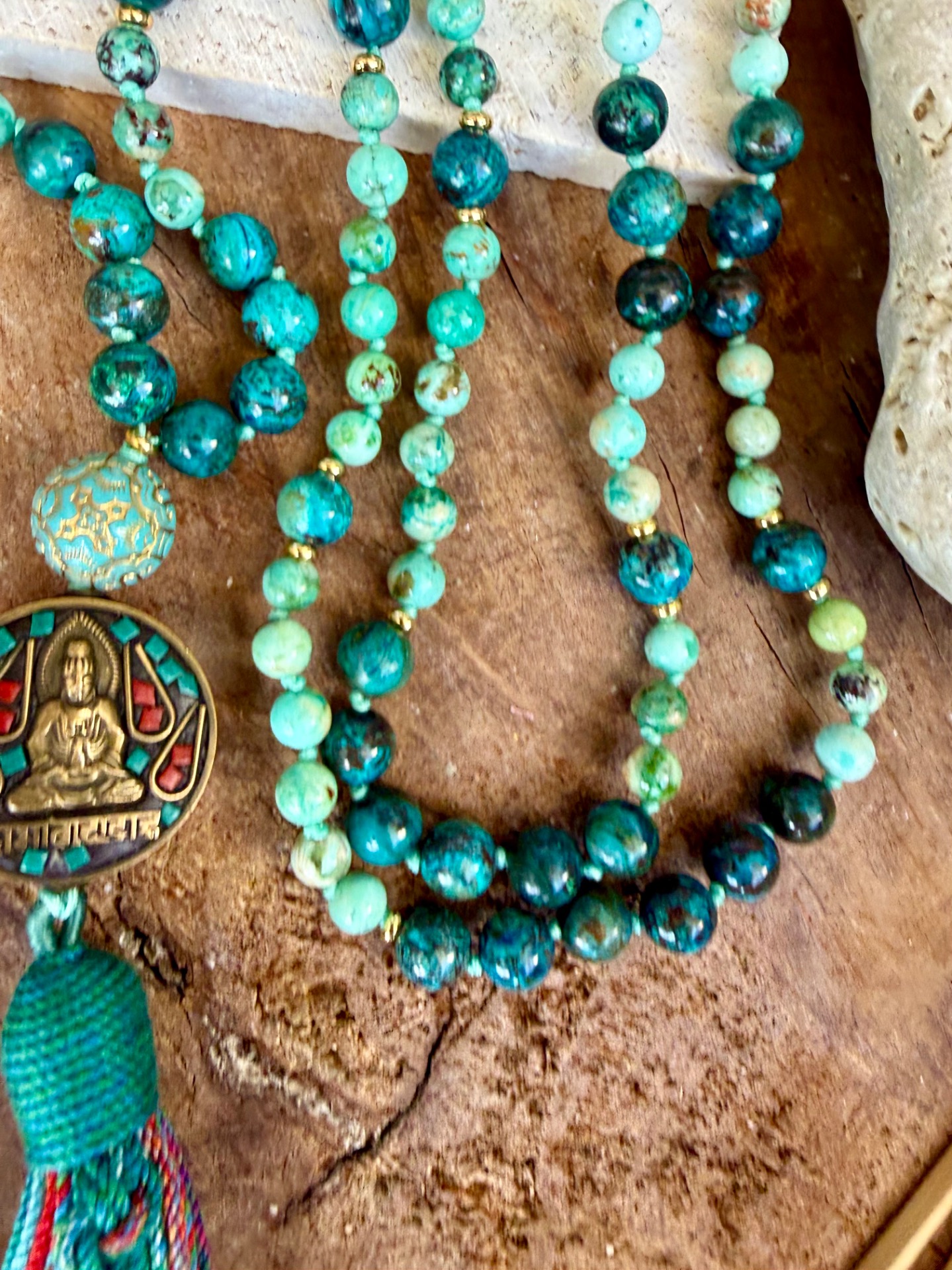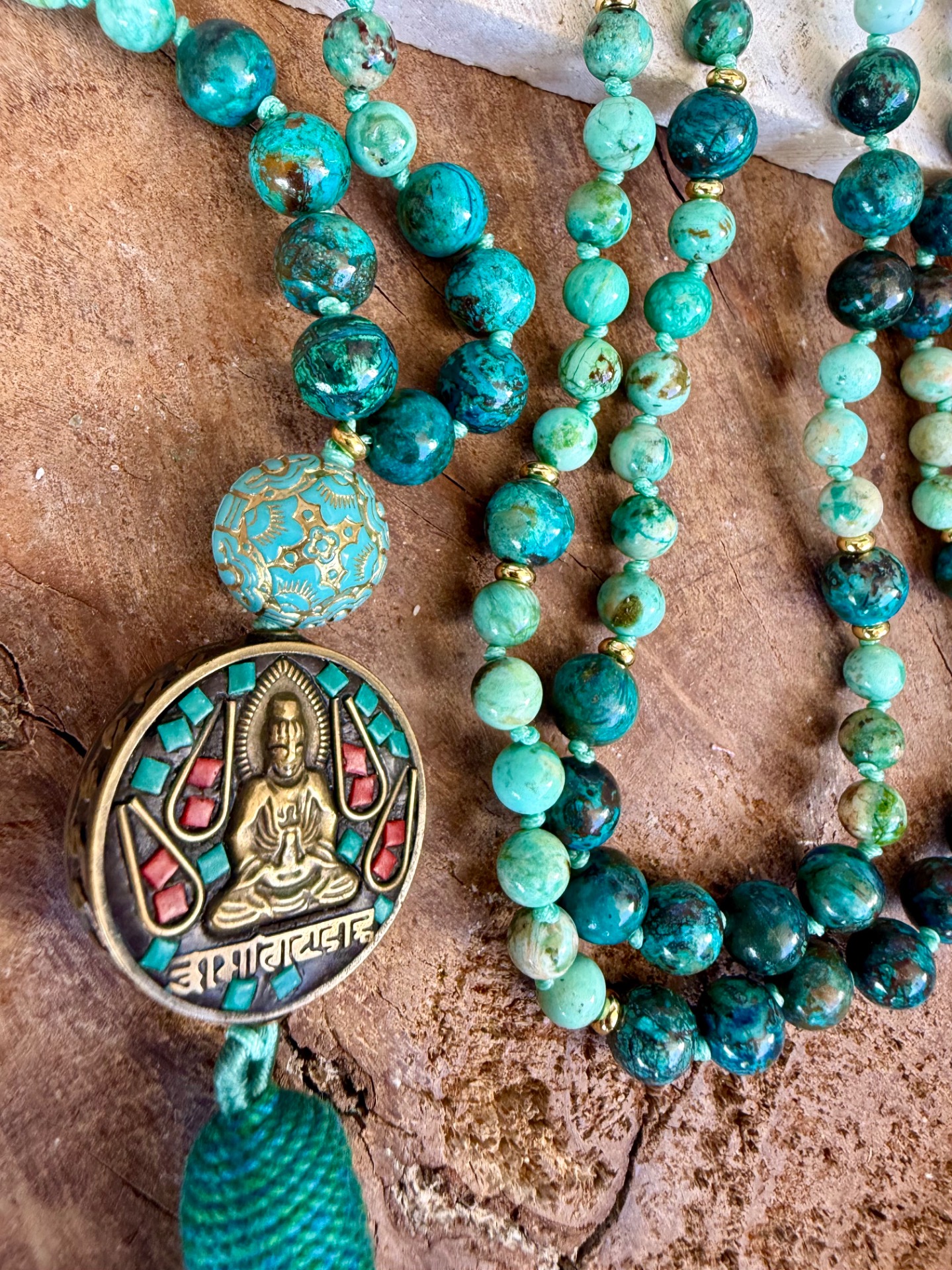 Buddhov pokoj" – japa mala náhrdelník z chryzokolu AAA+ a tyrkysu Peru