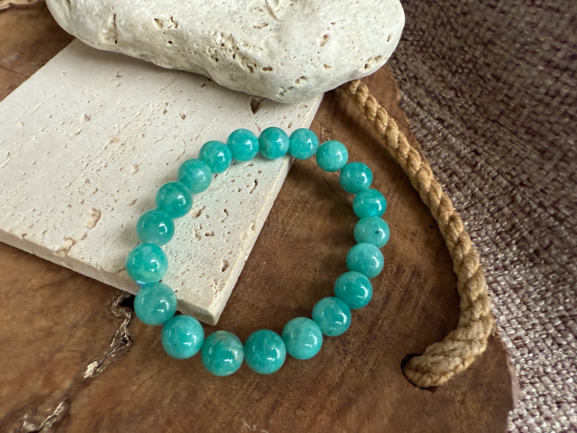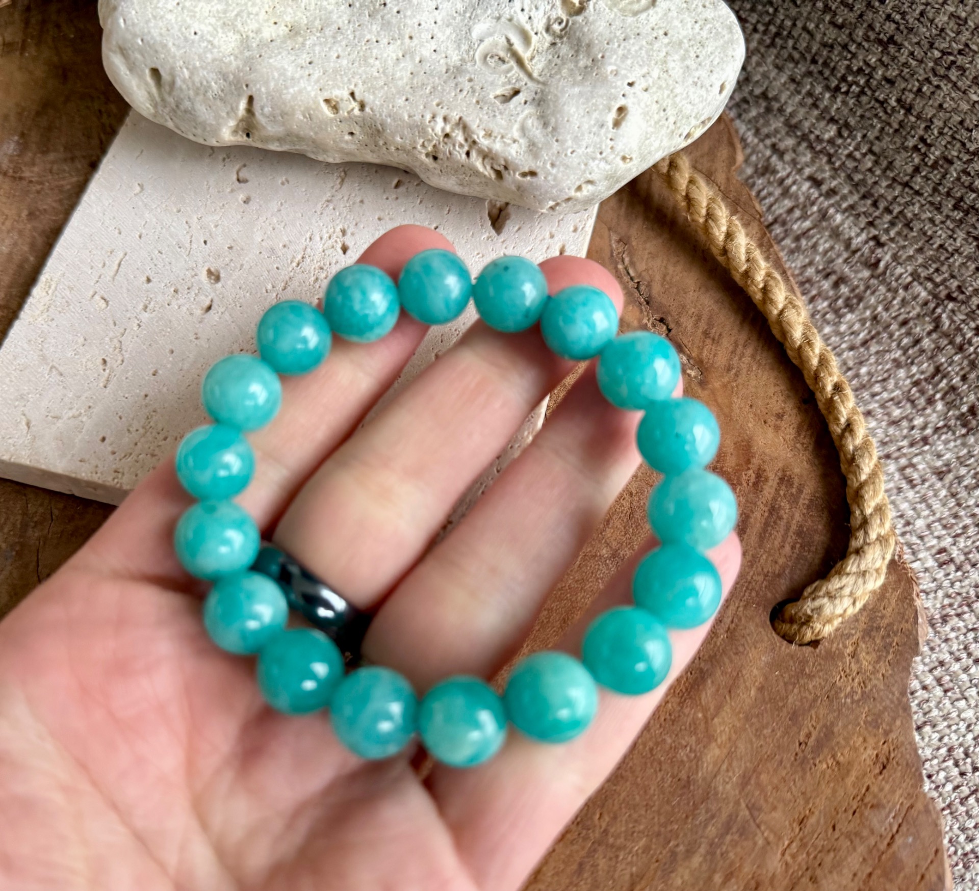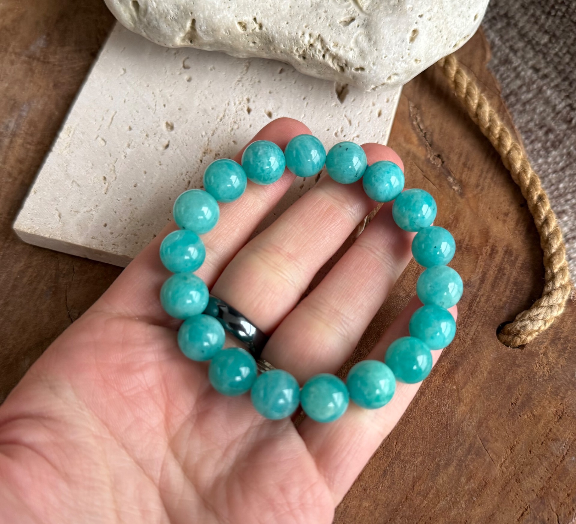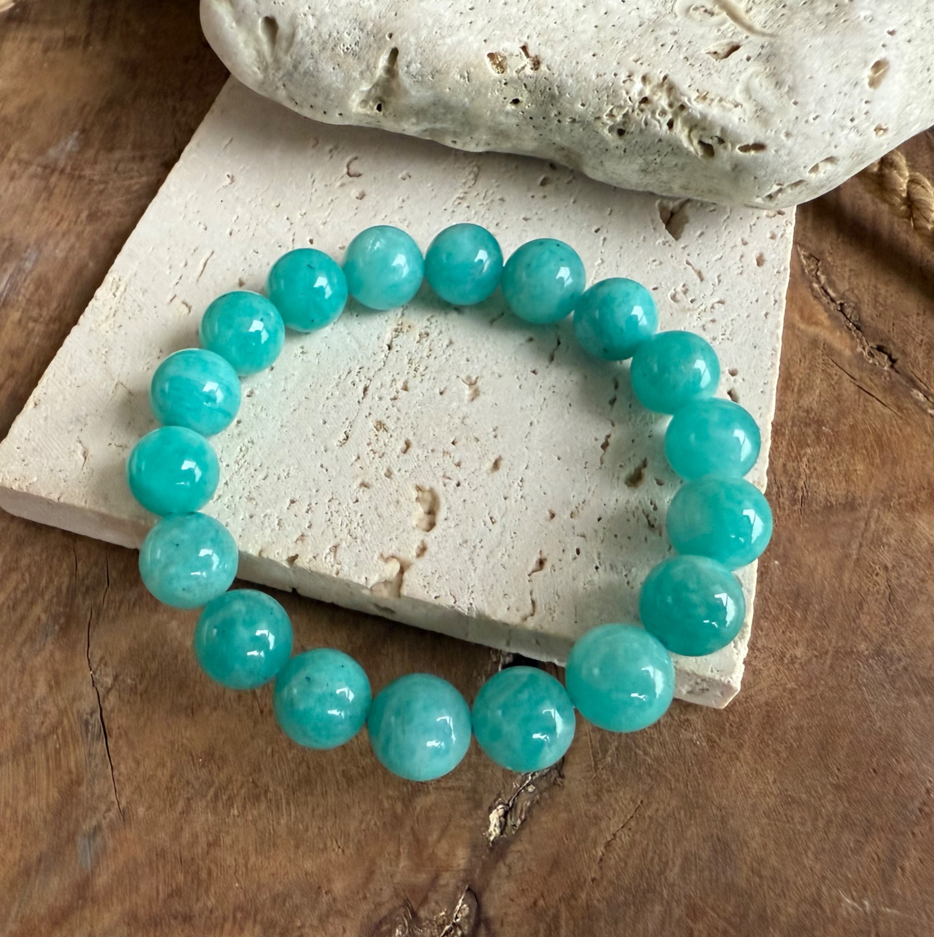 Amazonit je kameň vnútornej rovnováhy, pravdy a jemnej sily. Pomáha utišiť myseľ, uvoľniť emócie a podporuje sebavyjadrenie, pokoj a dôveru v seba. Je ideálnym spoločníkom pre ženy, ktoré chcú žiariť pokojnou, prirodzenou a autentickou energiou.
