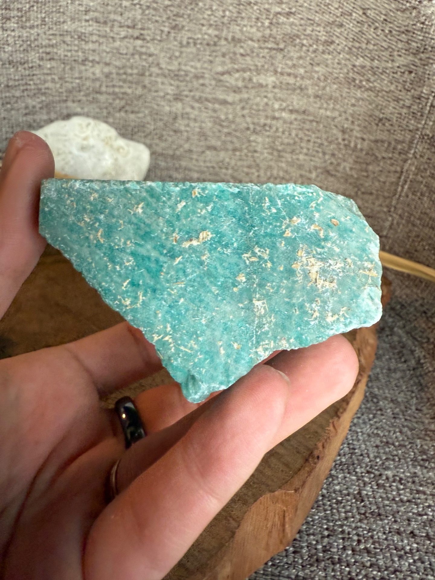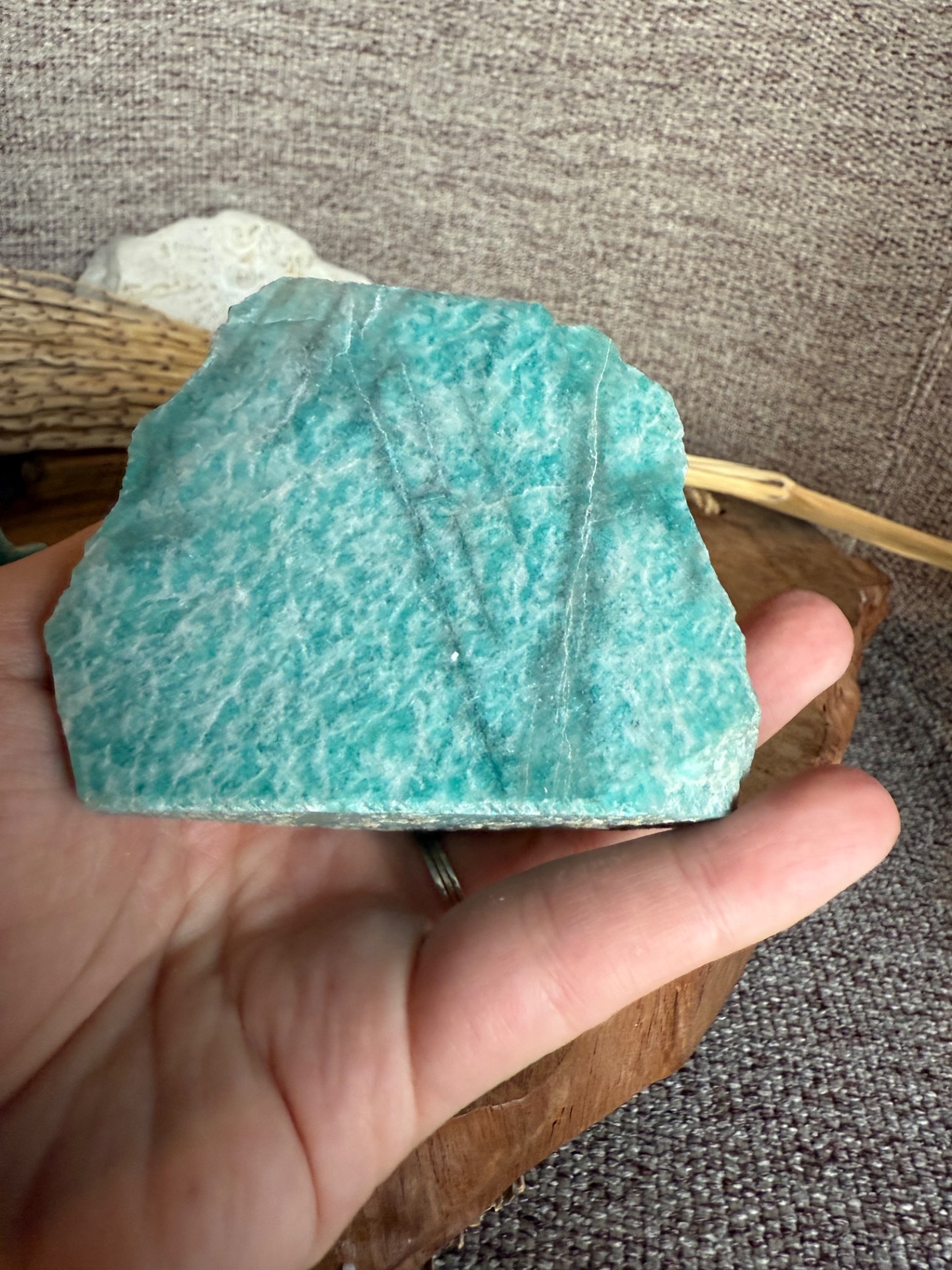 Pôvod a vznik: Amazonit je prírodný minerál, známy svojou jemnou energiou a krásnymi tyrkysovo-zelenými tónmi. Každý kameň nesie energiu zeme a zachováva autentickosť prírodného tvaru.