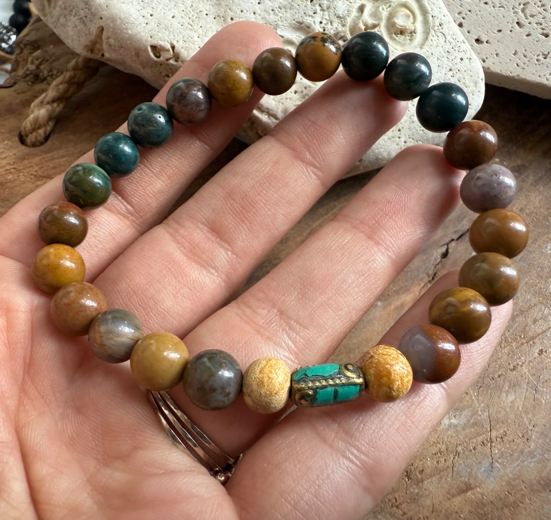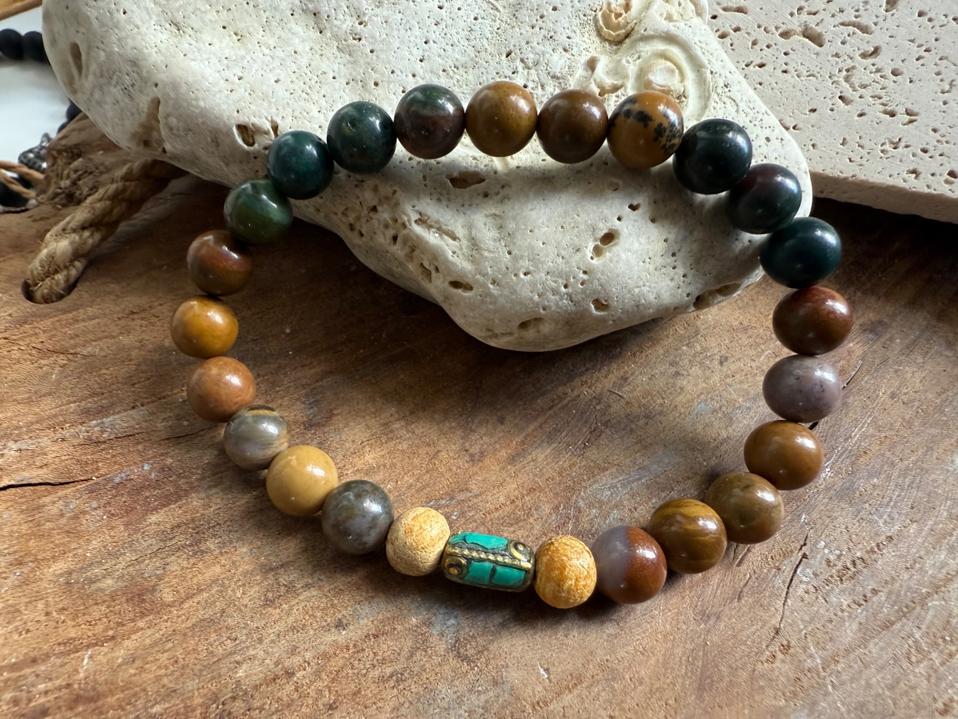 Náramok Dych zeme ťa spája s energiou prírody – ukotvuje, chráni a pripomína, že pokoj pramení v jednoduchosti bytia.