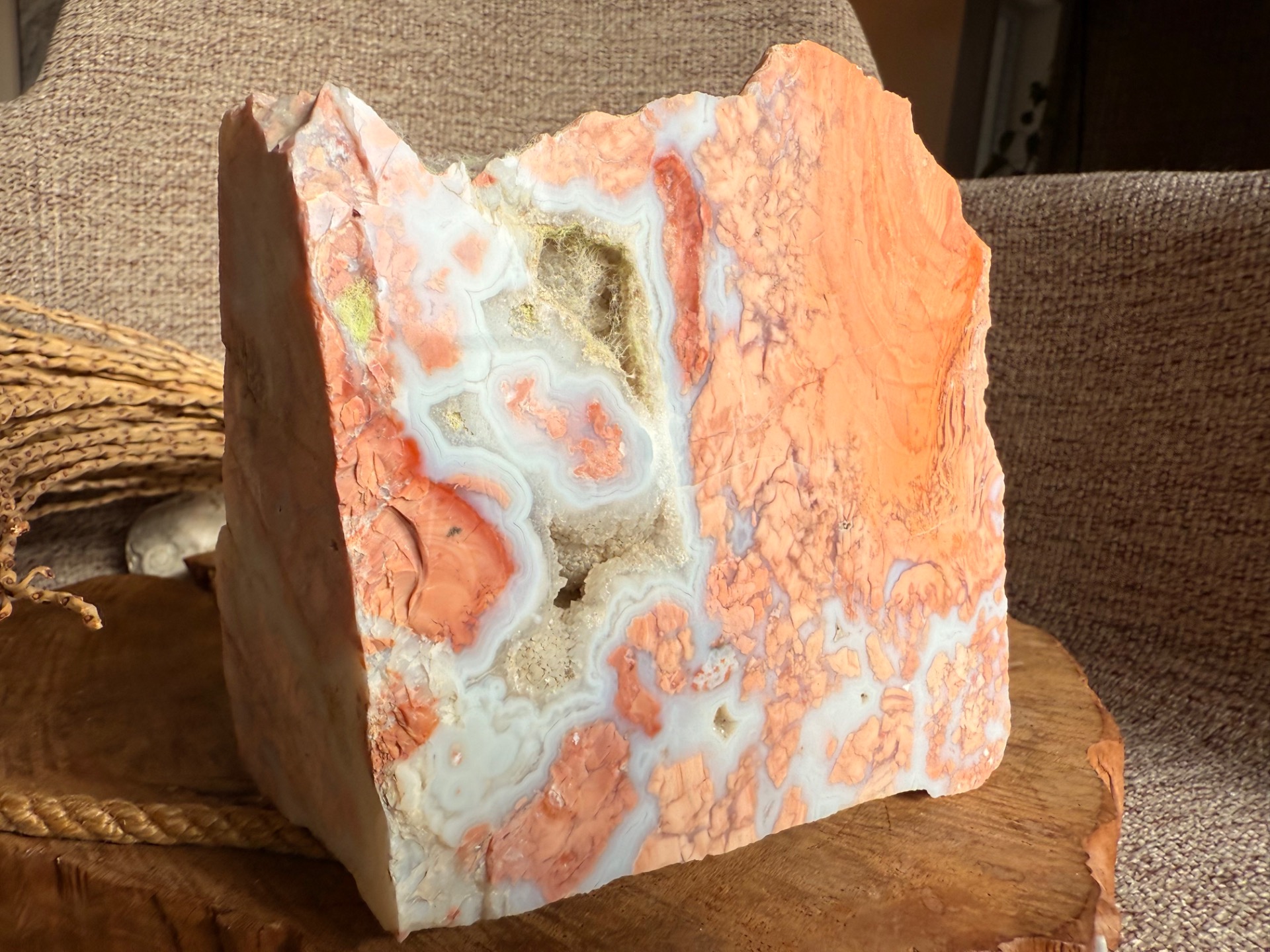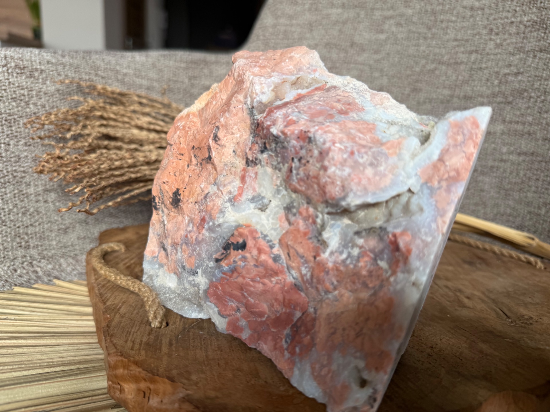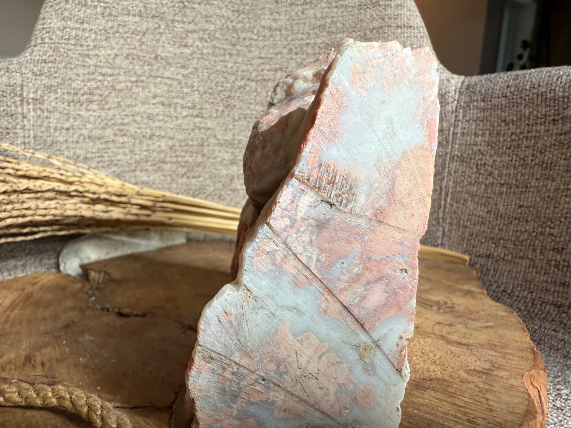 Tento Minerál achát broskyňový – Plodnosť života je ideálny pre osobný rozvoj, podporu ženských energií, meditácie a harmonizáciu priestoru, pričom slúži aj ako jedinečný a vizuálne pôsobivý solitér.