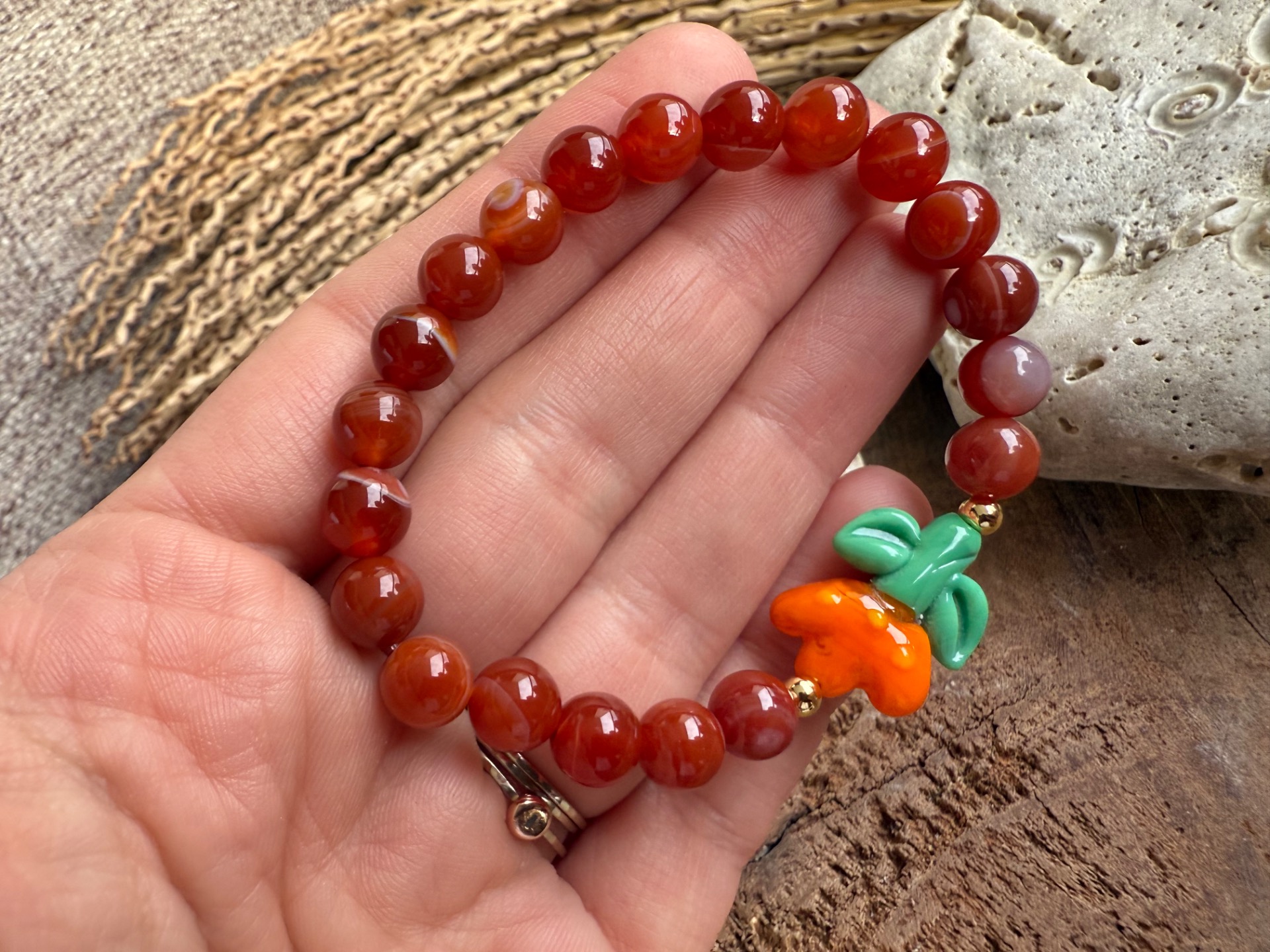 Náramok z achátu krajkového s oranžovým tulipánom – Vôňa jari