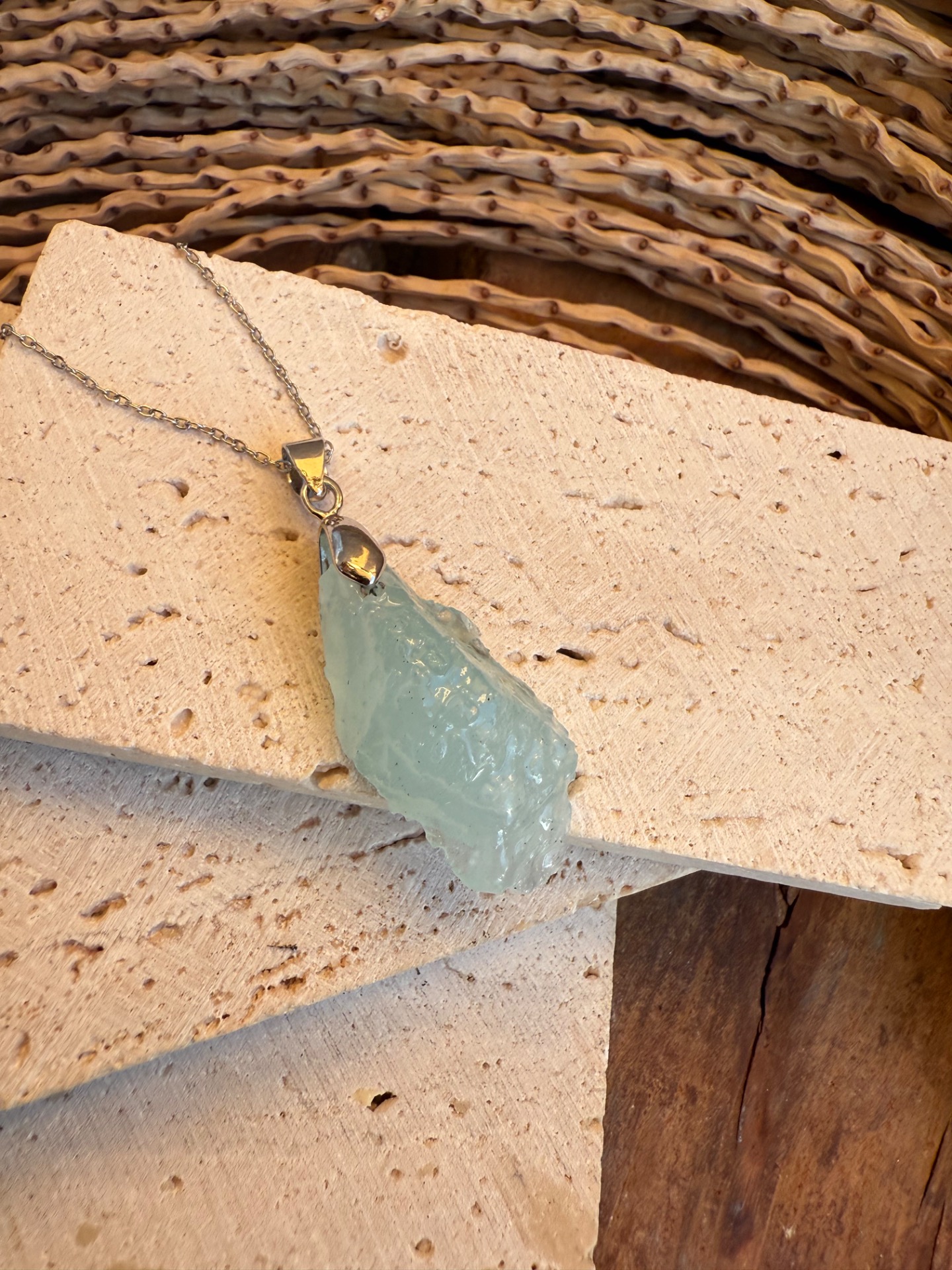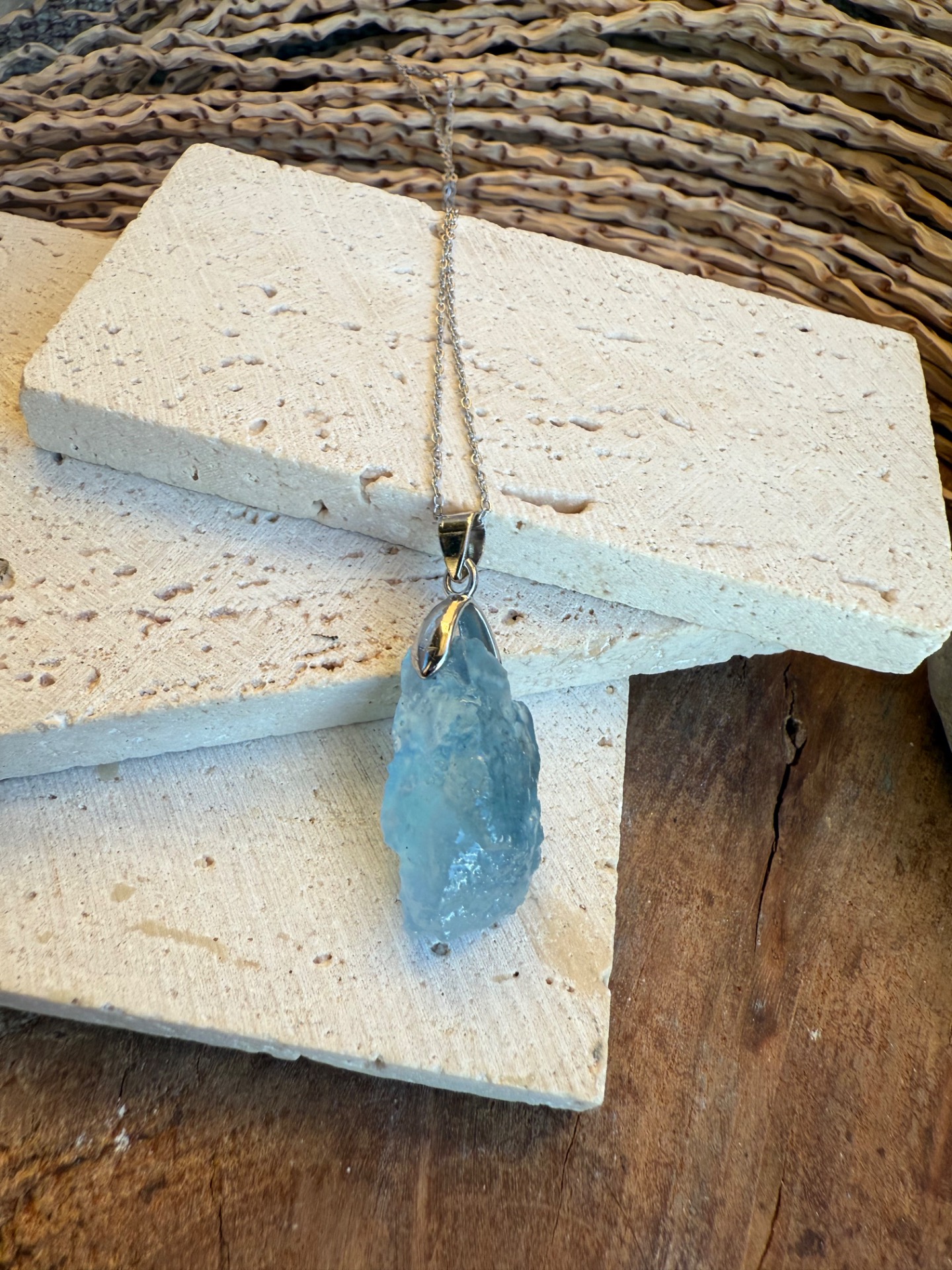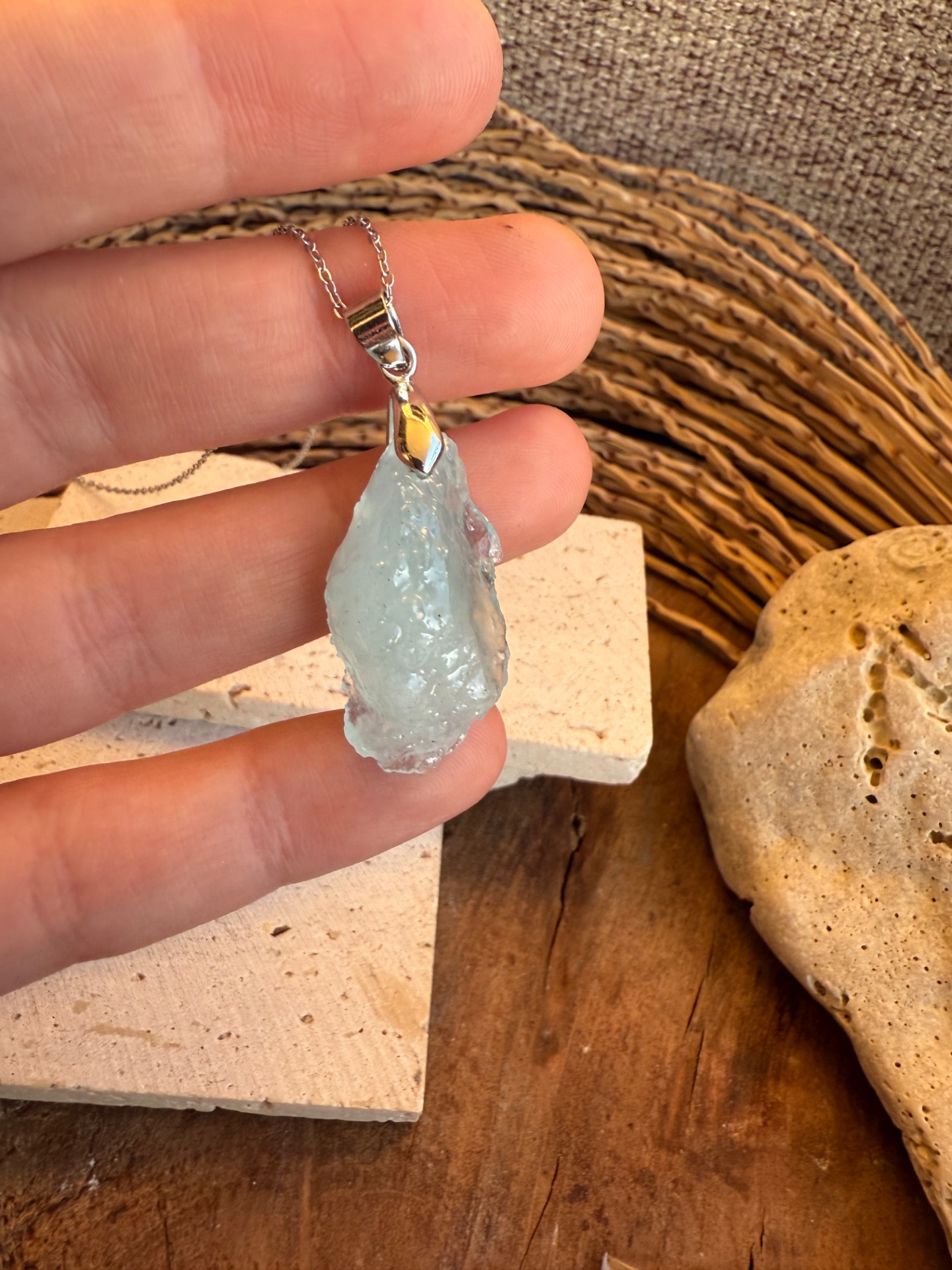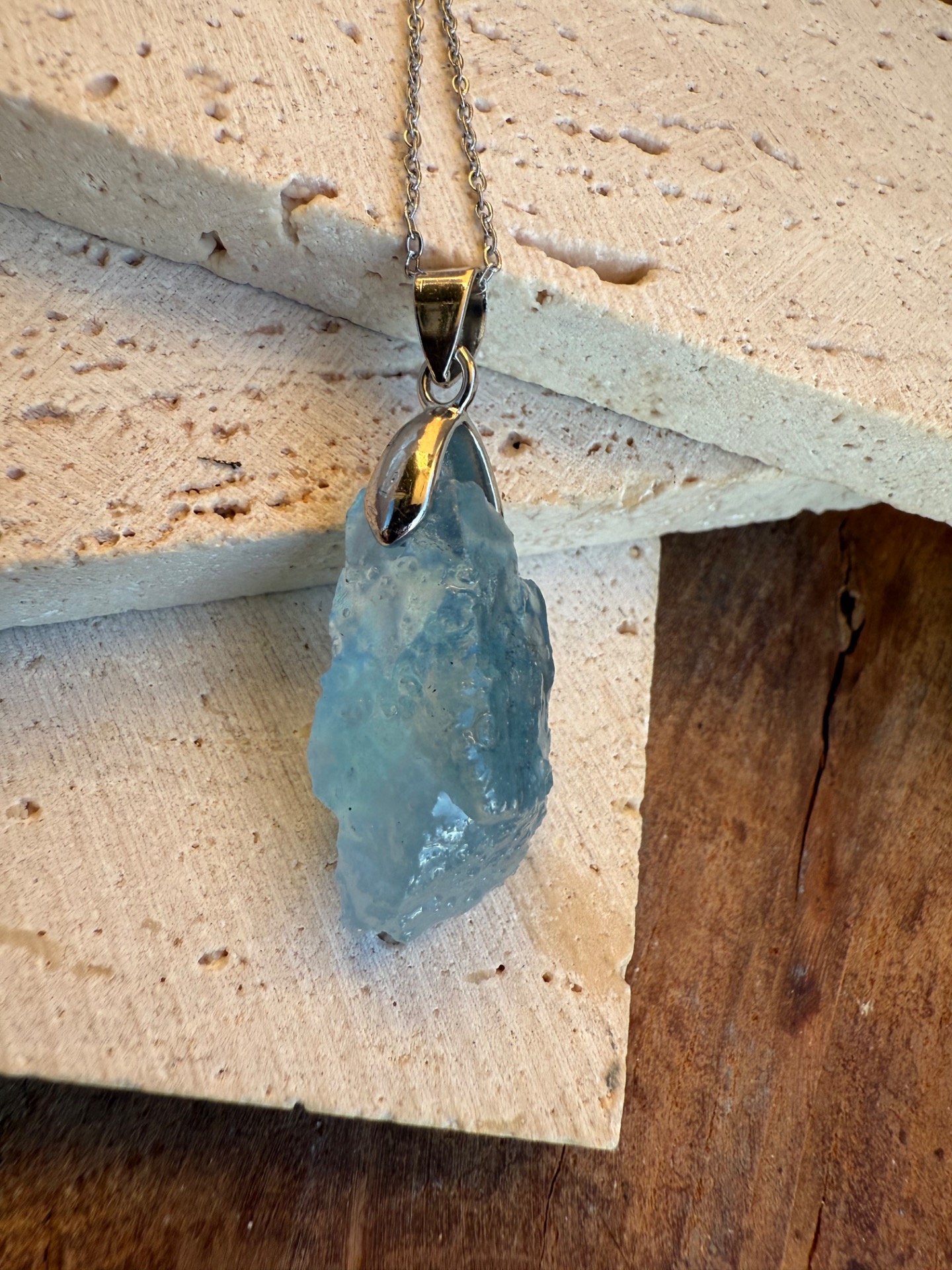Prívesok zo surového akvamarínu – ocean vibe