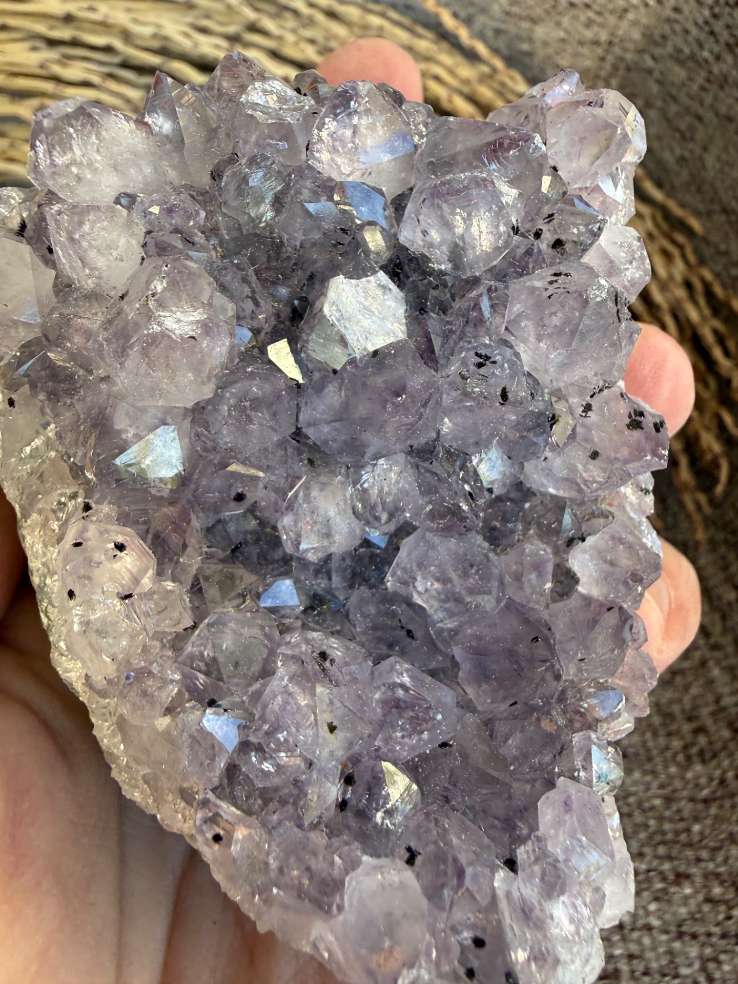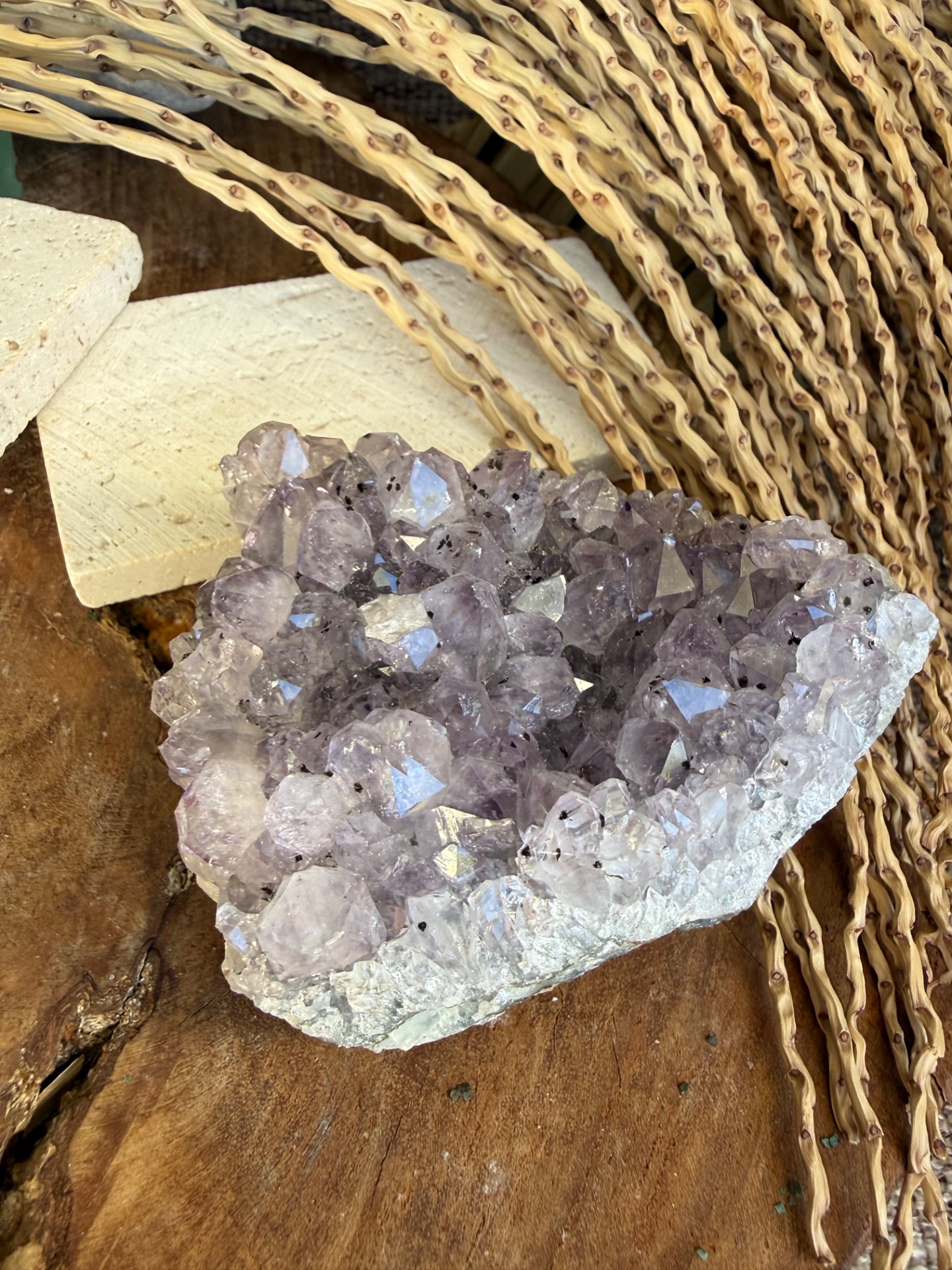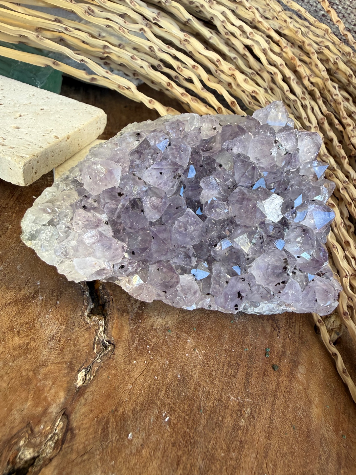 Táto jemná ametystová drúzička z Brazílie je malý, ale veľmi príjemne pôsobiaci prírodný kúsok s jemnými fialovými kryštálmi. Pôsobí nežne, čisto a harmonicky, vďaka čomu je ideálna aj do menších priestorov alebo ako osobný kameň.