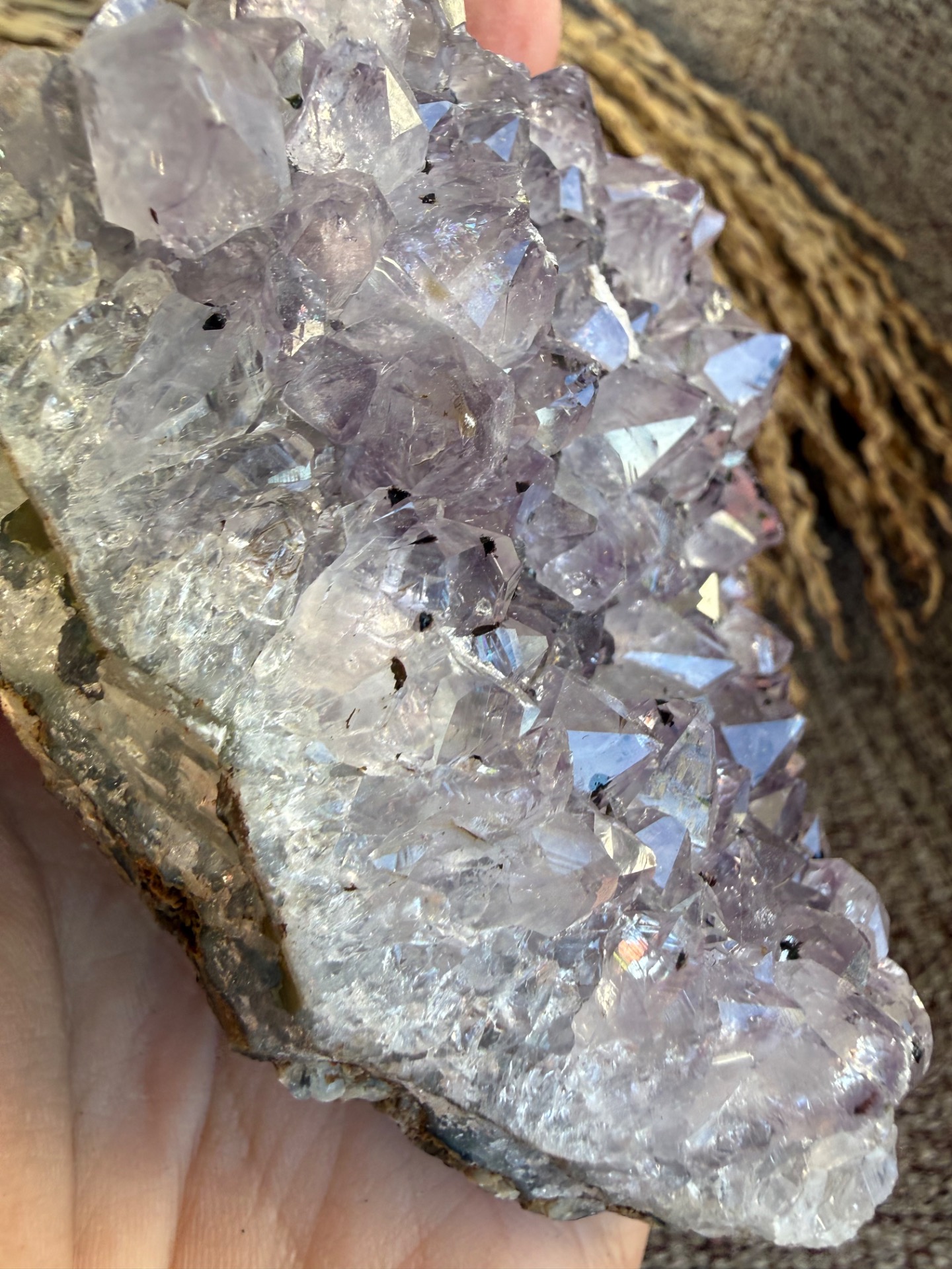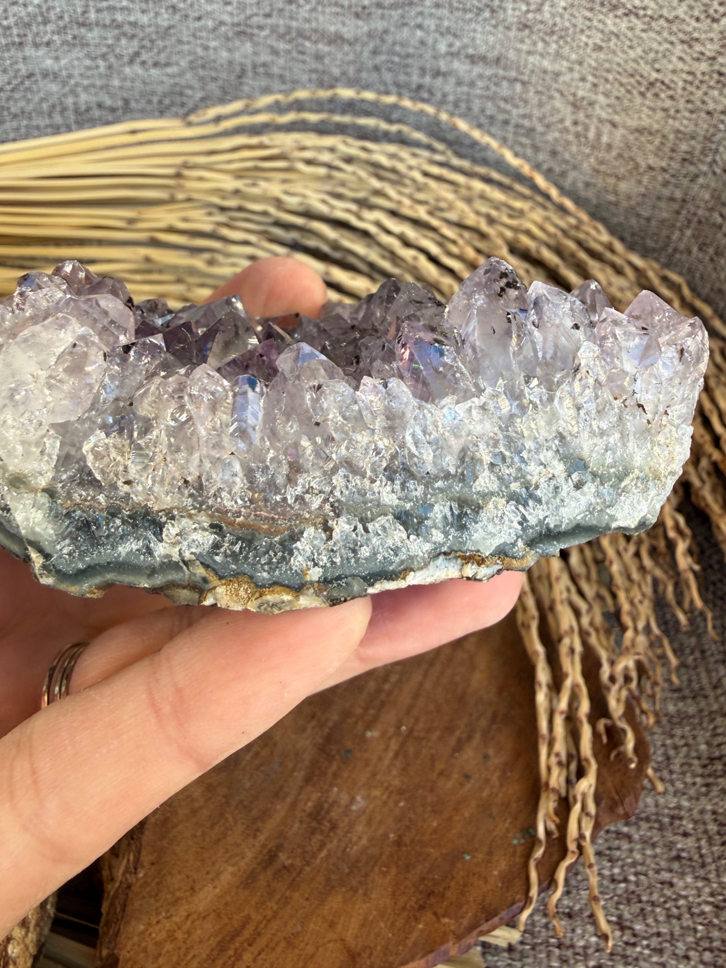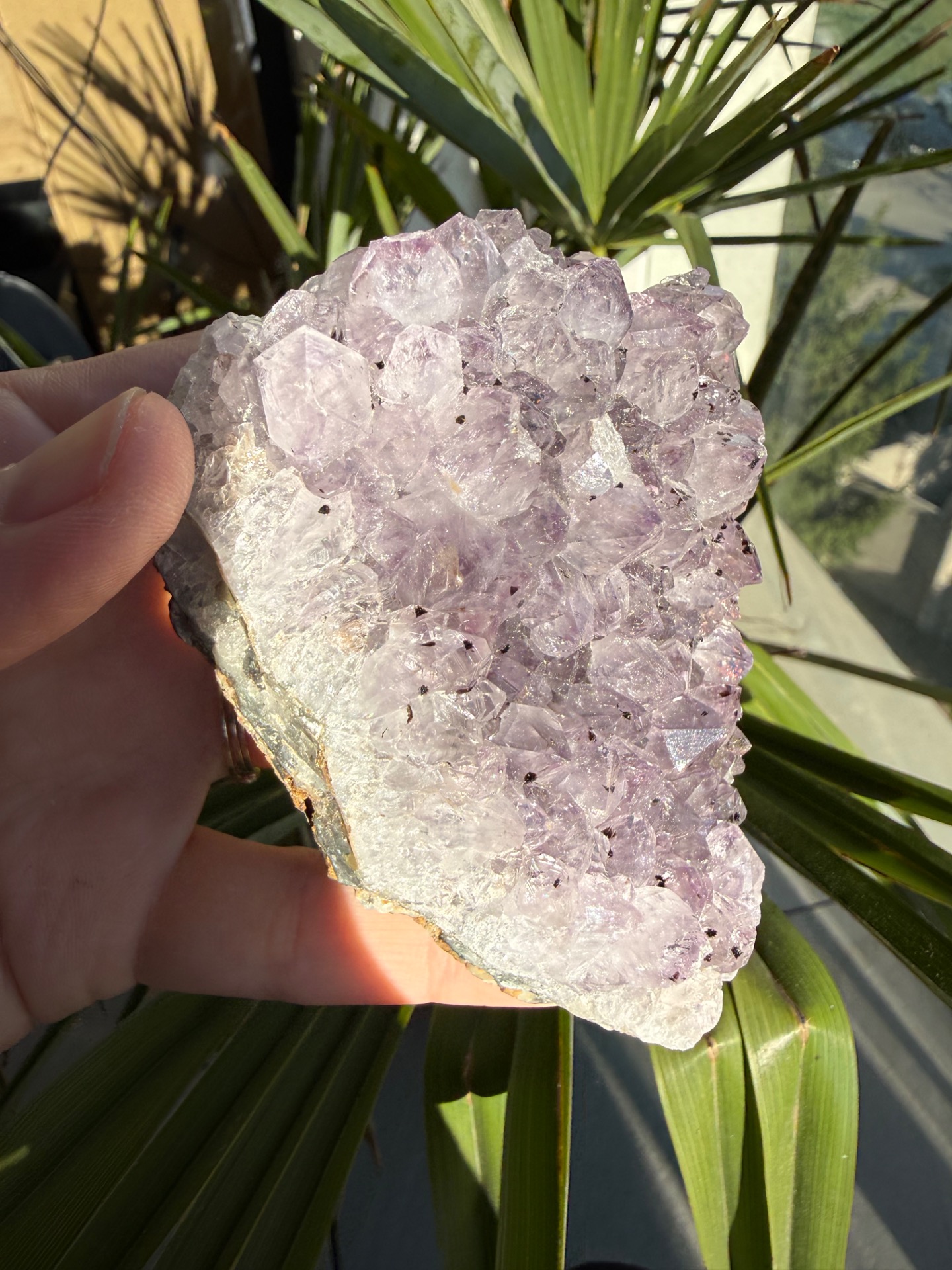 Táto jemná ametystová drúzička z Brazílie je malý, ale veľmi príjemne pôsobiaci prírodný kúsok s jemnými fialovými kryštálmi. Pôsobí nežne, čisto a harmonicky, vďaka čomu je ideálna aj do menších priestorov alebo ako osobný kameň.