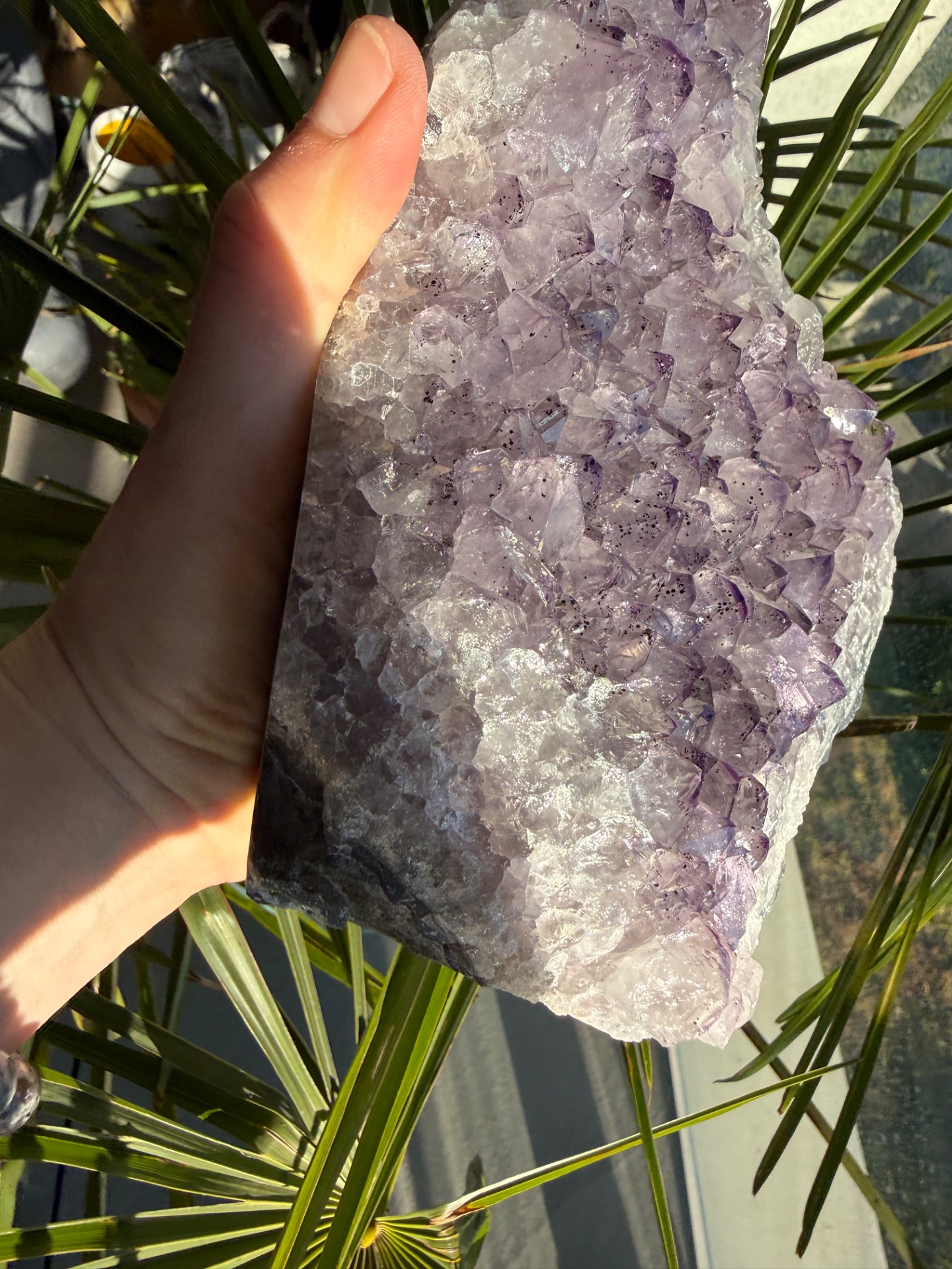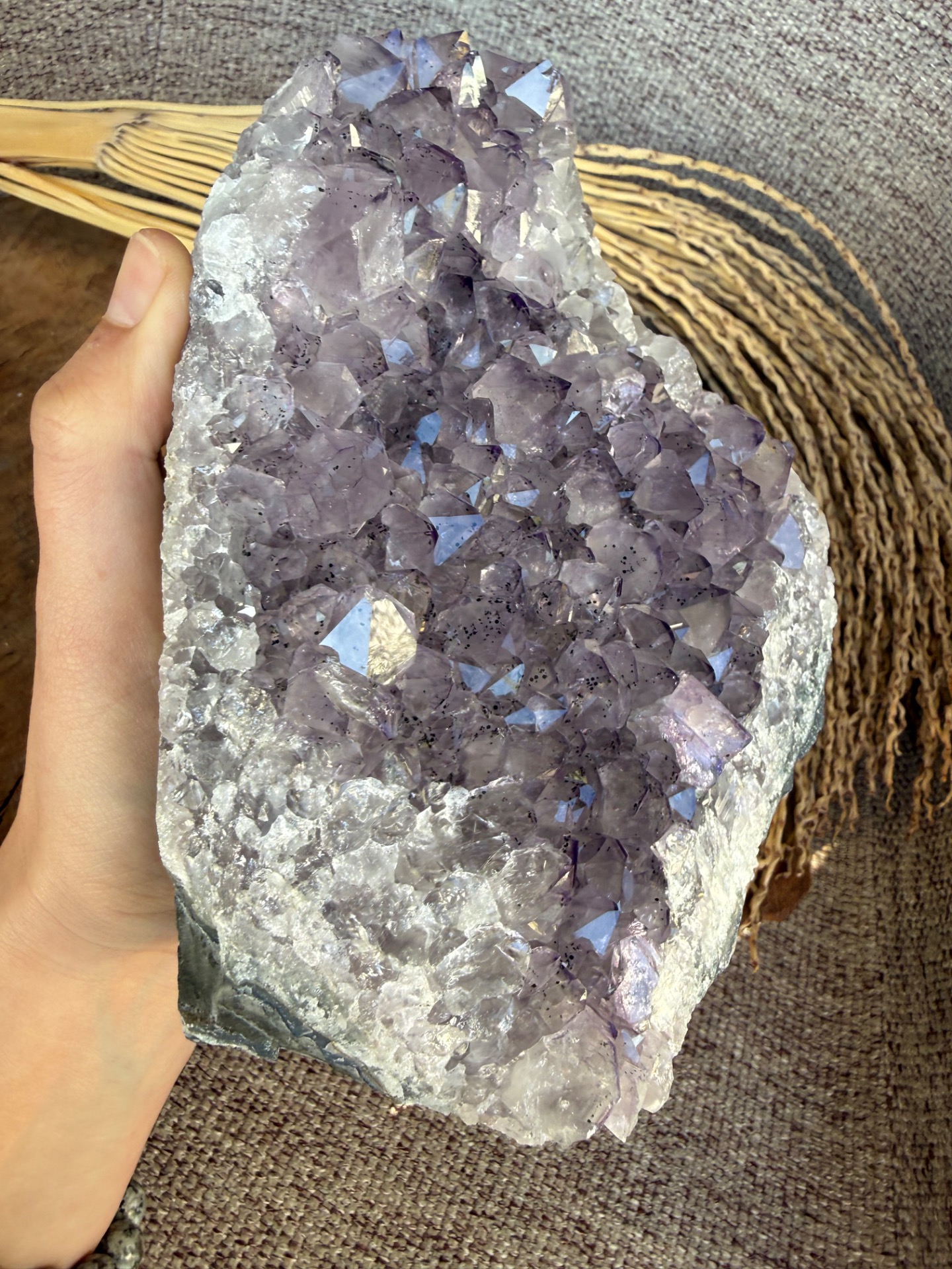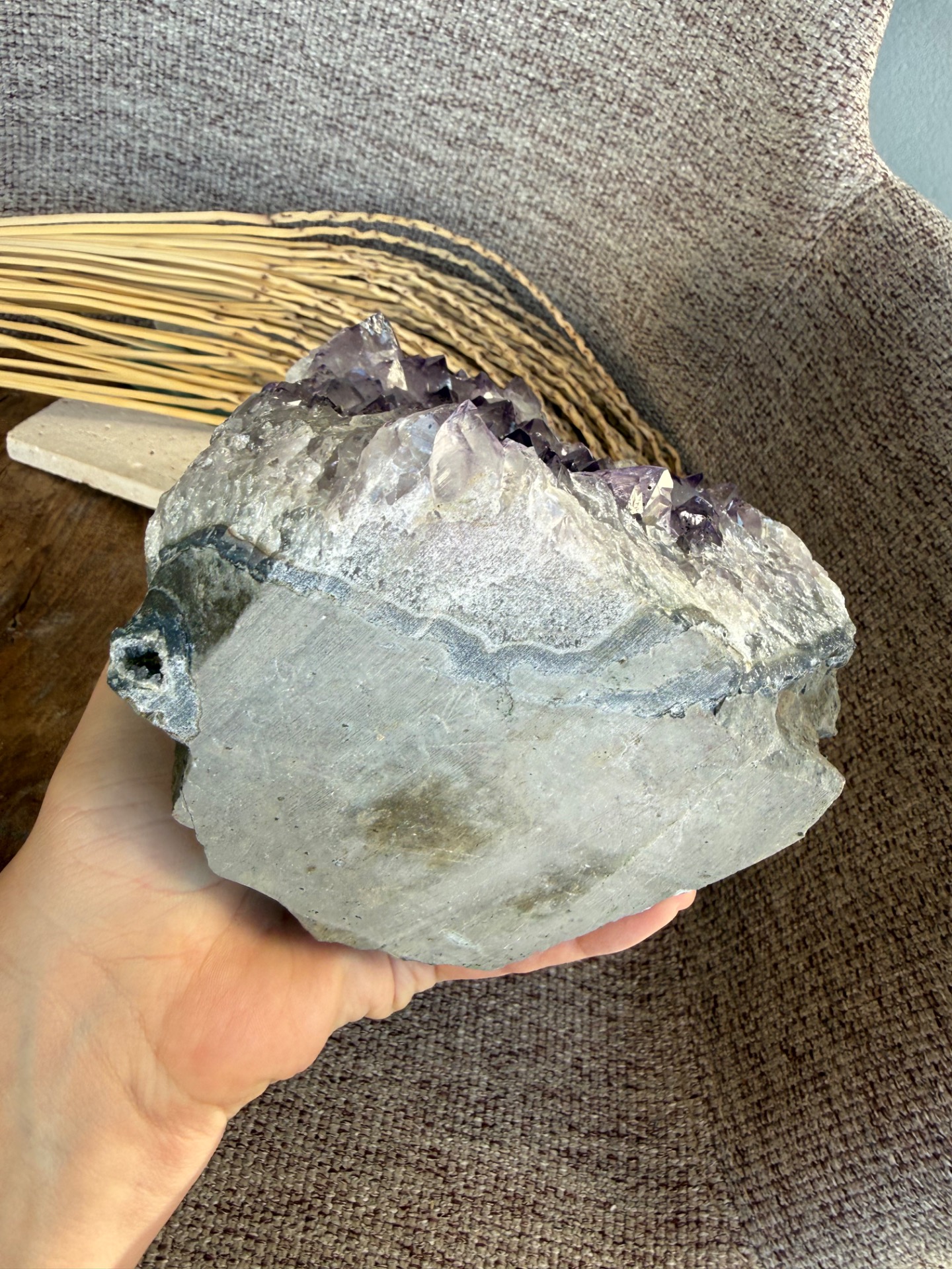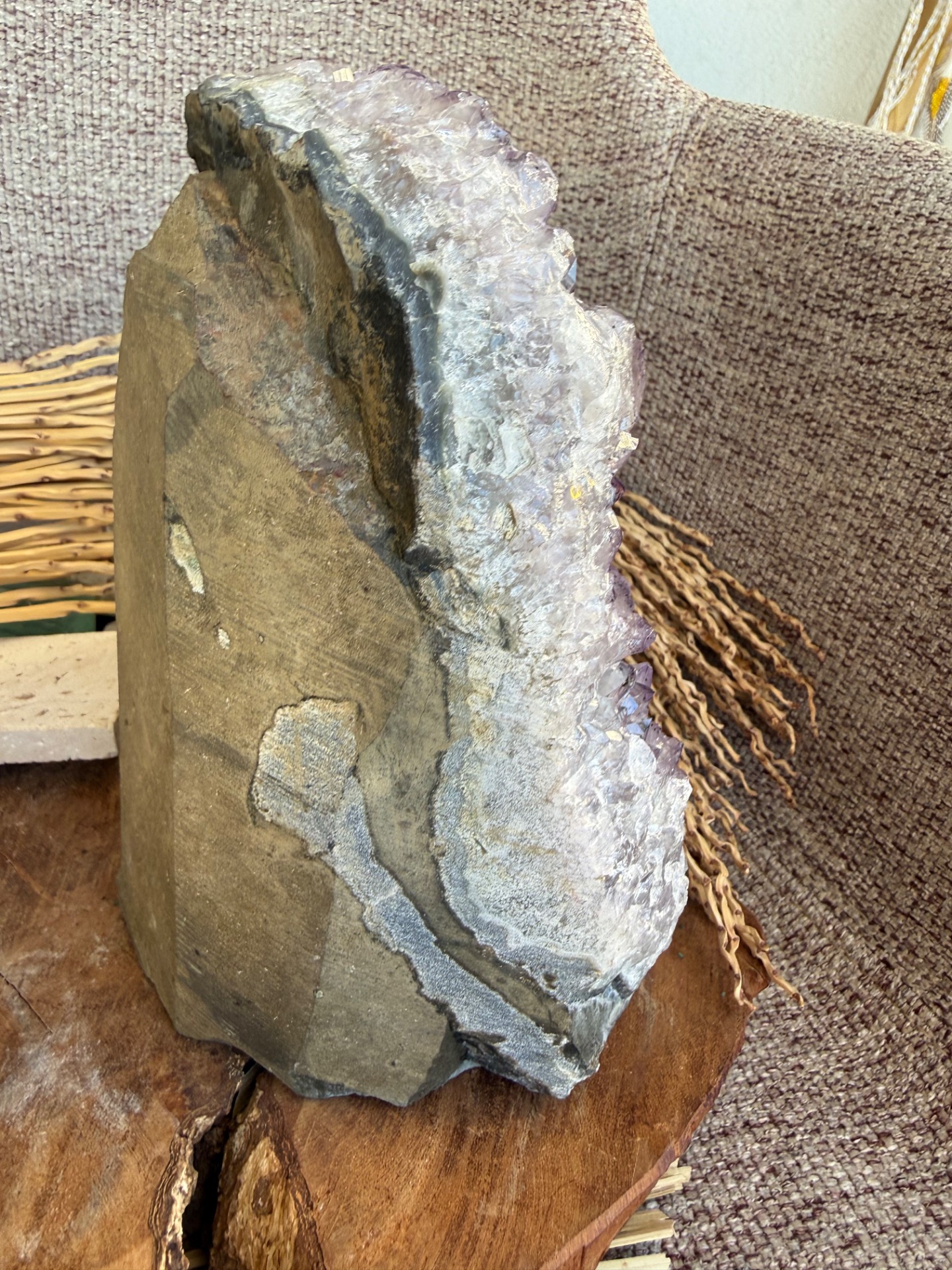 Táto nádherná ametystová drúza z Brazílie je výrazný, no zároveň jemne pôsobiaci prírodný kúsok s hmotnosťou 2 kg. Vyniká svetlejšími, jemne fialovými kryštálmi, ktoré pôsobia veľmi čisto, vzdušne a harmonicky. Ide o krásny prírodný solitér, ktorý v priestore vytvára pocit pokoja a jemnej ochrany.