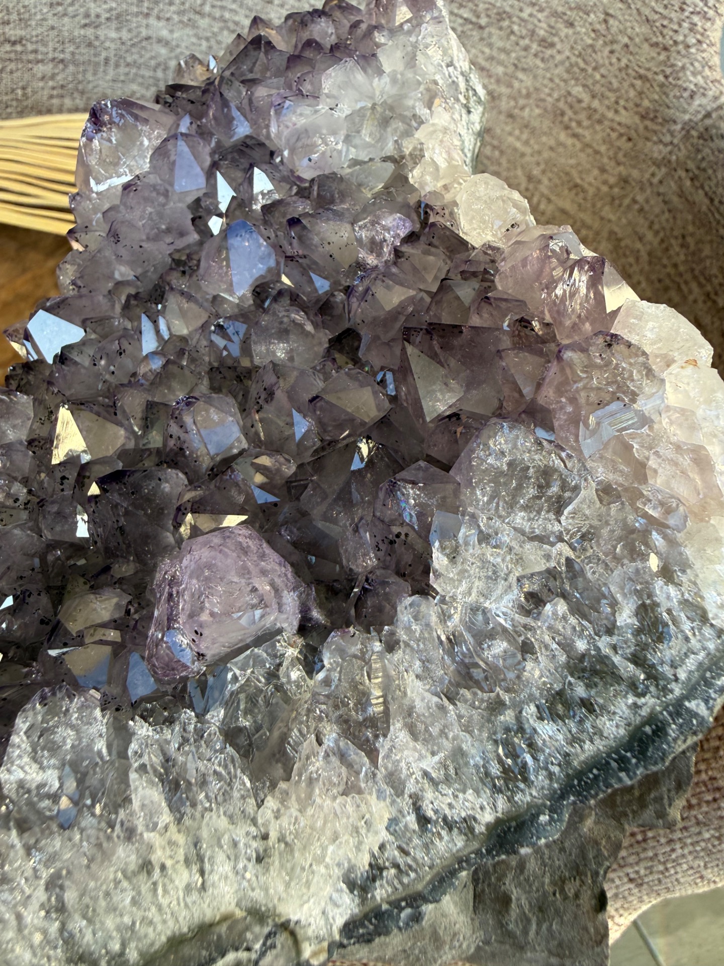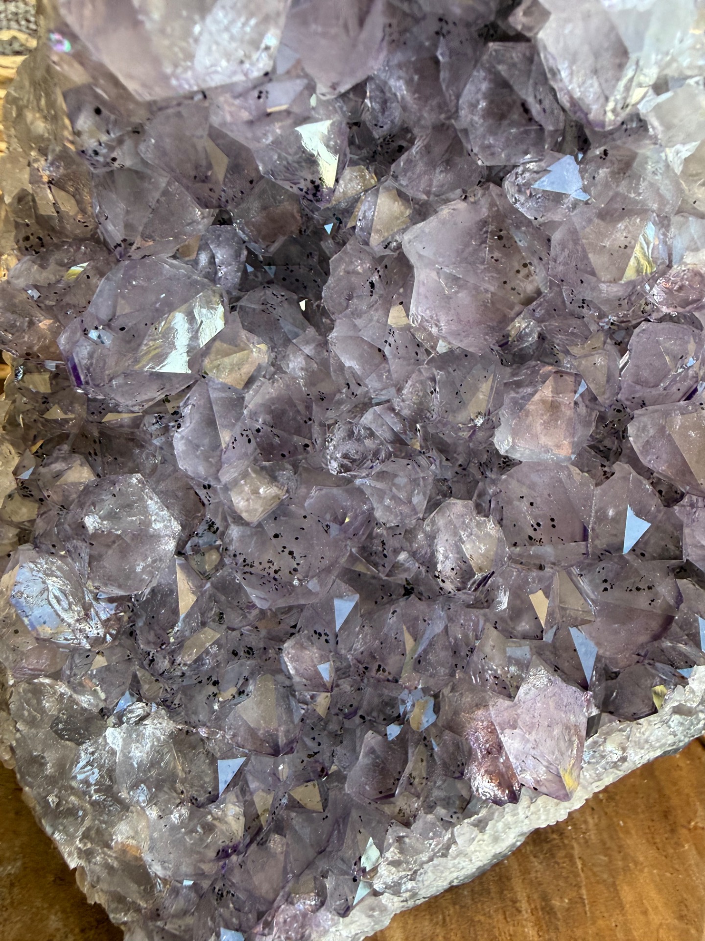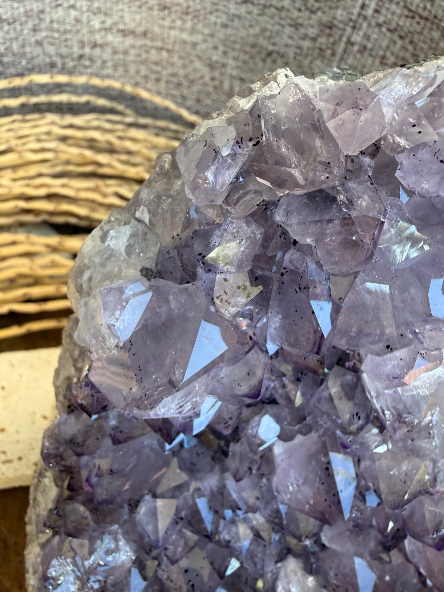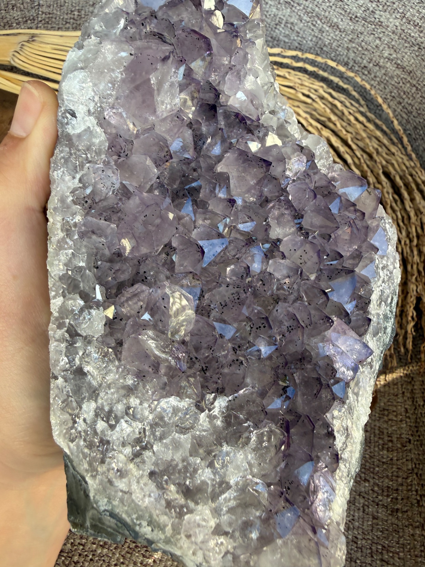 Táto nádherná ametystová drúza z Brazílie je výrazný, no zároveň jemne pôsobiaci prírodný kúsok s hmotnosťou 2 kg. Vyniká svetlejšími, jemne fialovými kryštálmi, ktoré pôsobia veľmi čisto, vzdušne a harmonicky. Ide o krásny prírodný solitér, ktorý v priestore vytvára pocit pokoja a jemnej ochrany.