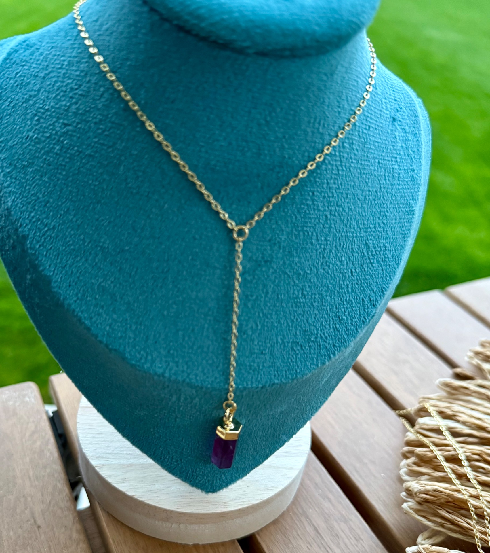 (18k gold plated Y retiazka, 44 cm, prívesok ametyst)