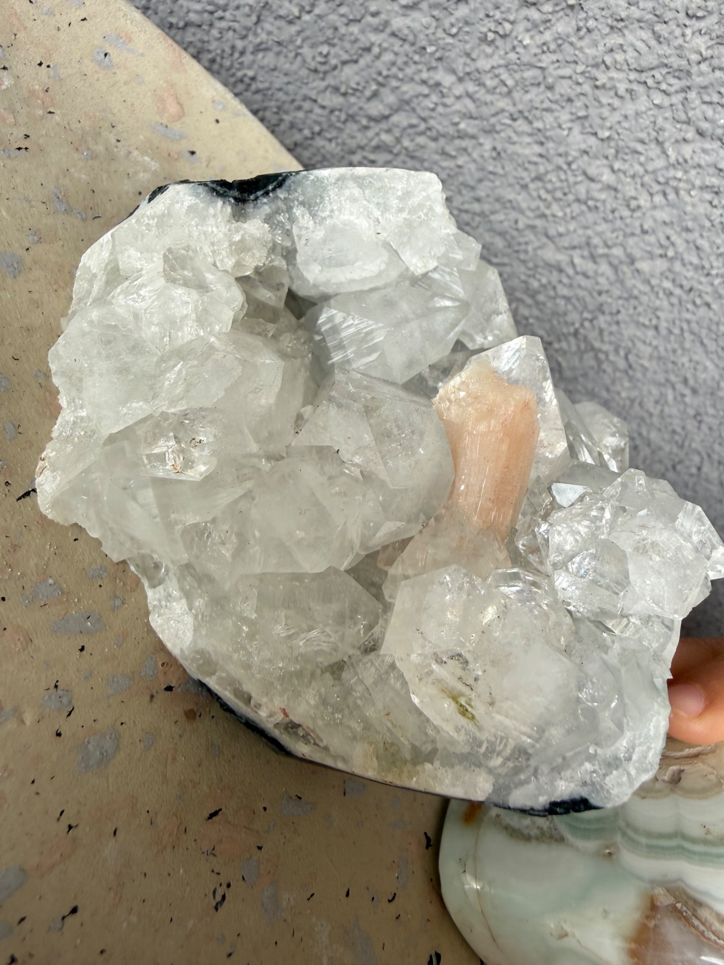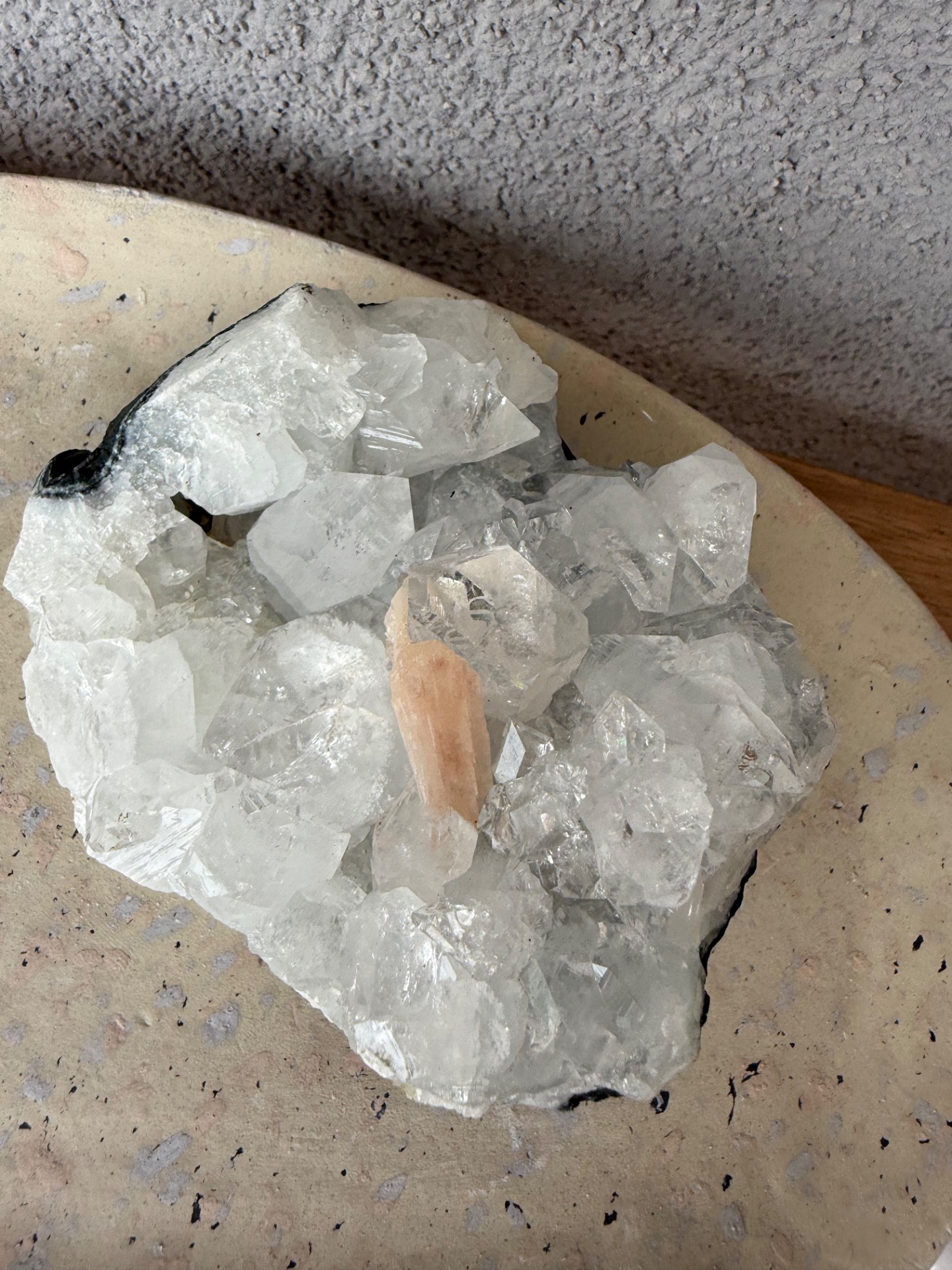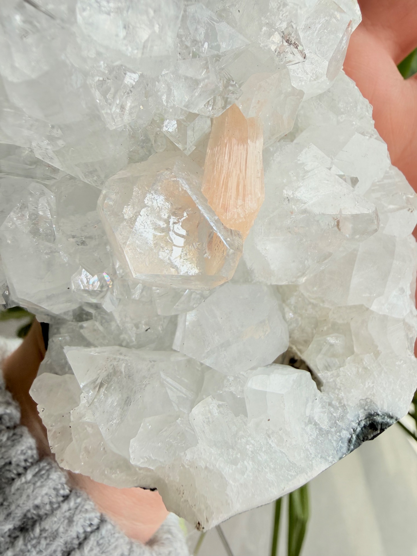 Apofylit zaujme svojím vysokým leskom a schopnosťou krásne odrážať svetlo, zatiaľ čo stilbit svojimi broskyňovo-ružovými tónmi prináša do priestoru jemnosť, pokoj a teplo.