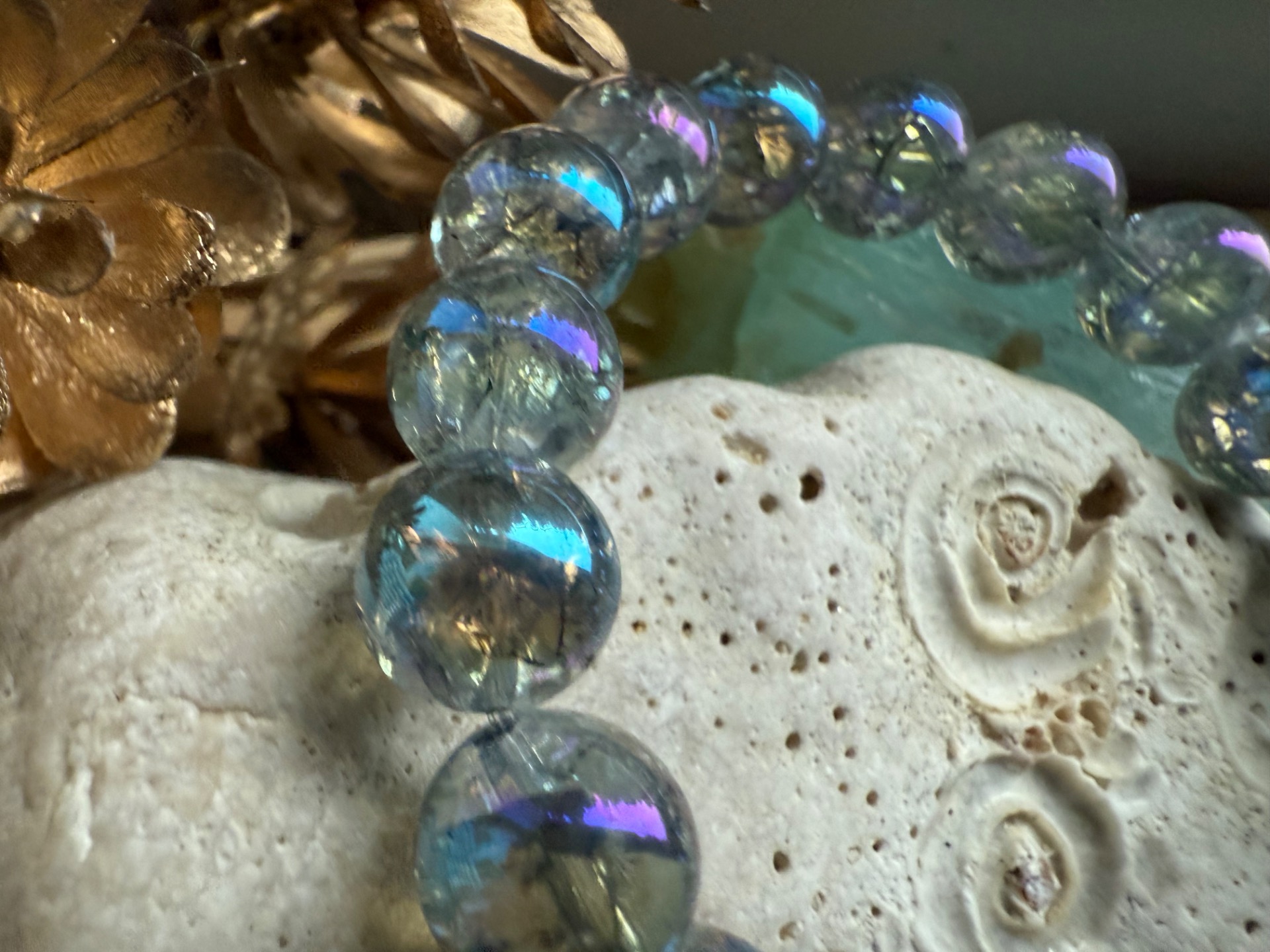 • 10 mm praskaný aqua aura krištáľ – odtiene do modra