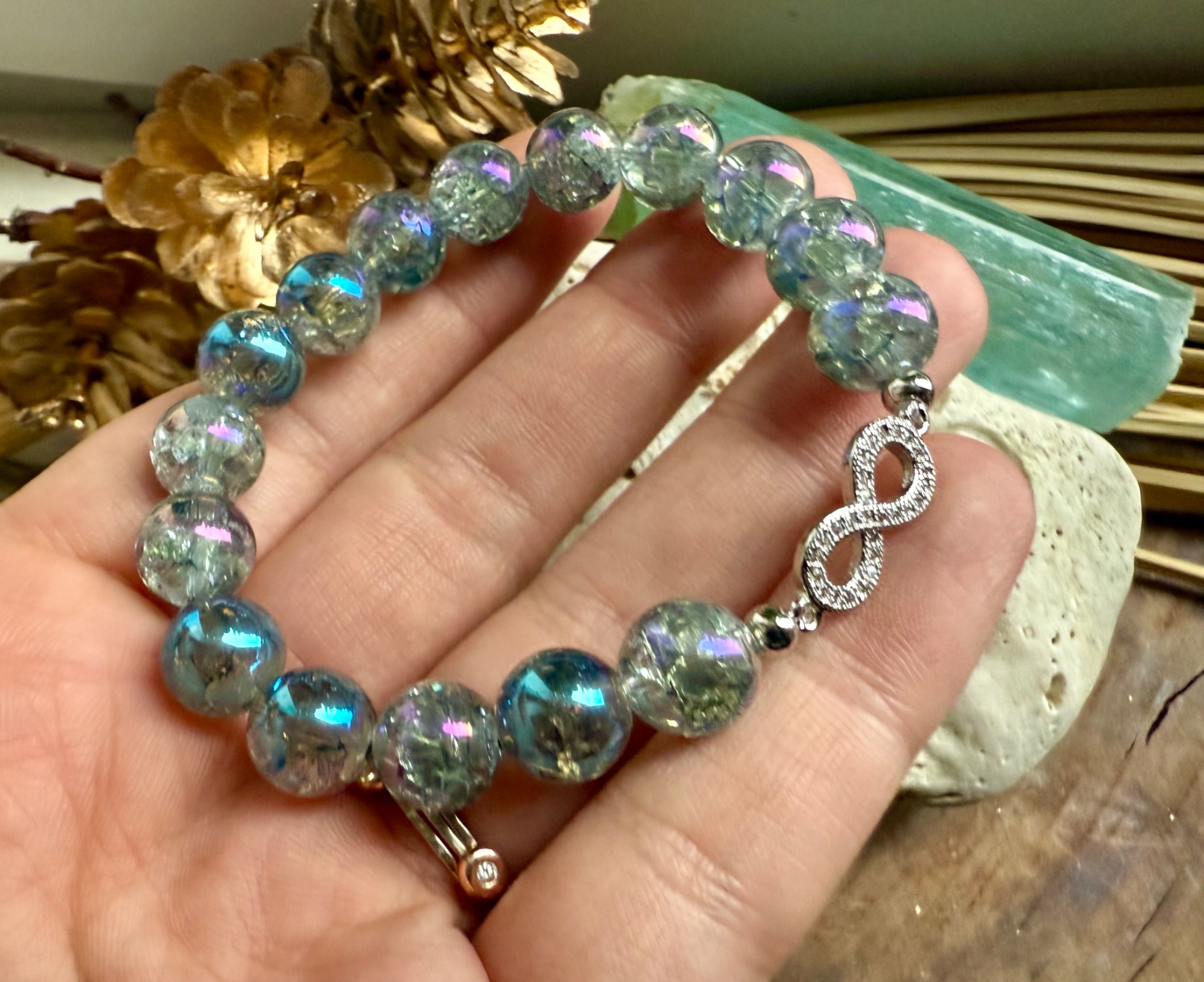 Náramok z praskaného Aqua Aura krištáľu – Nekonečno