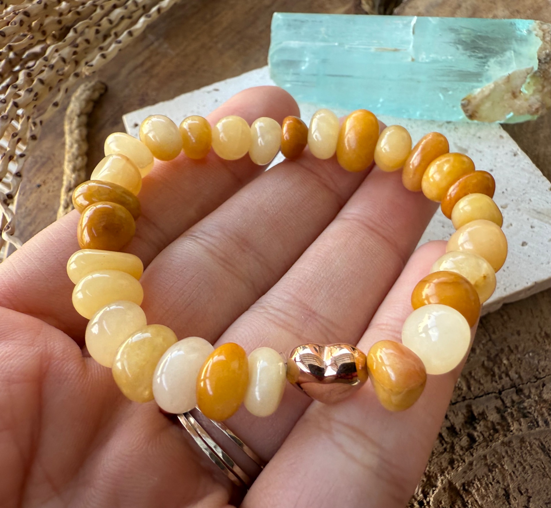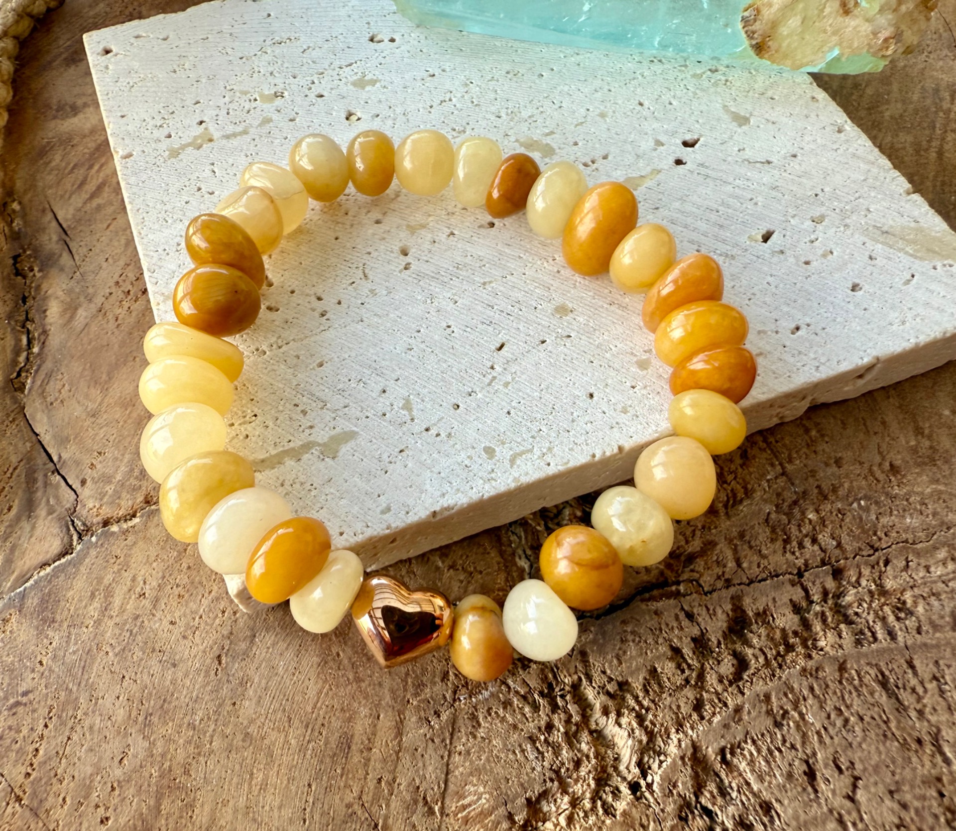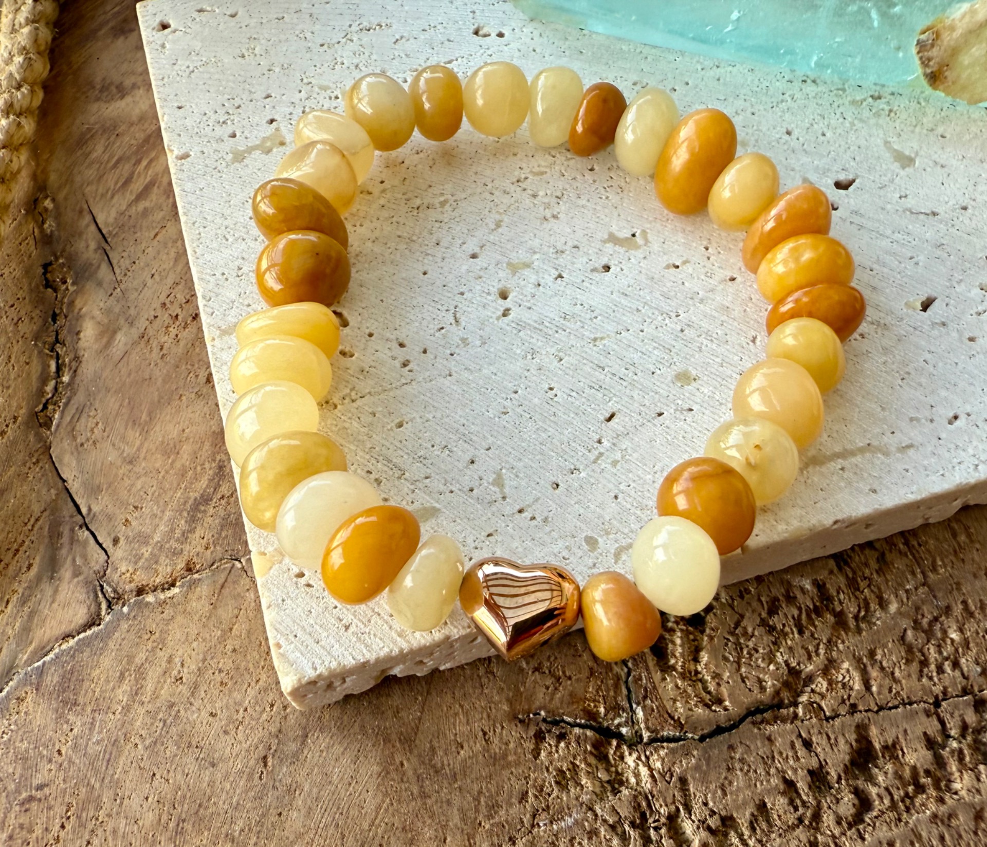 Náramok z minerálu avanturín oranžový doplnený nerezovým srdiečkom rose gold.