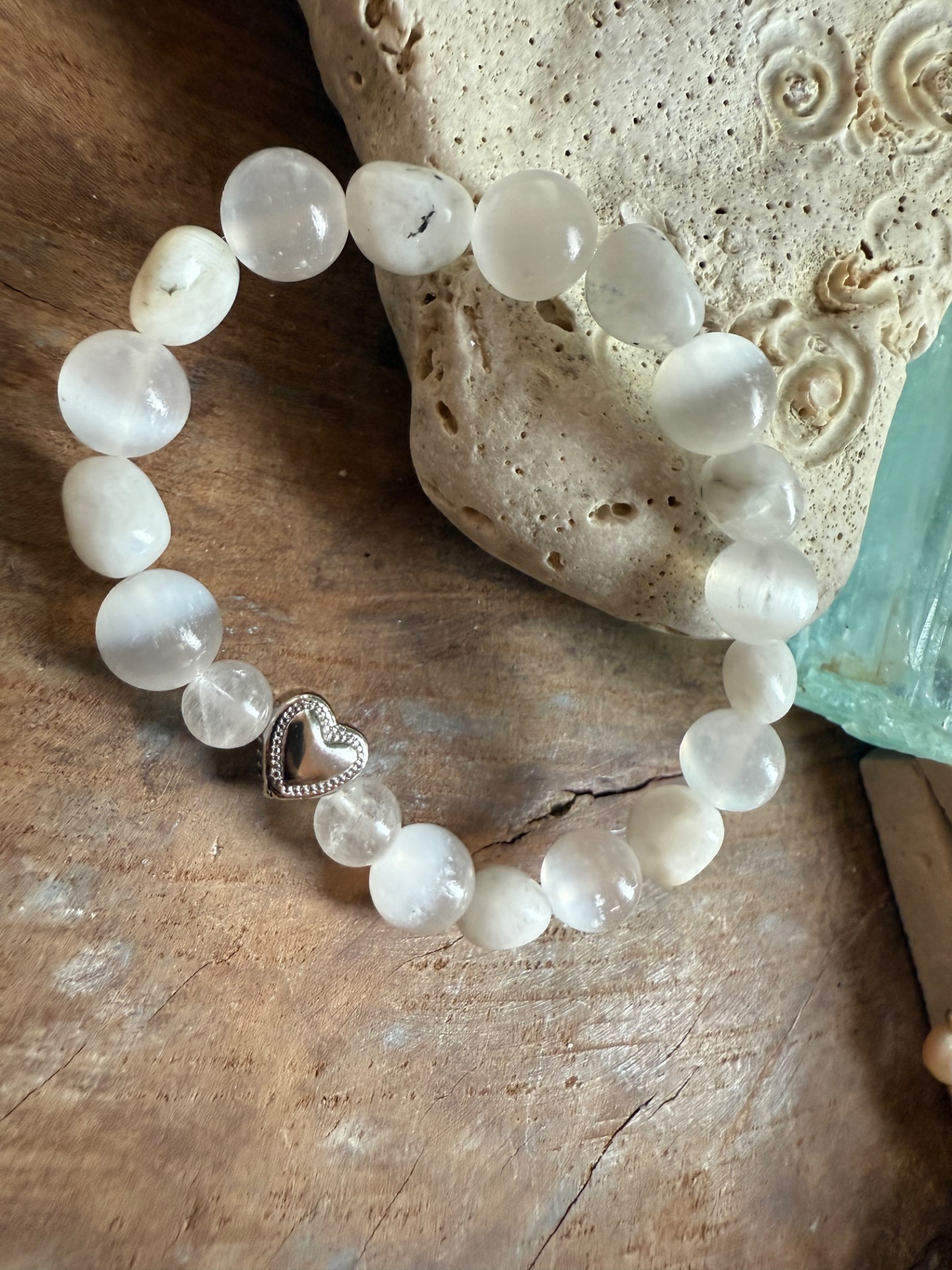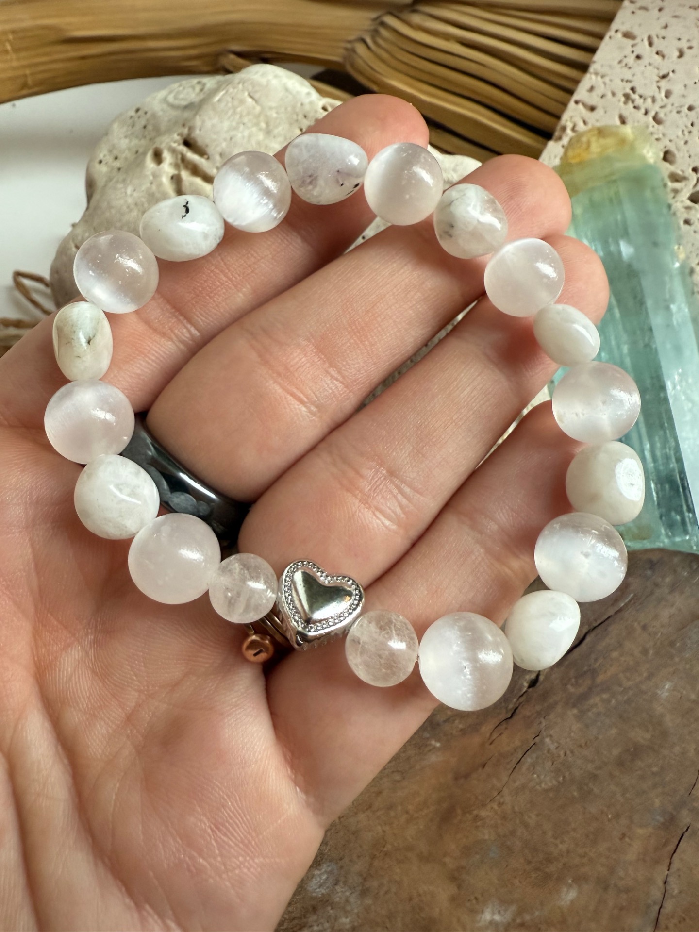 Liečiteľka – náramok z dvojkombinácie minerálov selenit a mesačný kameň