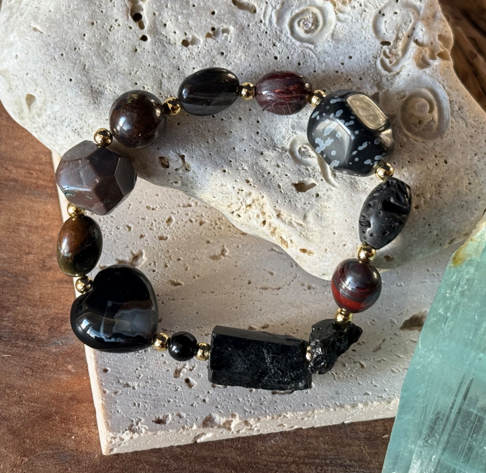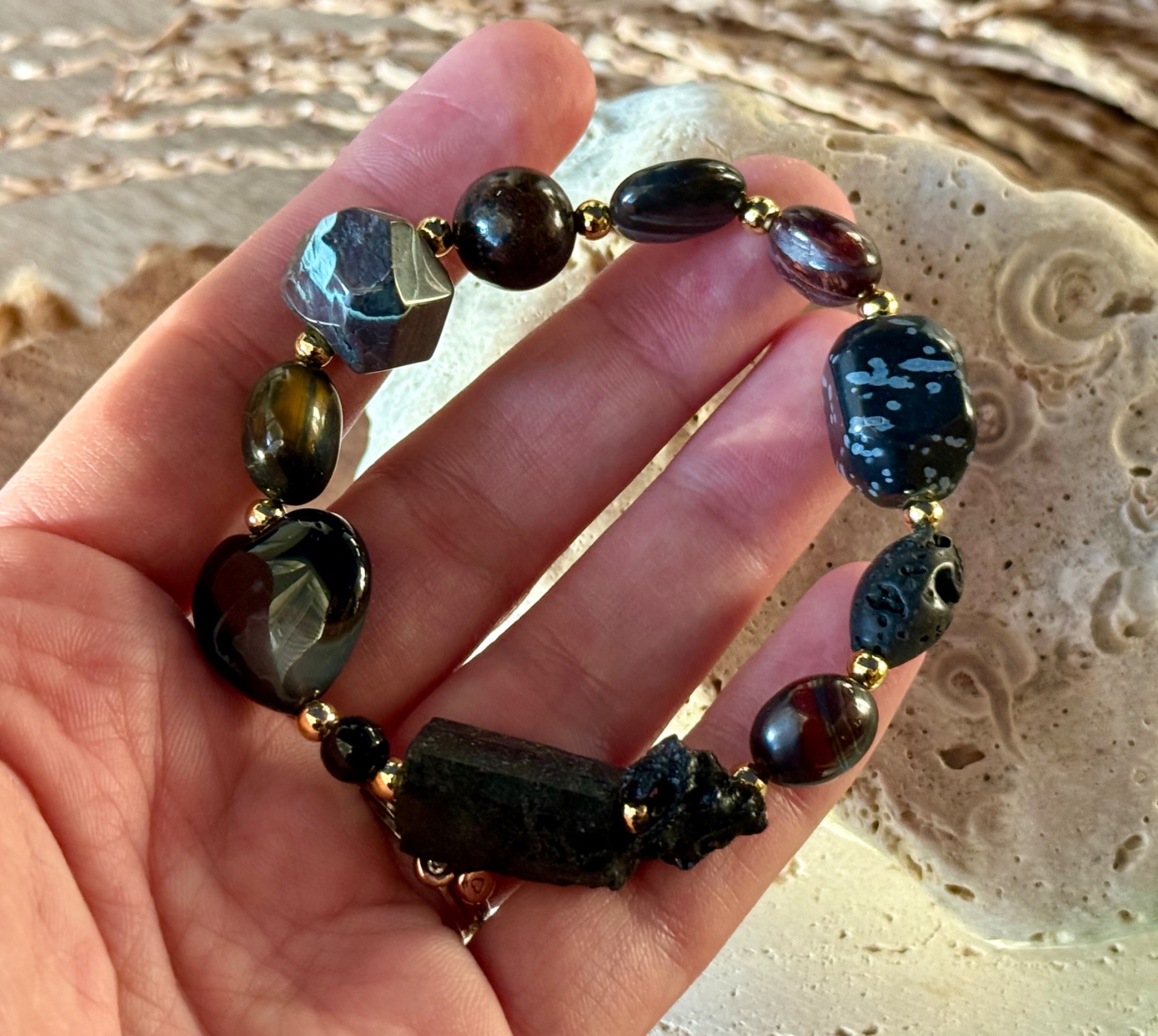Tento náramok je ideálny pre každého, kto chce cítiť silnú ochranu, zároveň zostať ukotvený a vyrovnaný. Mix minerálov prináša rovnováhu, ochranu a podporu v náročných situáciách.