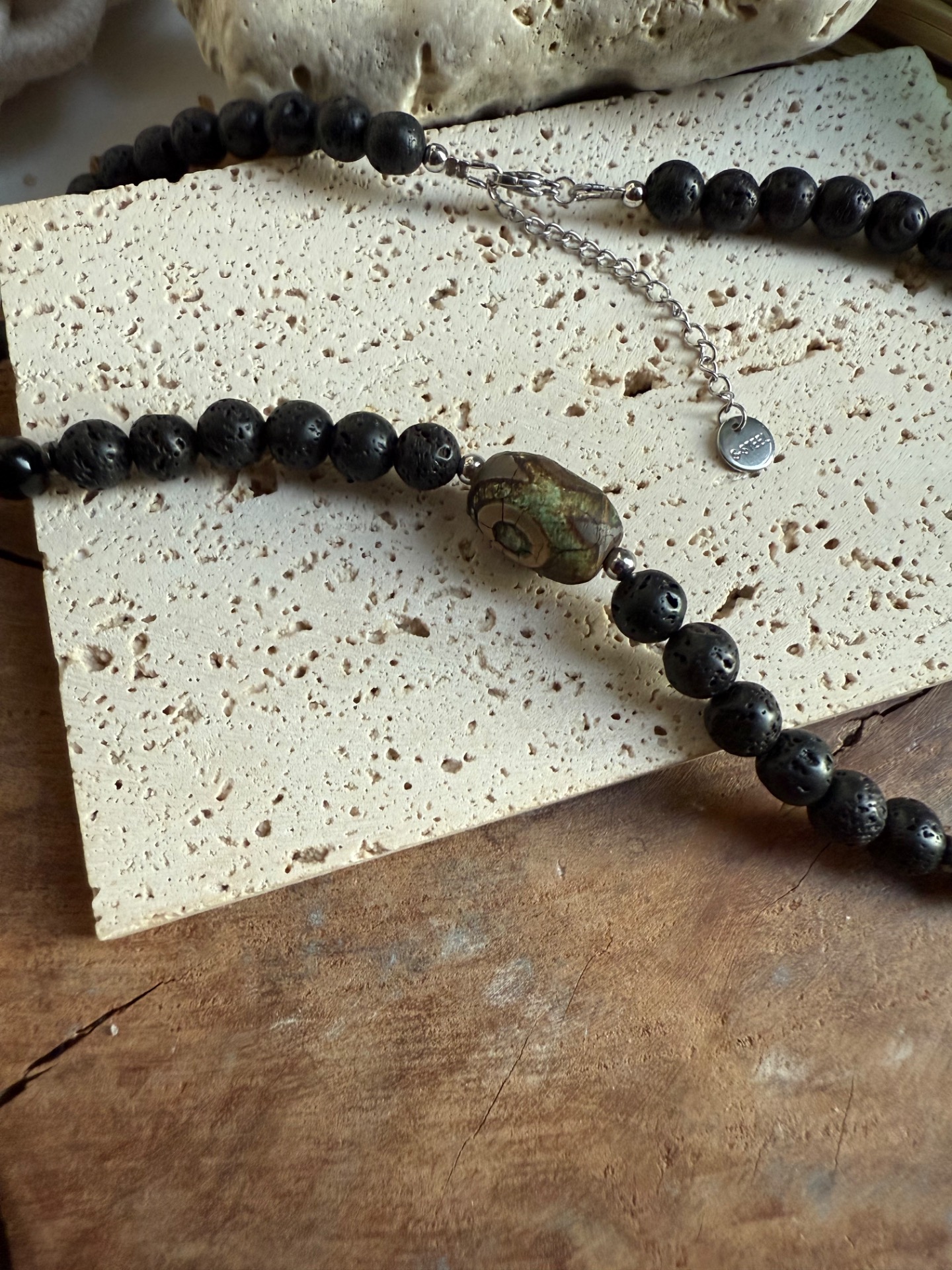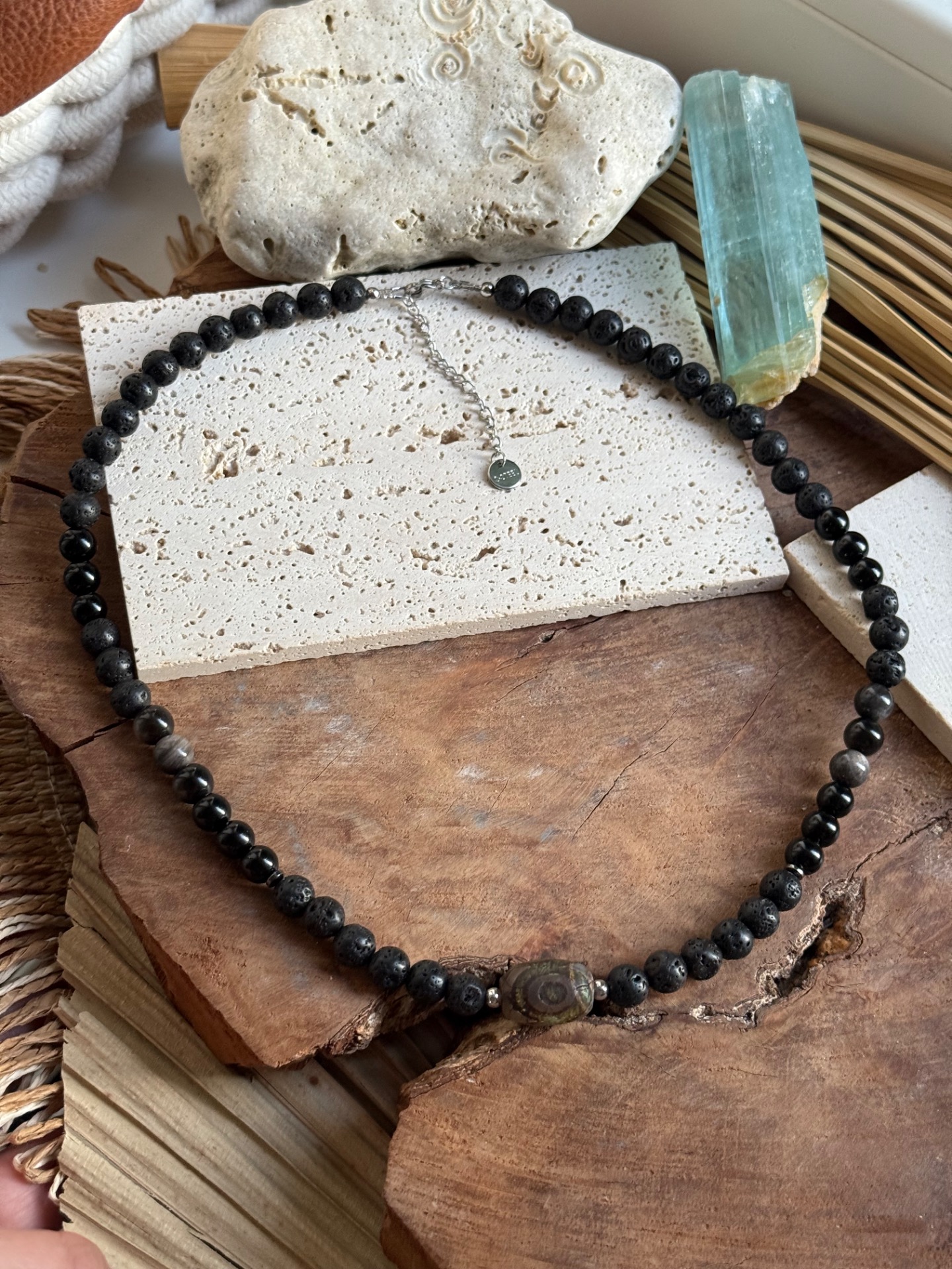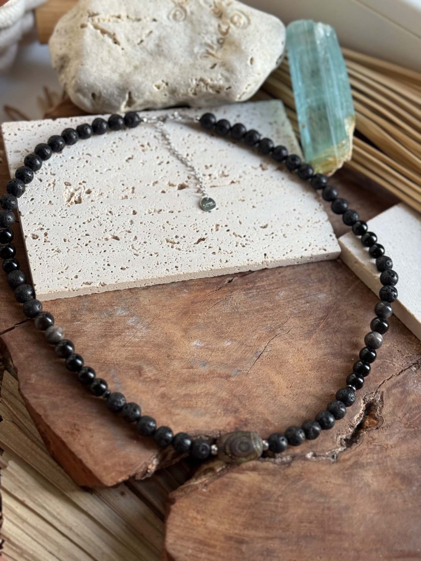 Silný, uzemňujúci a ochranný náhrdelník vytvorený pre muža, ktorý si uvedomuje svoju vnútornú silu a energiu, ktorú prináša do priestoru.