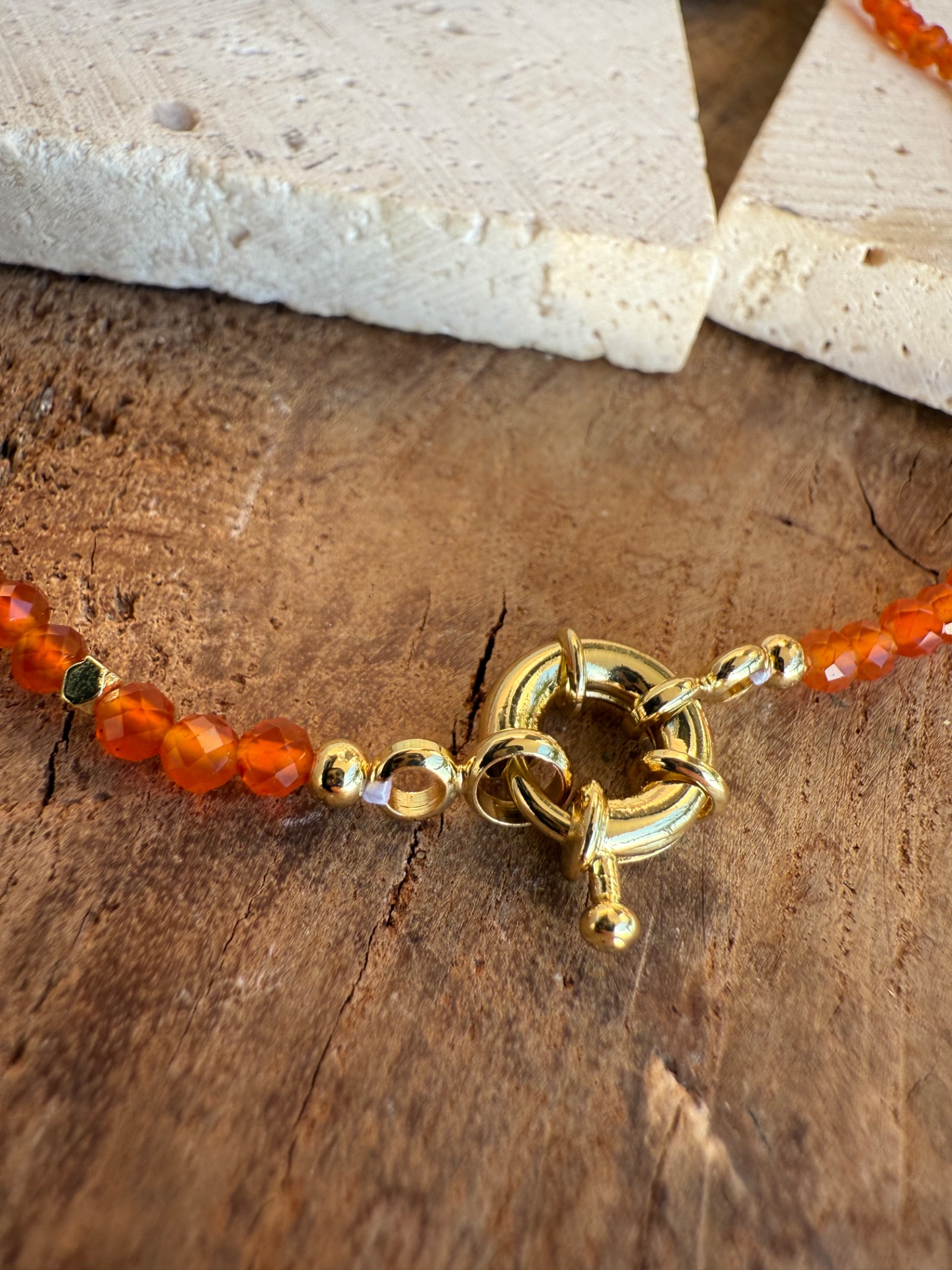 - Materiál: prírodný karneol, pozlátené komponenty