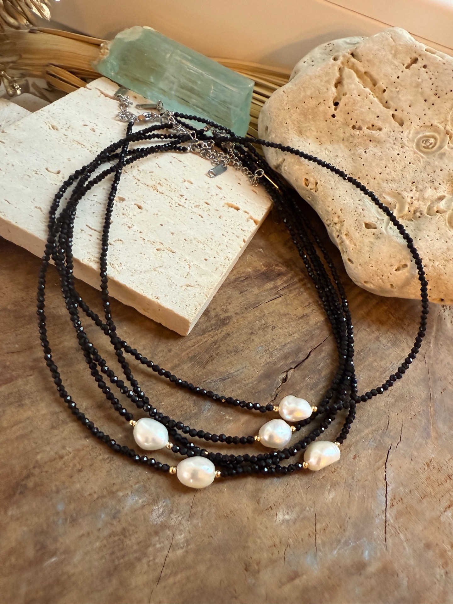 Choker "Perla Noci" – Spinel 2 mm & Riečna Perla