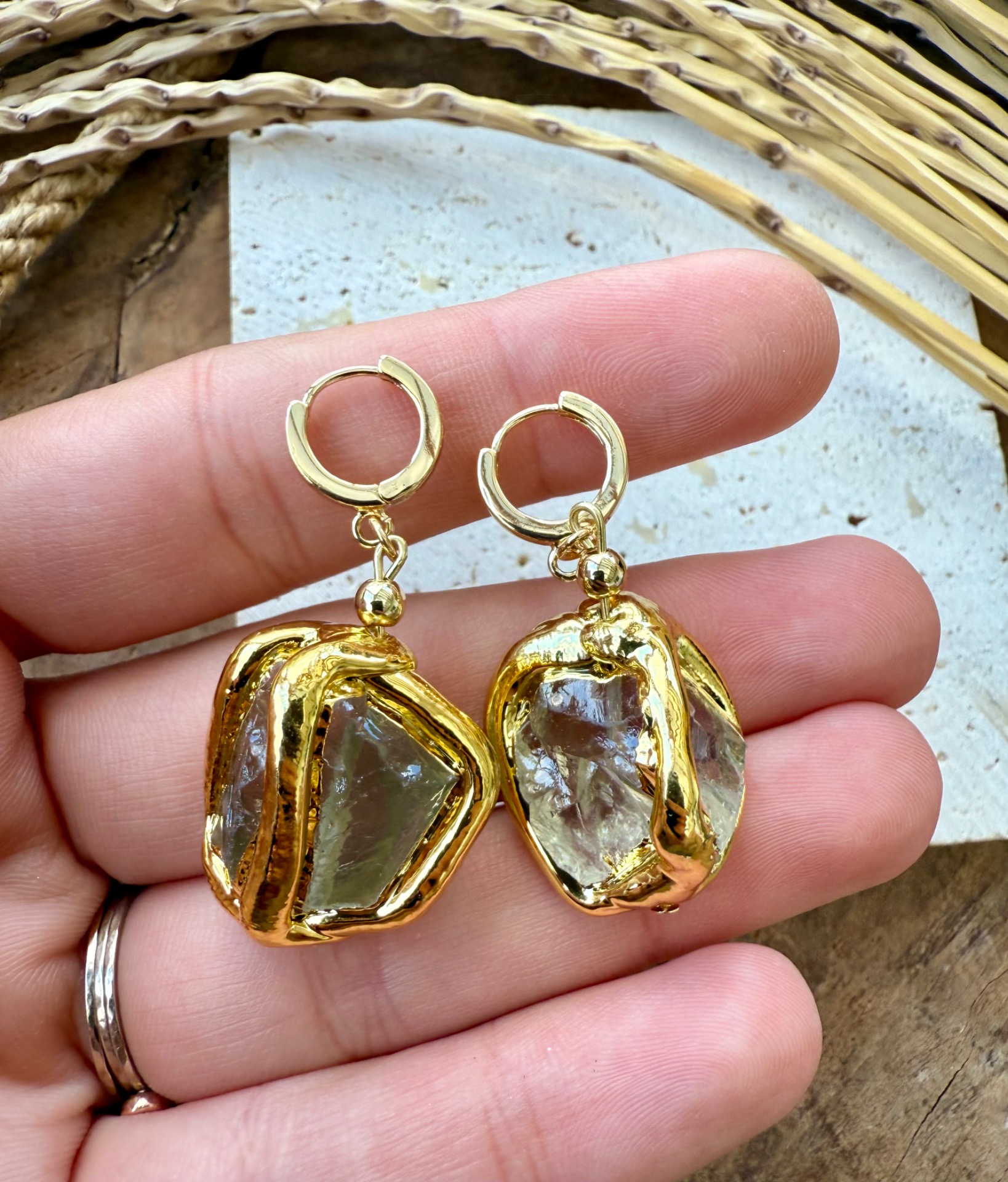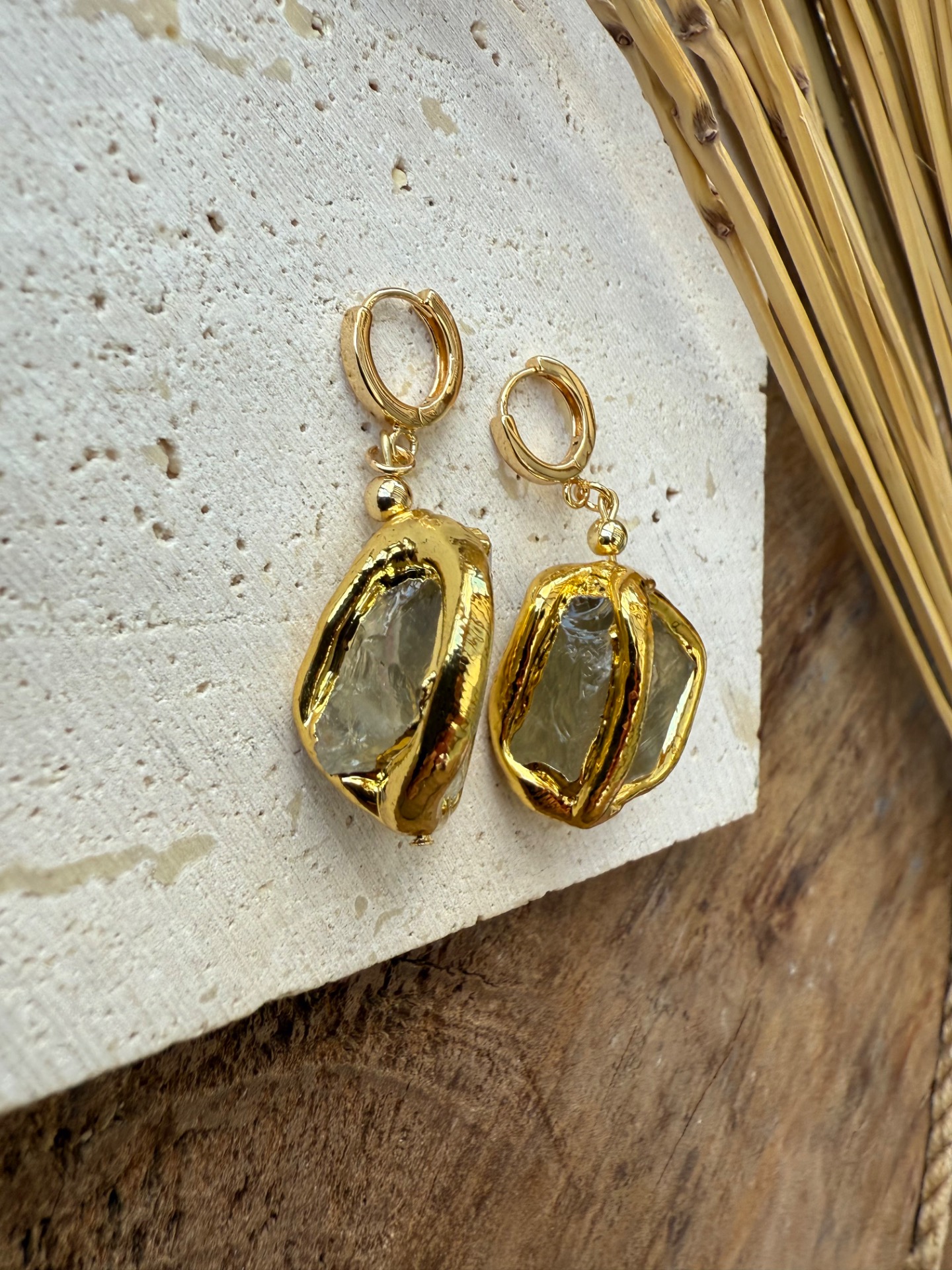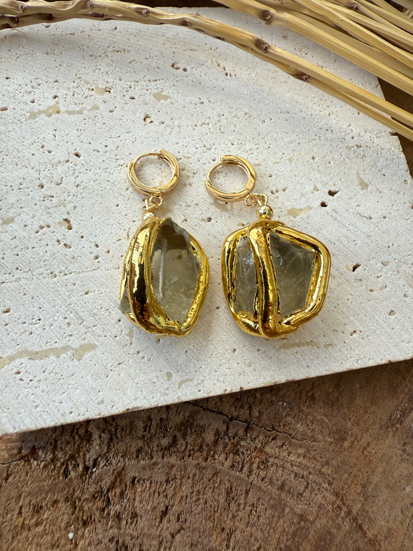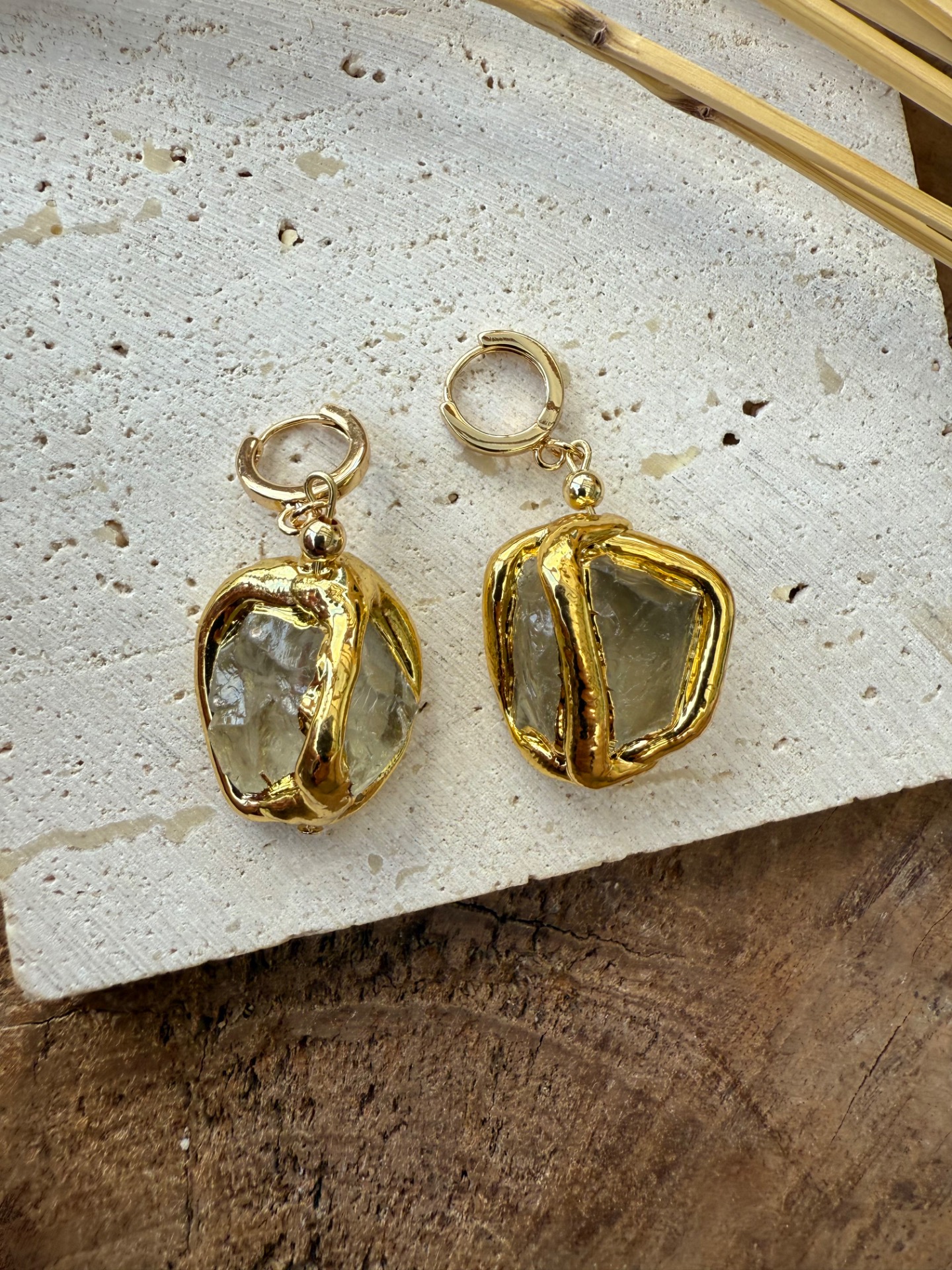 Tieto vysiace náušnice spájajú energiu slnečného citrínu s jemným zlatým detailom. Citrín symbolizuje radosť, hojnosť a životnú energiu, zatiaľ čo dizajn pôsobí luxusne a moderné. Ideálne na denné nosenie aj do elegantných kombinácií, kde priťahujú pozornosť a svetlo.