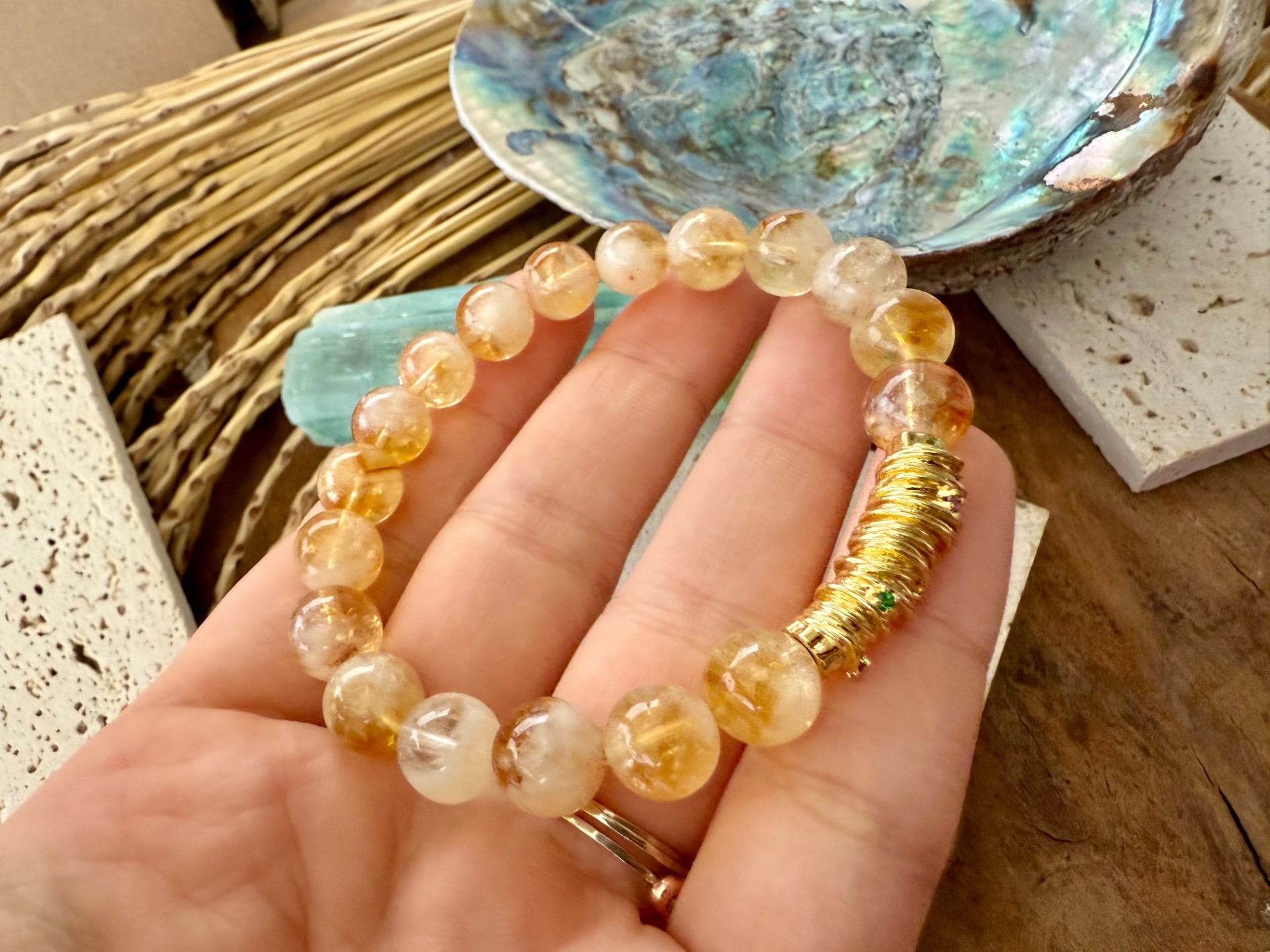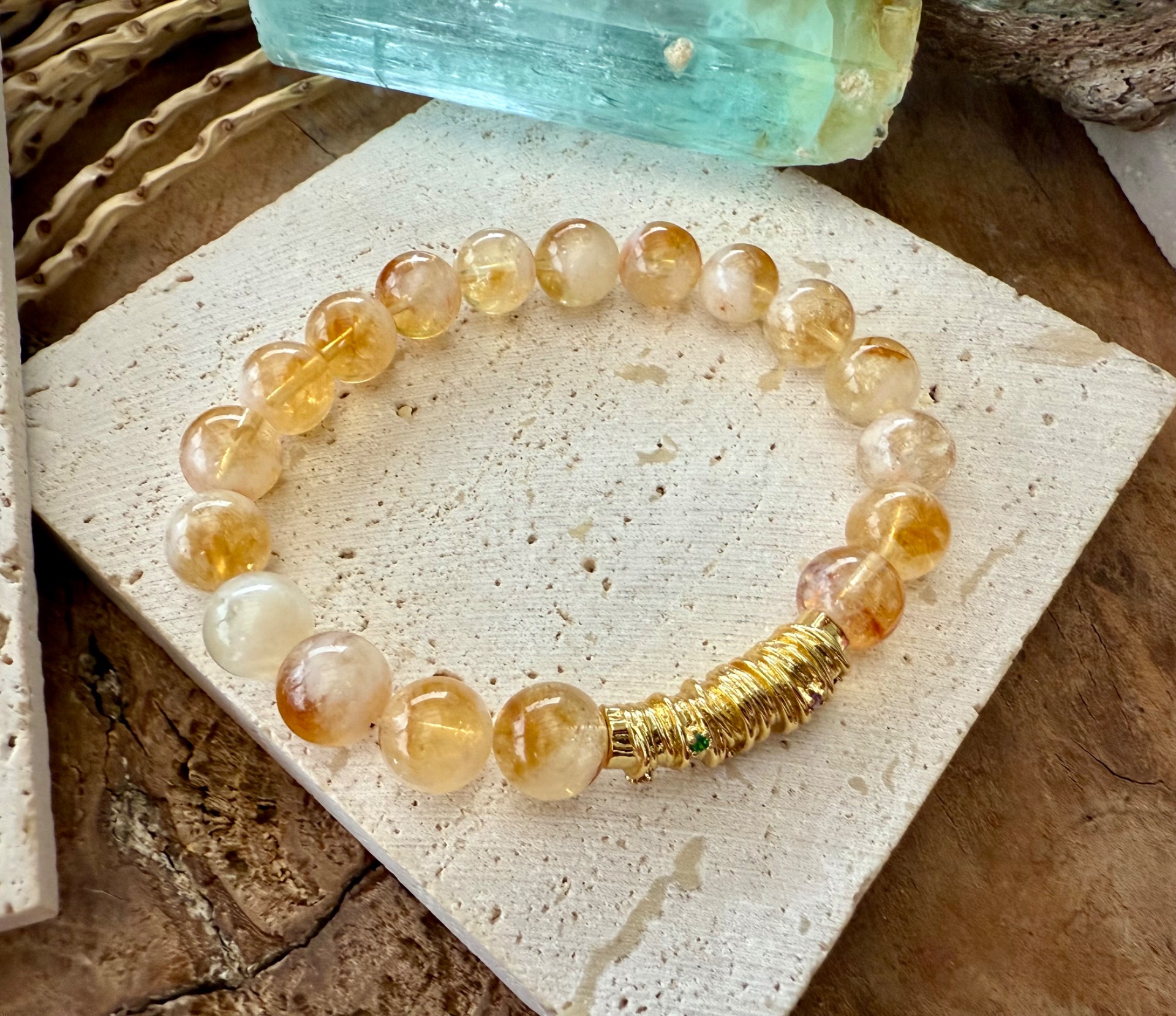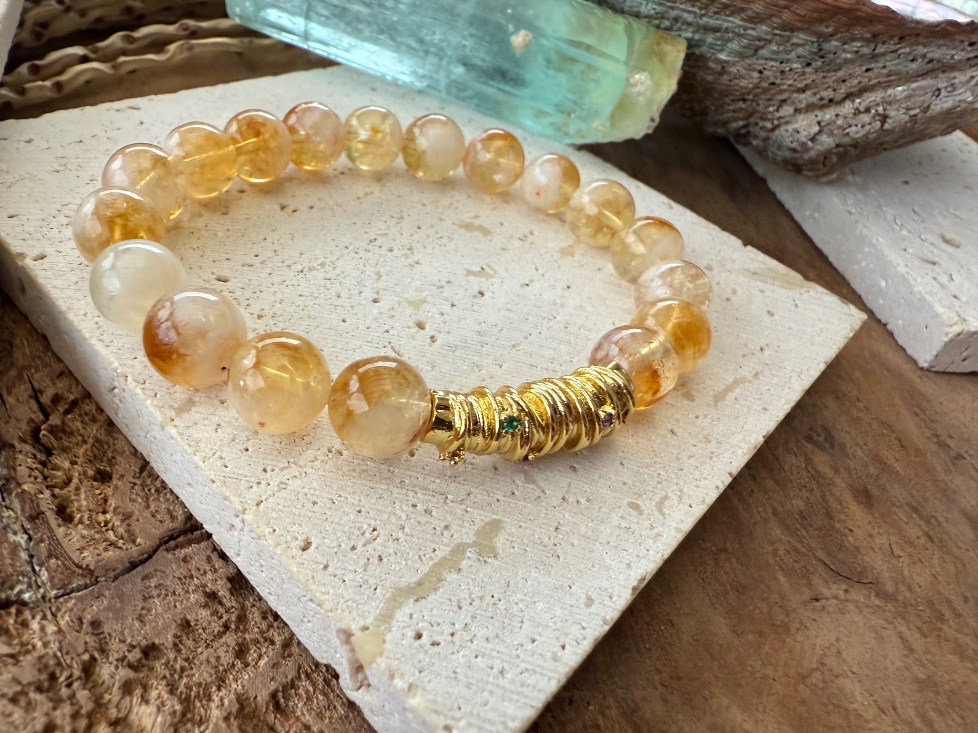 Náramok z minerálu citrín 10mm doplnený gold doplnkom.