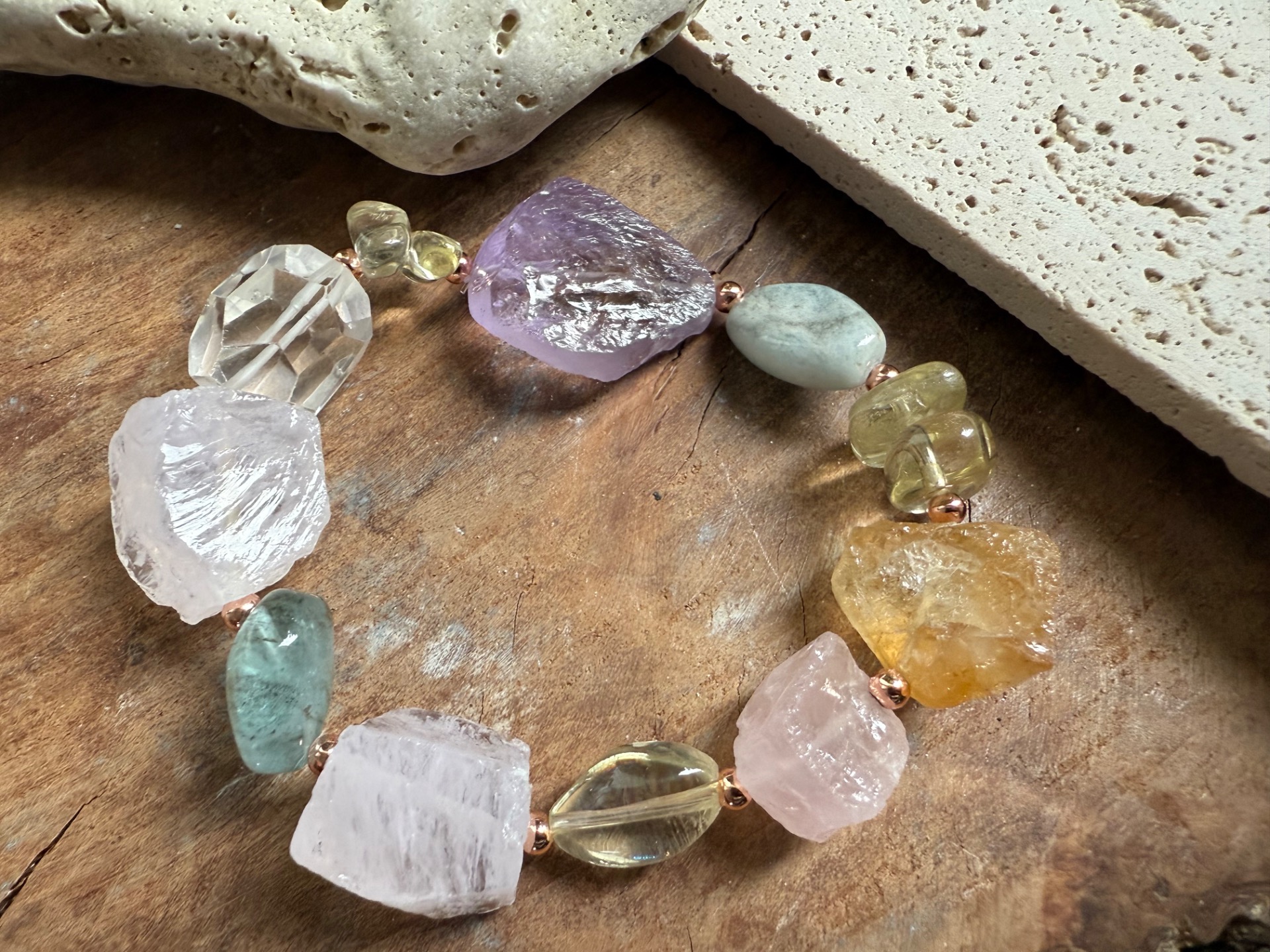 Tento náramok je ako slnečný lúč pre tvoju dušu – spája surovú krásu kameňov s harmóniou a jasom.
