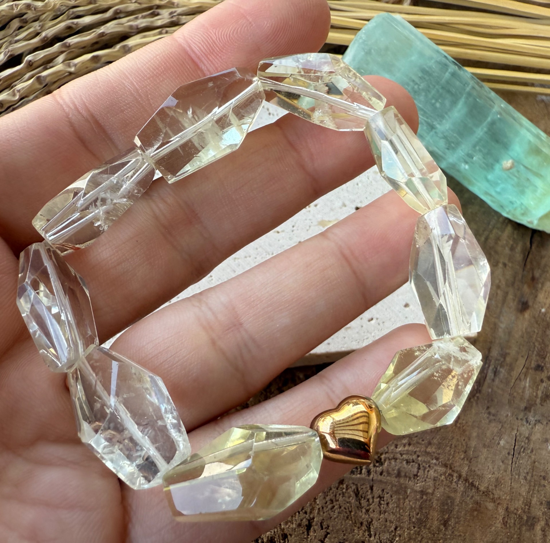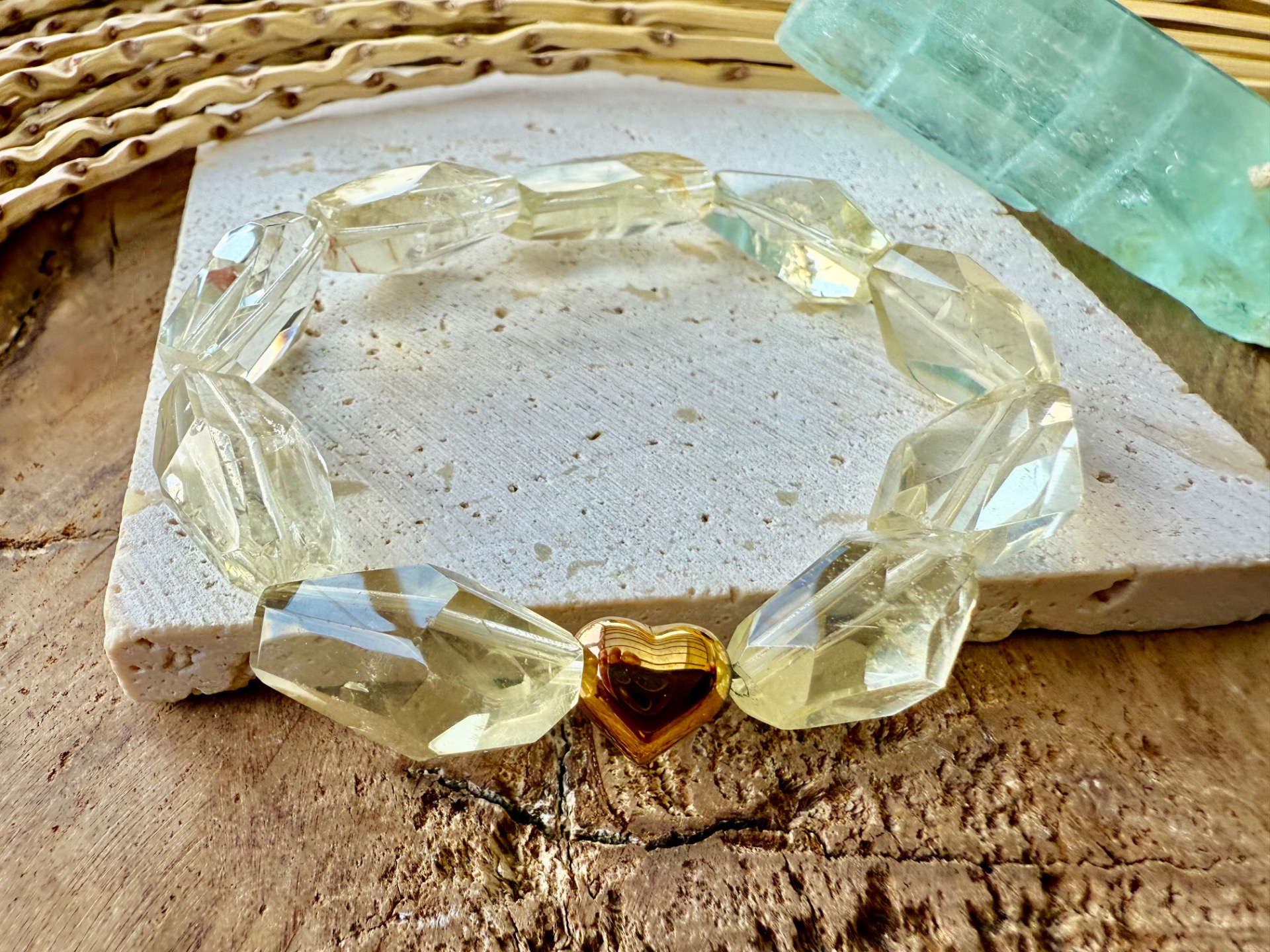 Náramok z minerálu citrín nugety 2cm brúsené , doplnený nerezovým srdiečkom gold.