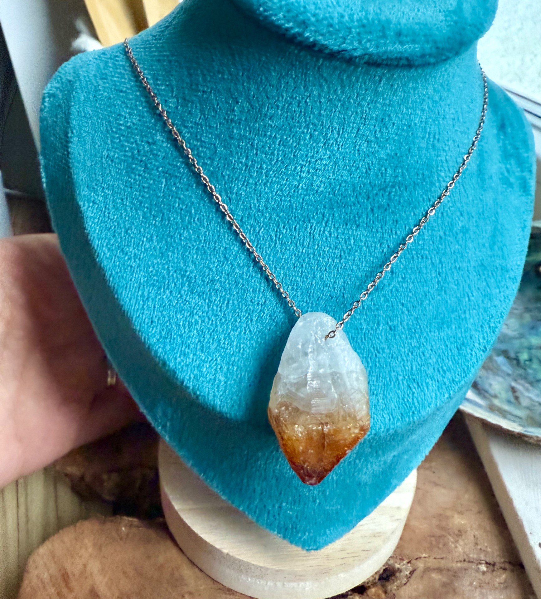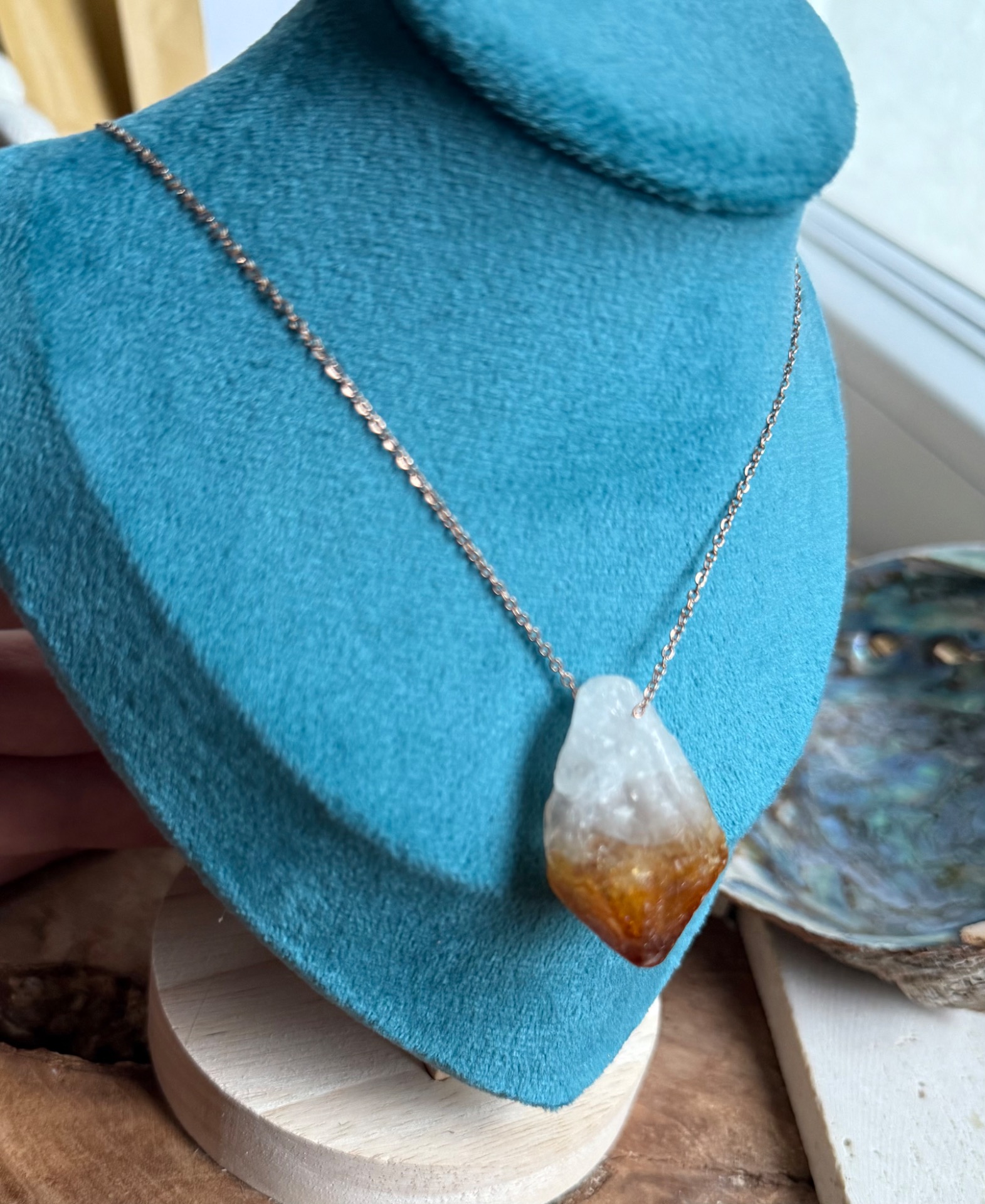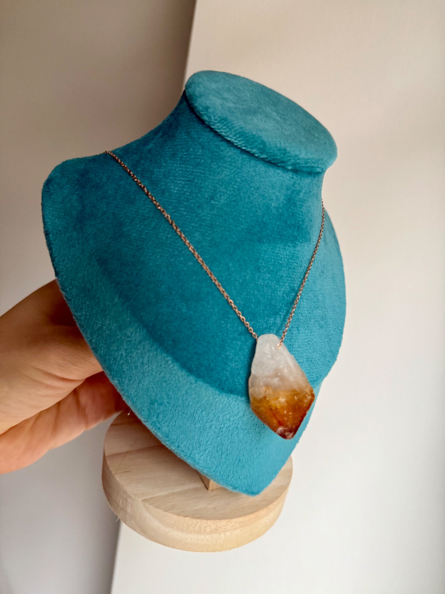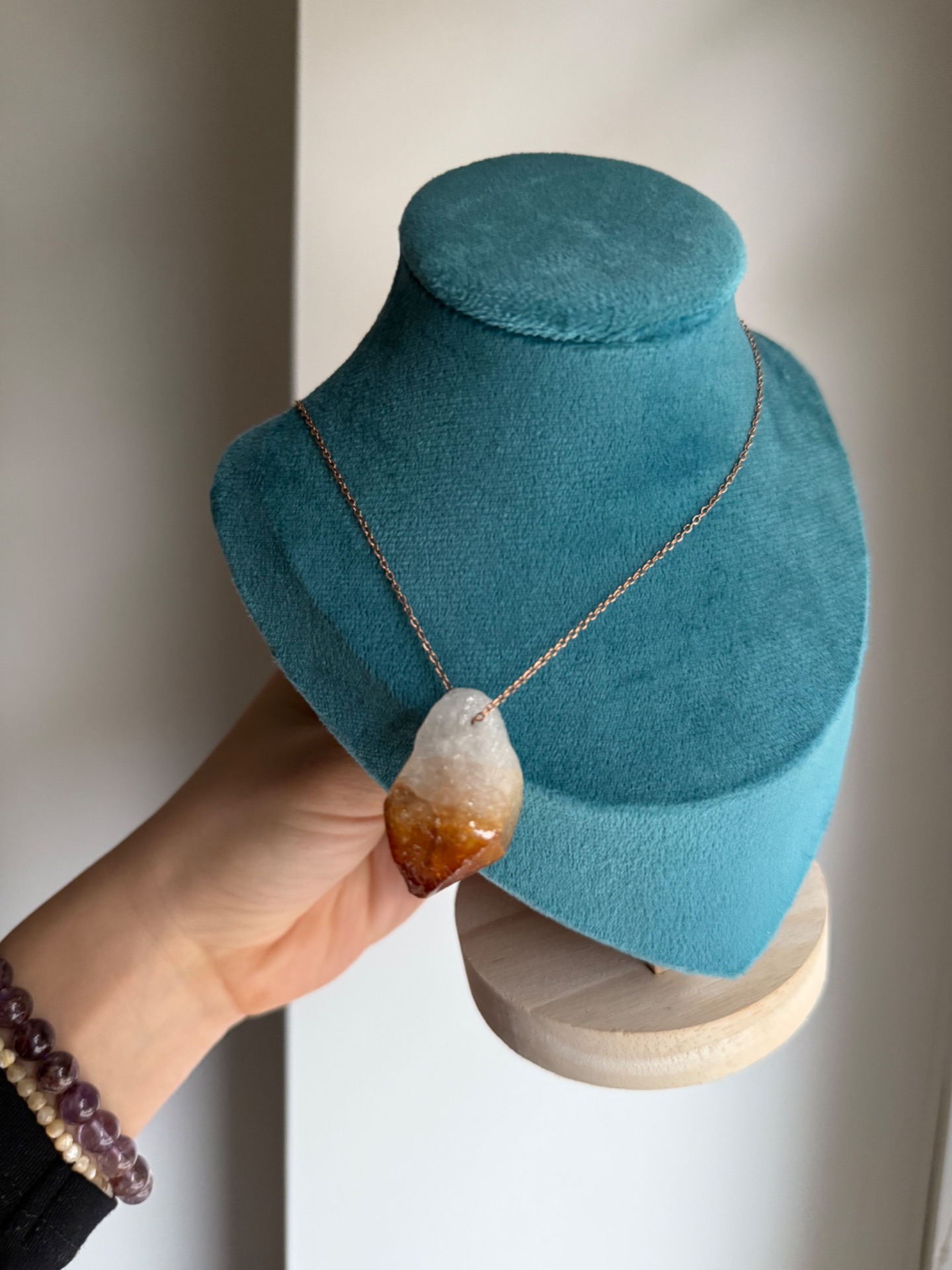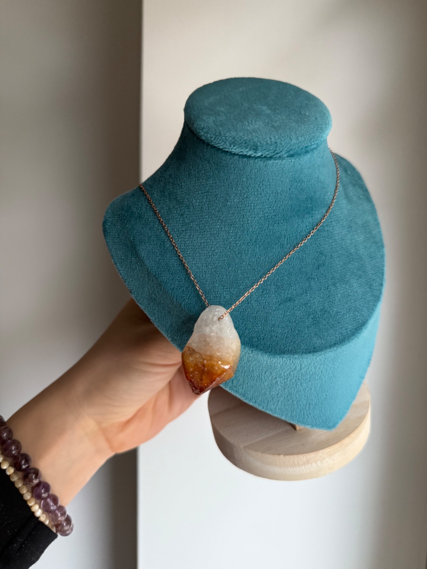 Citrín je vŕtány bočne dá sa prevliecť aj na inú retiazku.