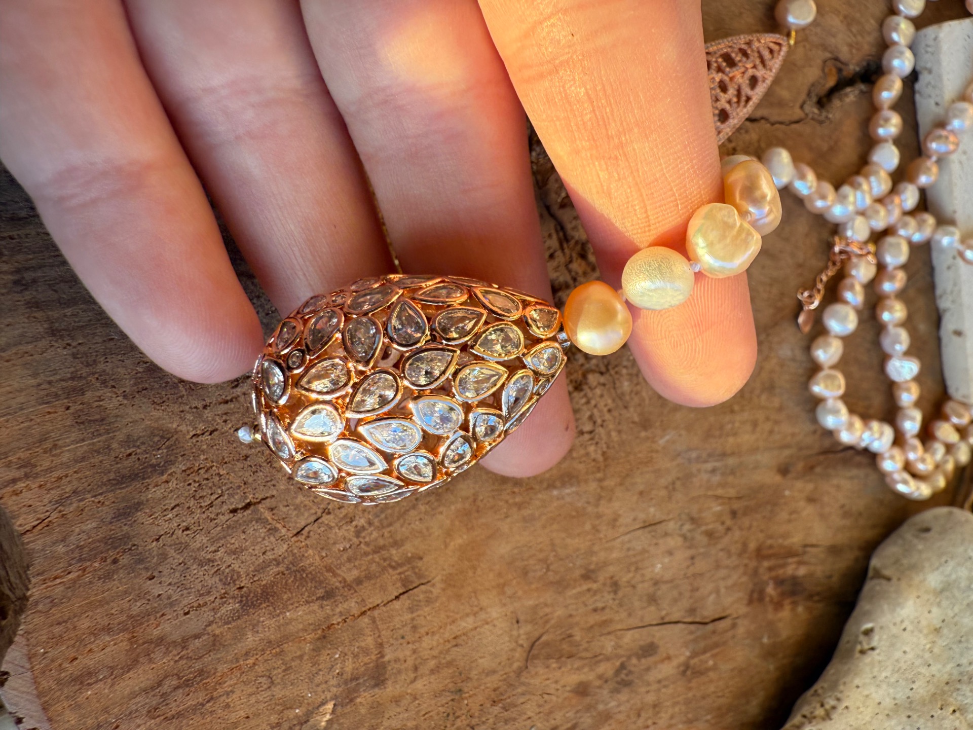 Rose gold tón dodáva šperku mäkkosť a ženskosť. Je hrejivý, nežný a zároveň výrazný.
