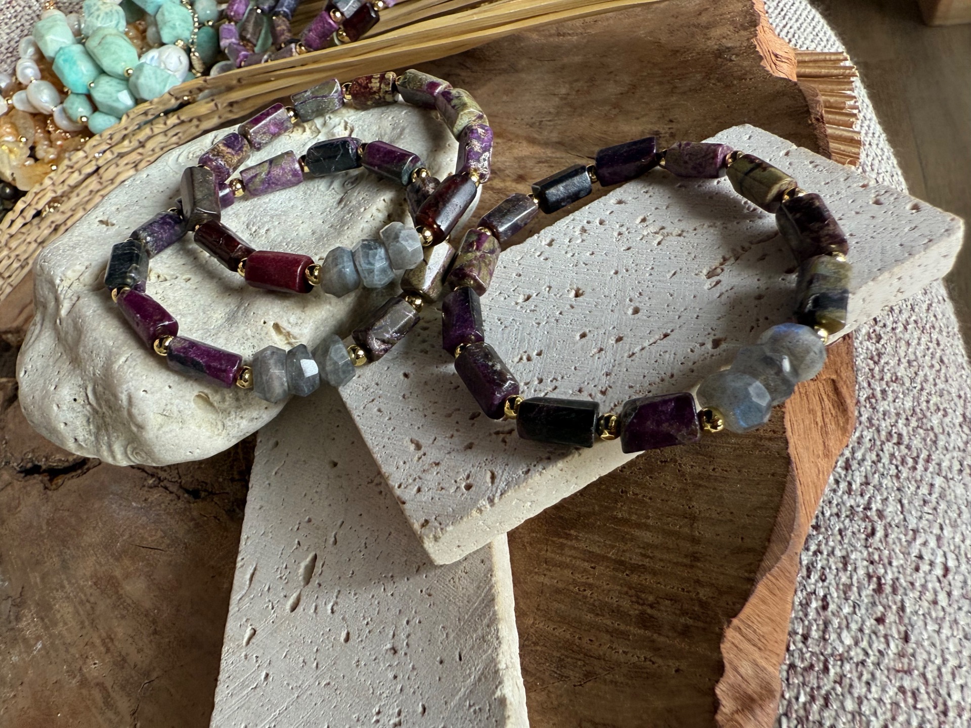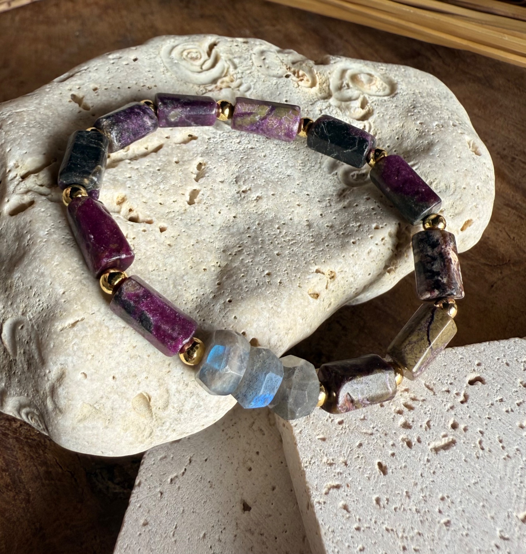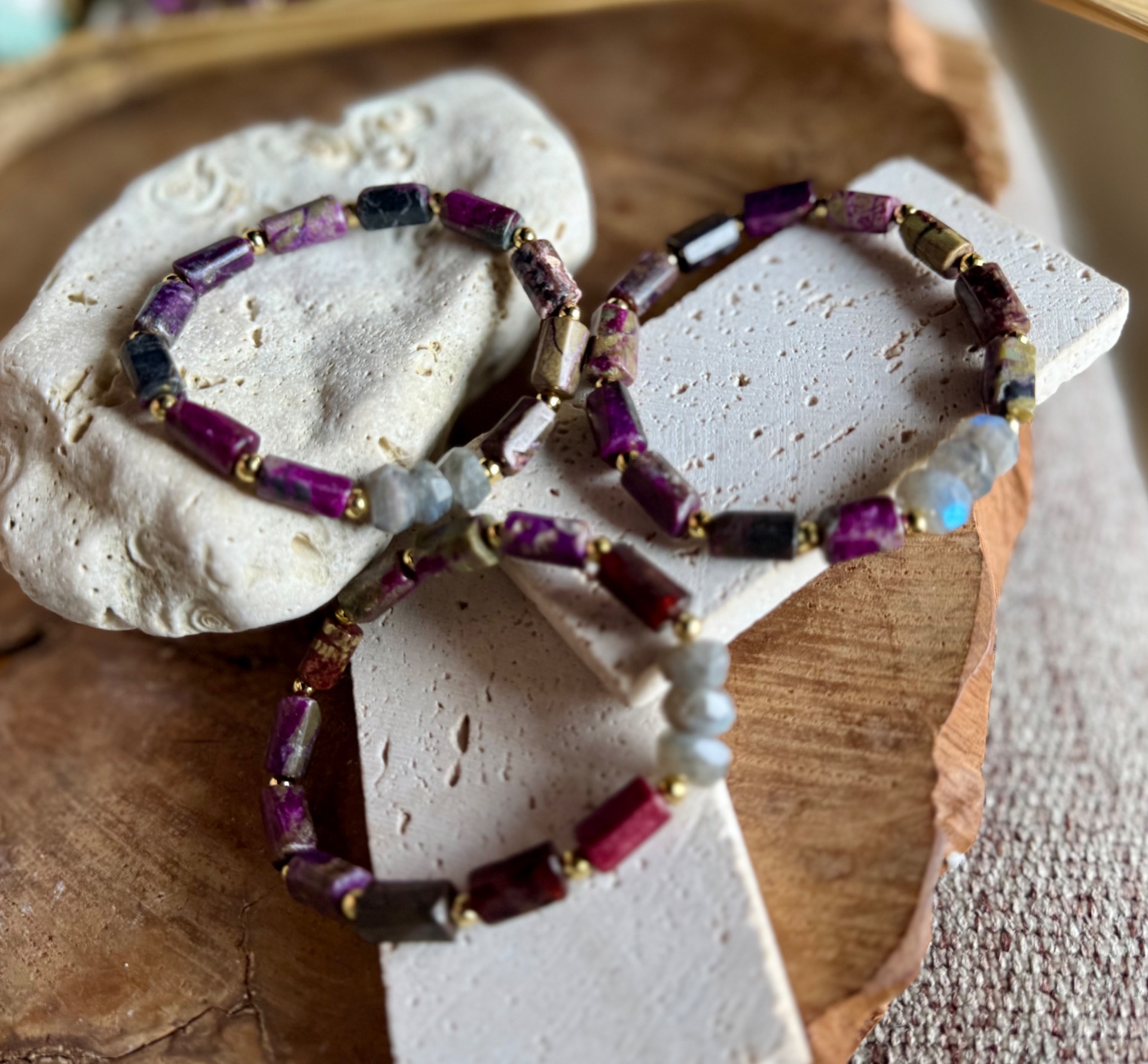 Náramok "Eudialit & Dúhový Labradorit"