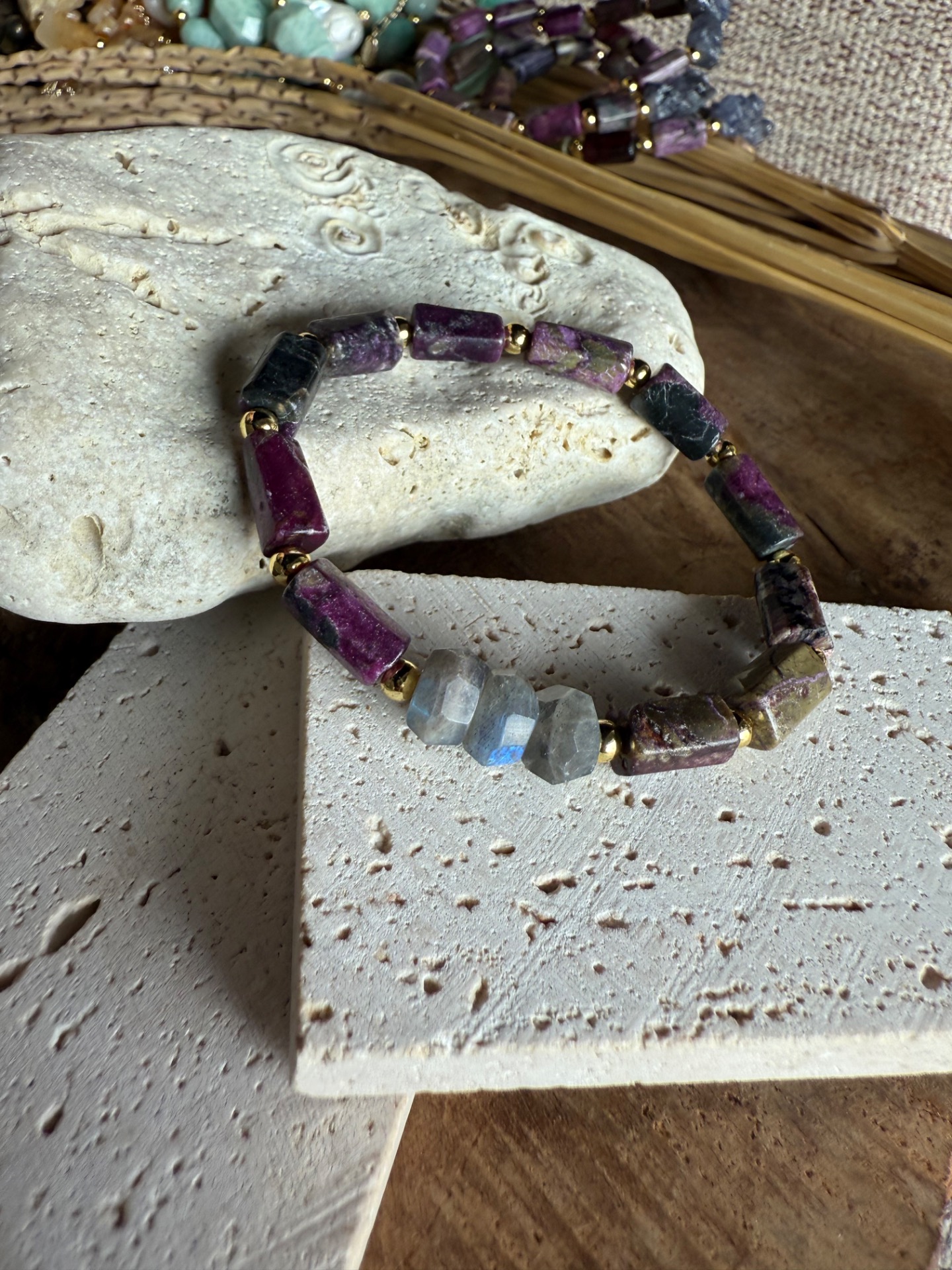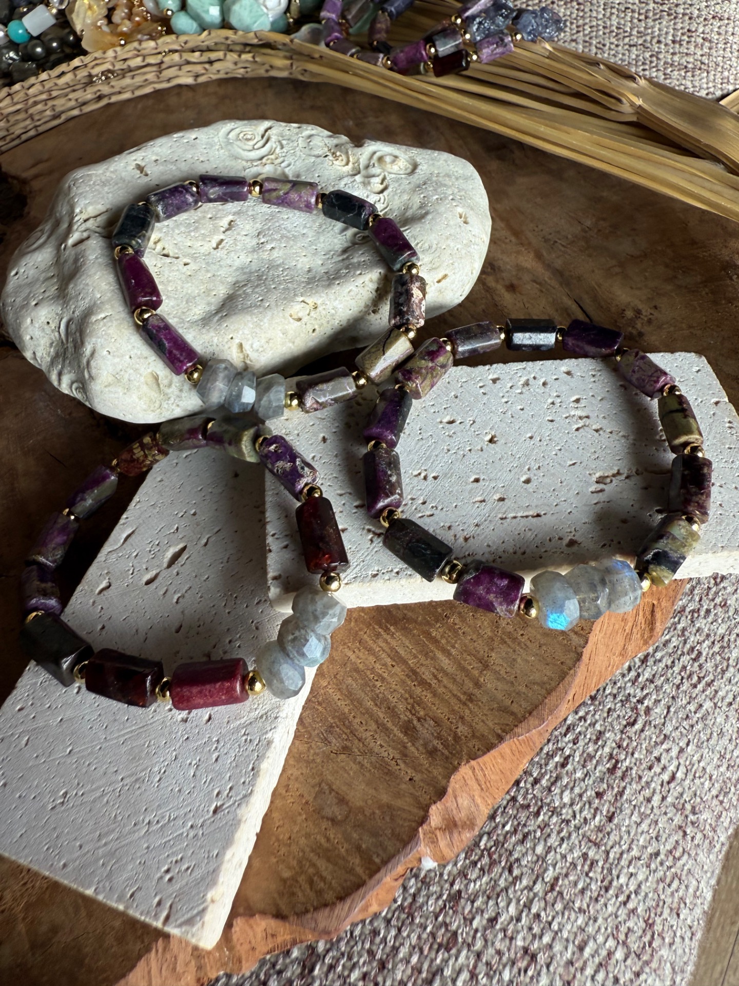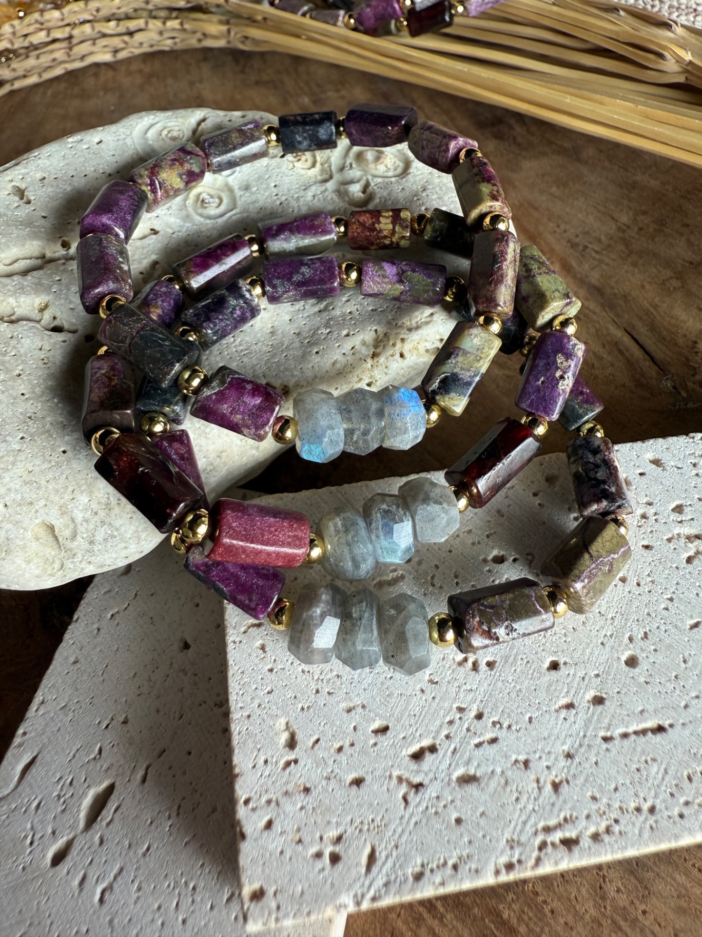Náramok "Eudialit & Dúhový Labradorit"