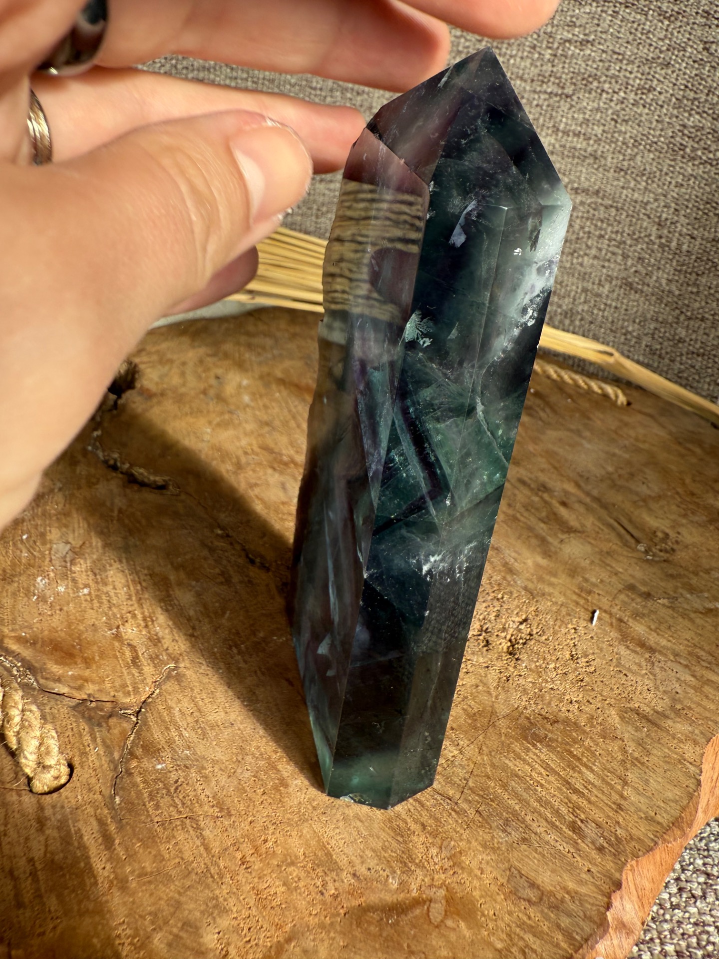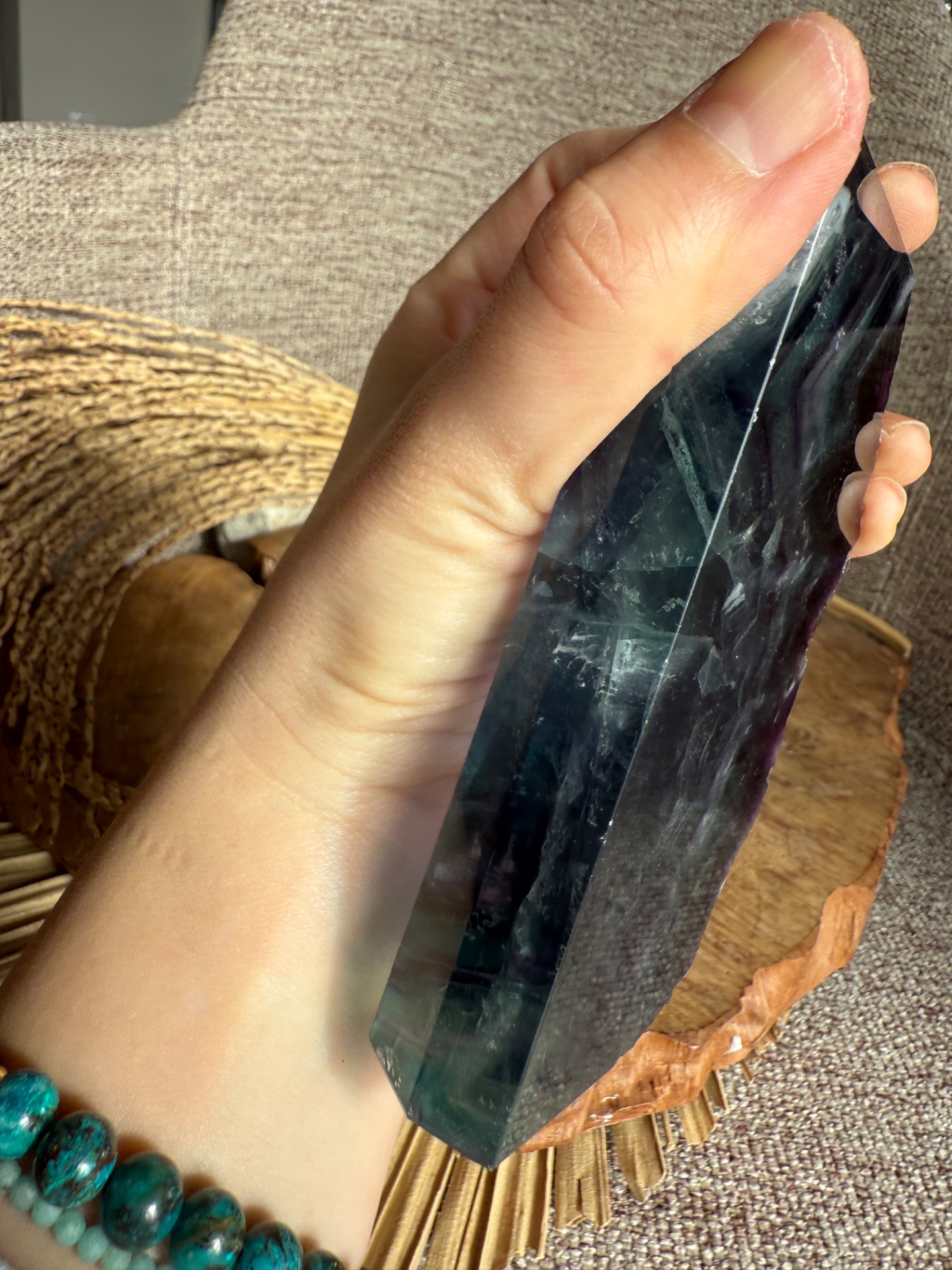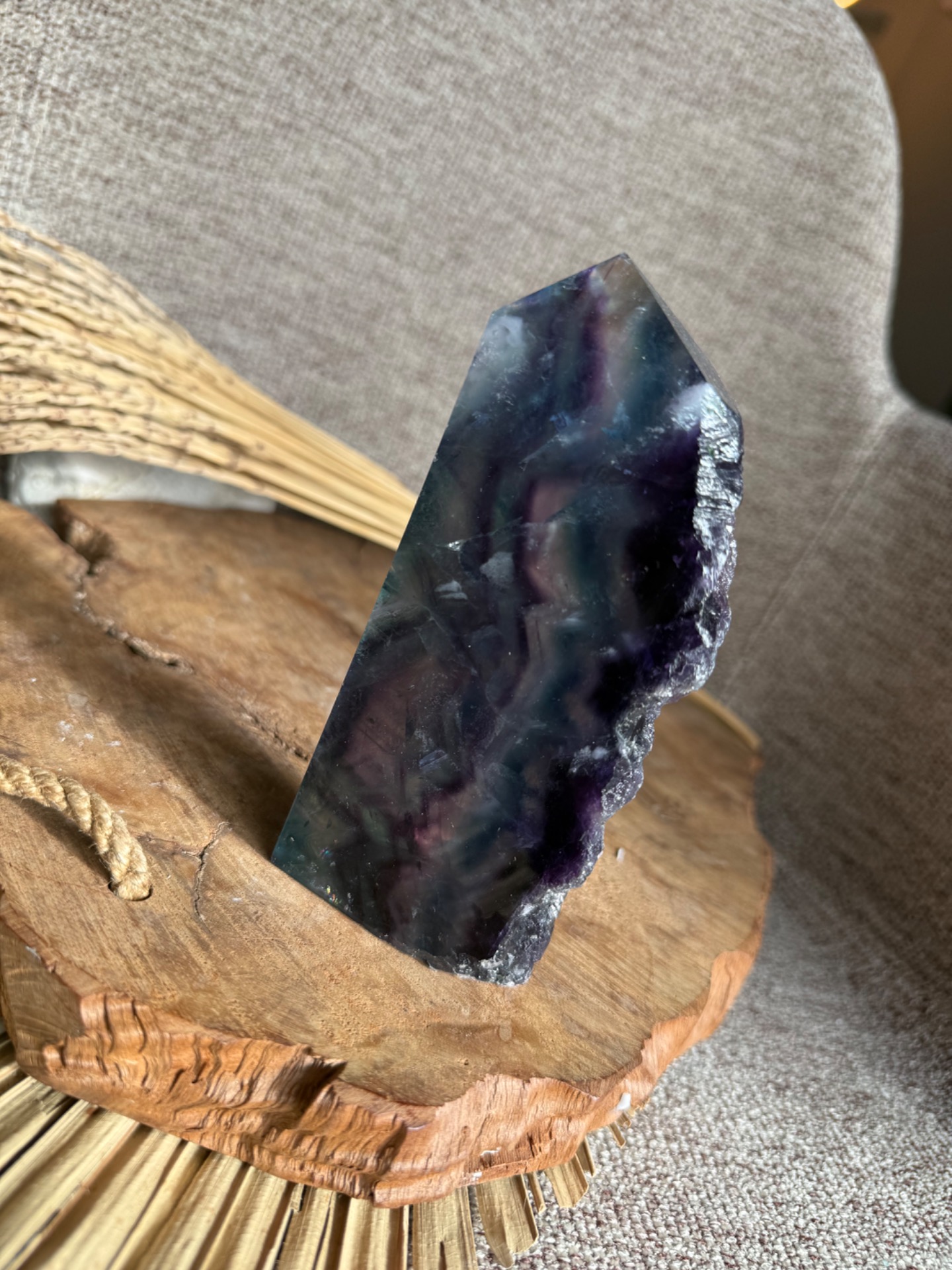 Fluorit je kryštál obdarený silnou ochrannou mocou, zvlášť na duševnej úrovni. Pomôže rozoznať, kedy sa v našom vnútri snažia prejaviť cudzie vplyvy. Súčasne dokáže zastaviť pôsobenie psychickej manipulácie a nevhodného duševného vplyvu. Kryštál fluoritu prečisťuje a stabilizuje auru. Mimoriadne účinne funguje proti škodlivým vplyvom počítačov a elektromagnetickému žiareniu. Ak je správne umiestnený, blokuje geopatogénne zóny. Ak sa použije k liečbe, zaháňa fluorit negatívne energie a poruchy každého druhu. Čistí, odstraňuje a reorganizuje v tele všetko, čo nie je v absolútnom poriadku. Jedná sa o najlepšie fungujúci kryštál, pokiaľ ide o prekonanie akéhokoľvek nesúladu v tele.