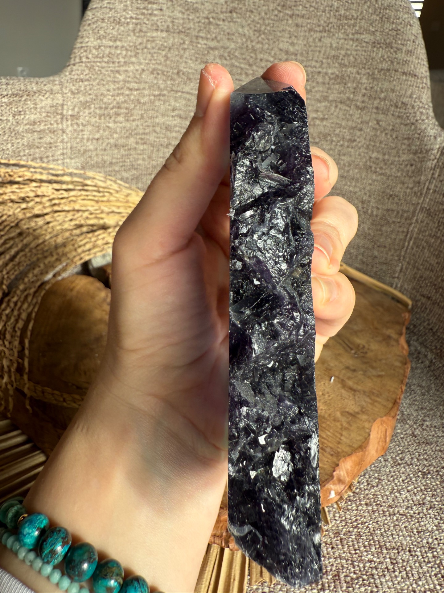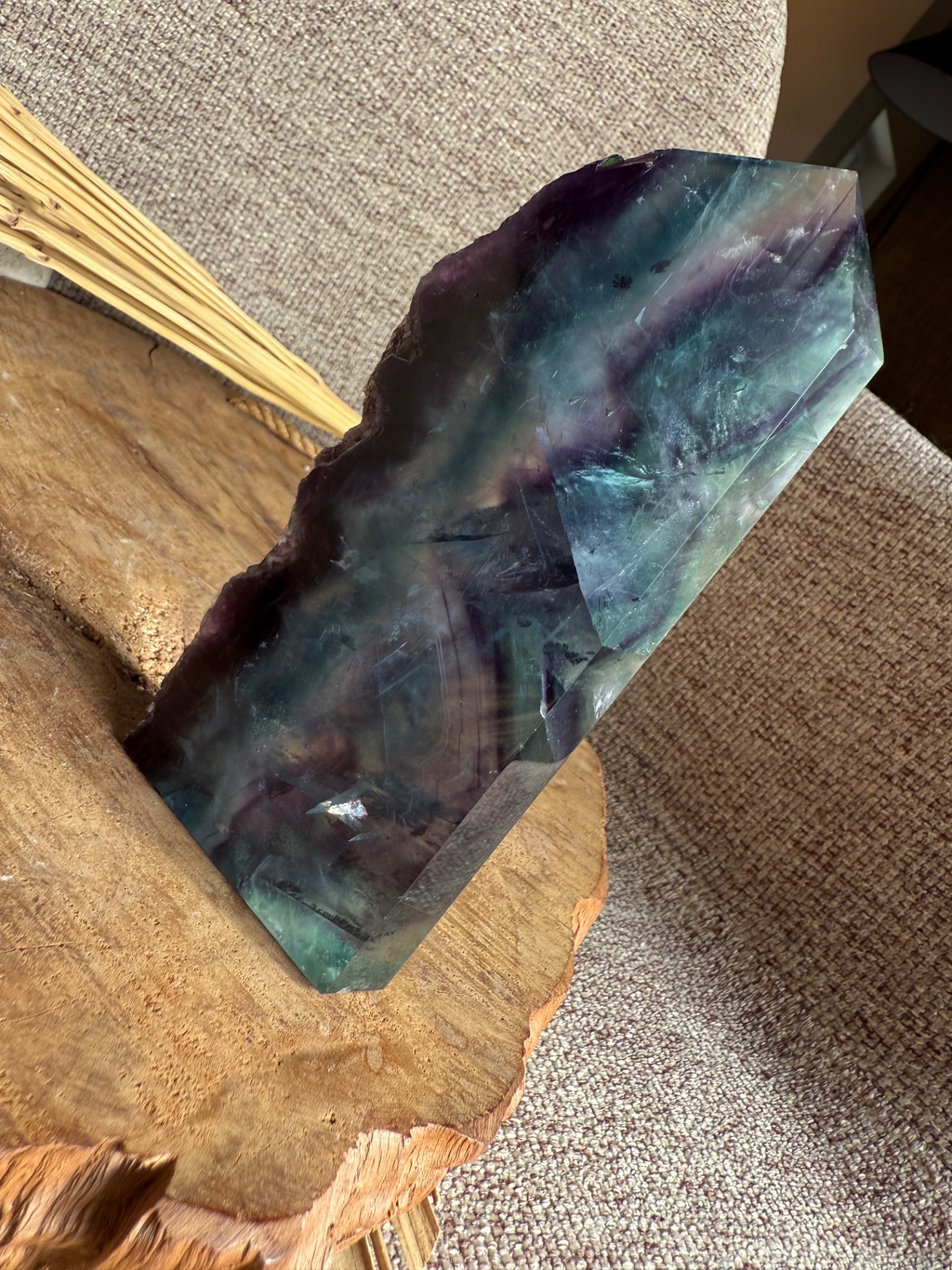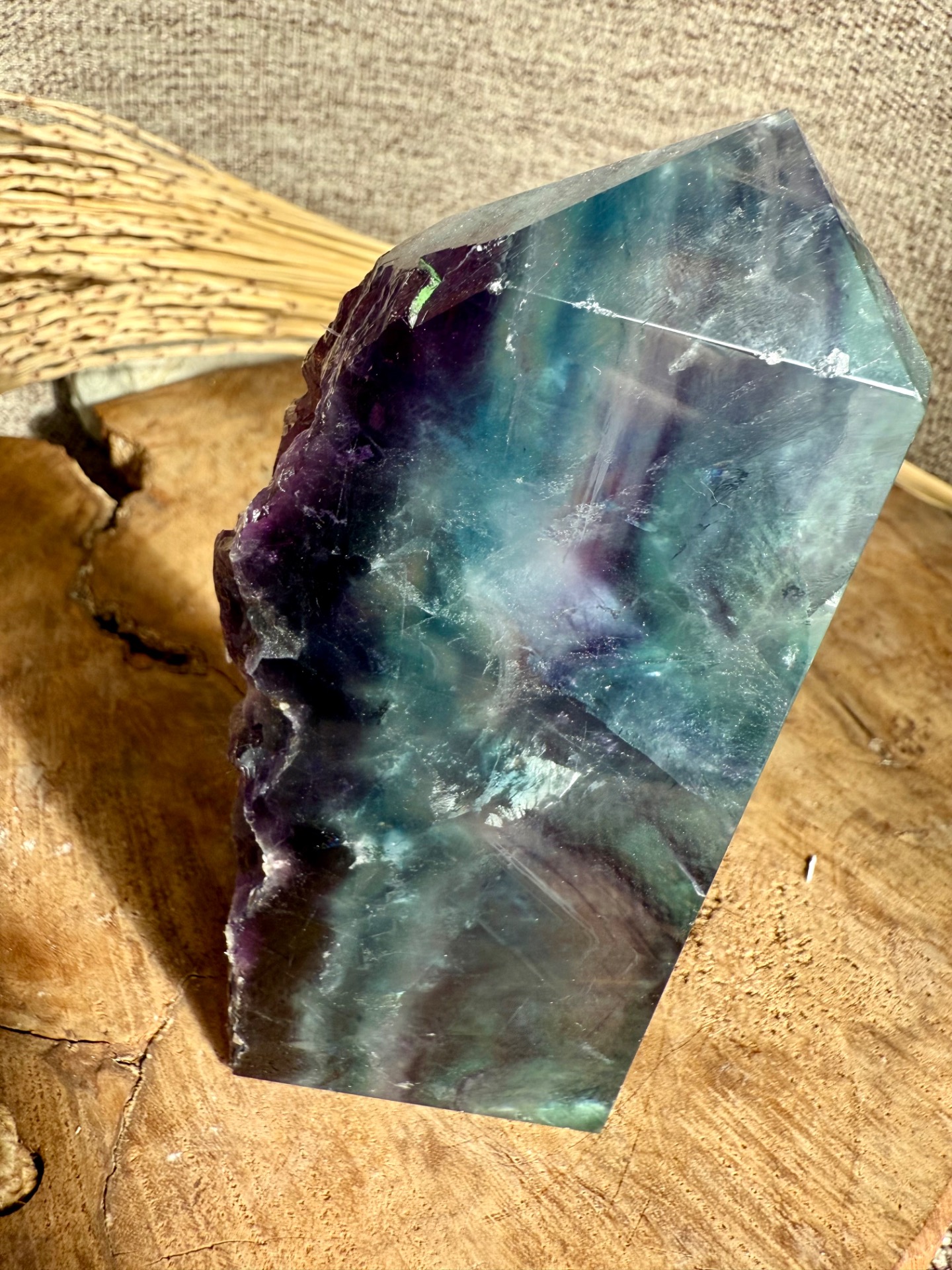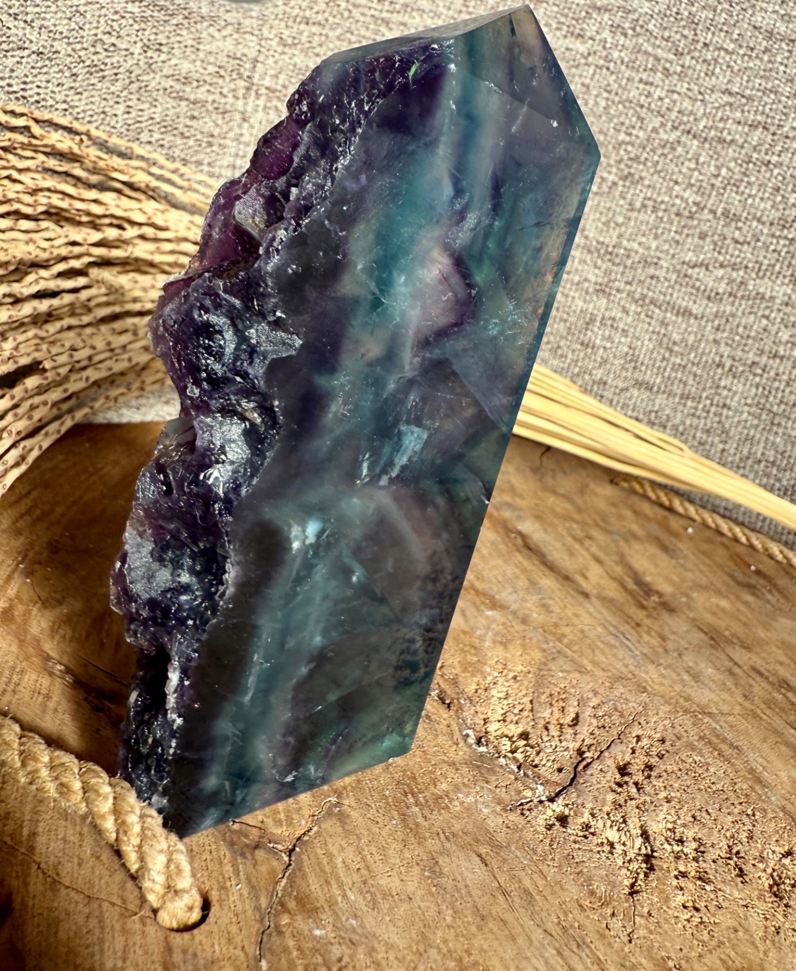 Fluorit je kryštál obdarený silnou ochrannou mocou, zvlášť na duševnej úrovni. Pomôže rozoznať, kedy sa v našom vnútri snažia prejaviť cudzie vplyvy. Súčasne dokáže zastaviť pôsobenie psychickej manipulácie a nevhodného duševného vplyvu. Kryštál fluoritu prečisťuje a stabilizuje auru. Mimoriadne účinne funguje proti škodlivým vplyvom počítačov a elektromagnetickému žiareniu. Ak je správne umiestnený, blokuje geopatogénne zóny. Ak sa použije k liečbe, zaháňa fluorit negatívne energie a poruchy každého druhu. Čistí, odstraňuje a reorganizuje v tele všetko, čo nie je v absolútnom poriadku. Jedná sa o najlepšie fungujúci kryštál, pokiaľ ide o prekonanie akéhokoľvek nesúladu v tele.