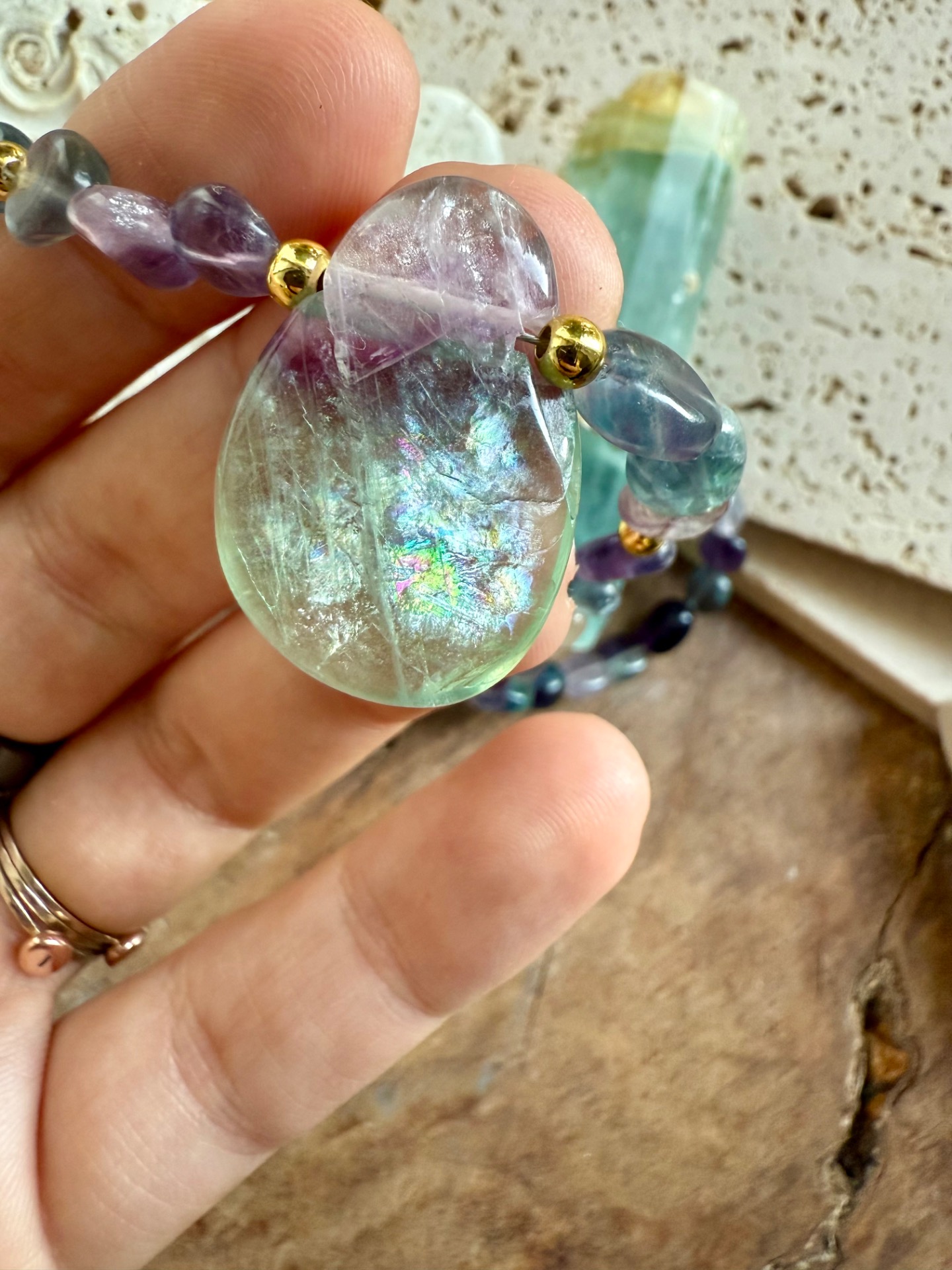 Objednajte si svoj náhrdelník z duhového fluoritu a nechajte jeho ochranné a harmonizujúce účinky preniknúť do každodenného života.