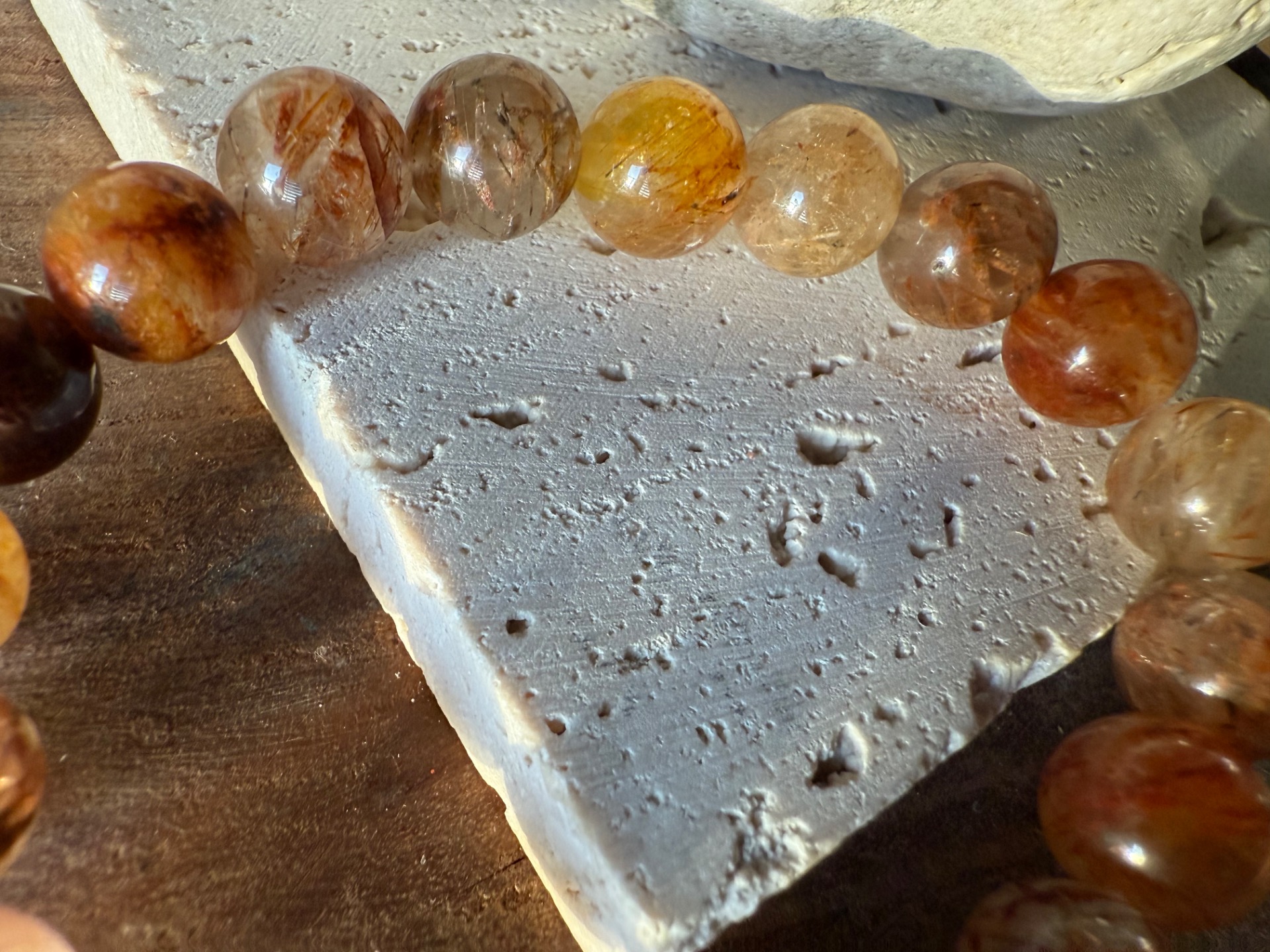 Rutilový krištáľ s výraznými prirodzenými vrostlicami v odtieňoch od oranžovej až po sýtu červenú je kameňom hlbokého liečenia a premeny. Pomáha uvoľňovať staré emočné zranenia, podvedomé bloky a stagnujúcu energiu. Zosilňuje zámer, vitalitu a podporuje regeneráciu na všetkých úrovniach.