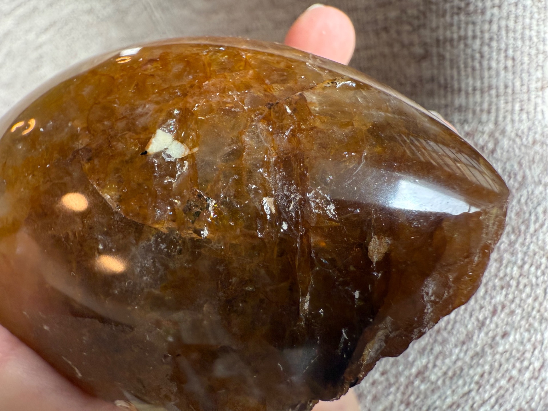 Vizualita a úprava: Kameň je opracovaný tak, že jedna strana je leštená, zatiaľ čo druhá zostáva surová, čím sa zvýrazňuje jeho prirodzená štruktúra a autentickosť. Každý kus je originál – presne tak, ako ho vidíte na fotografiách.
