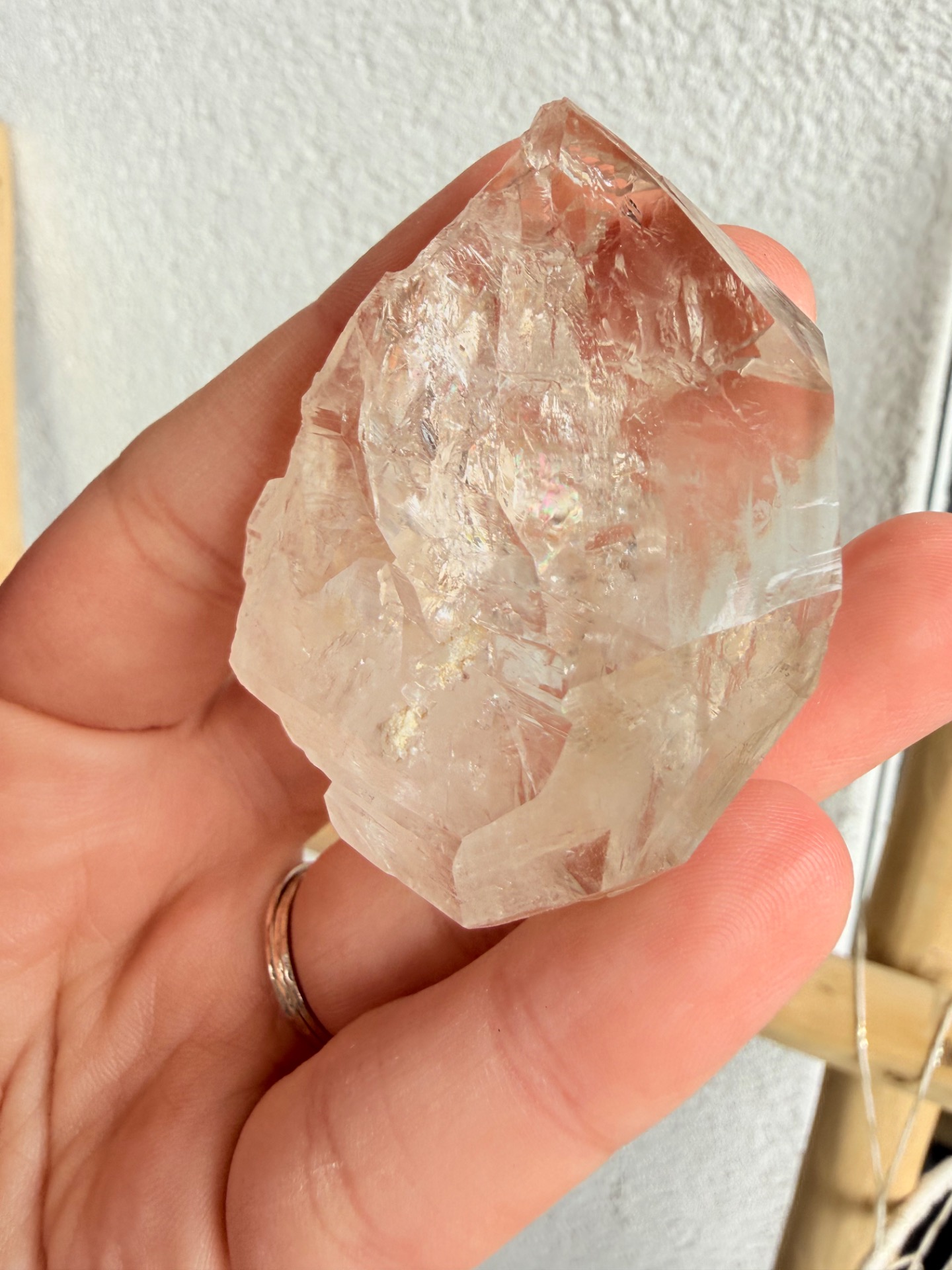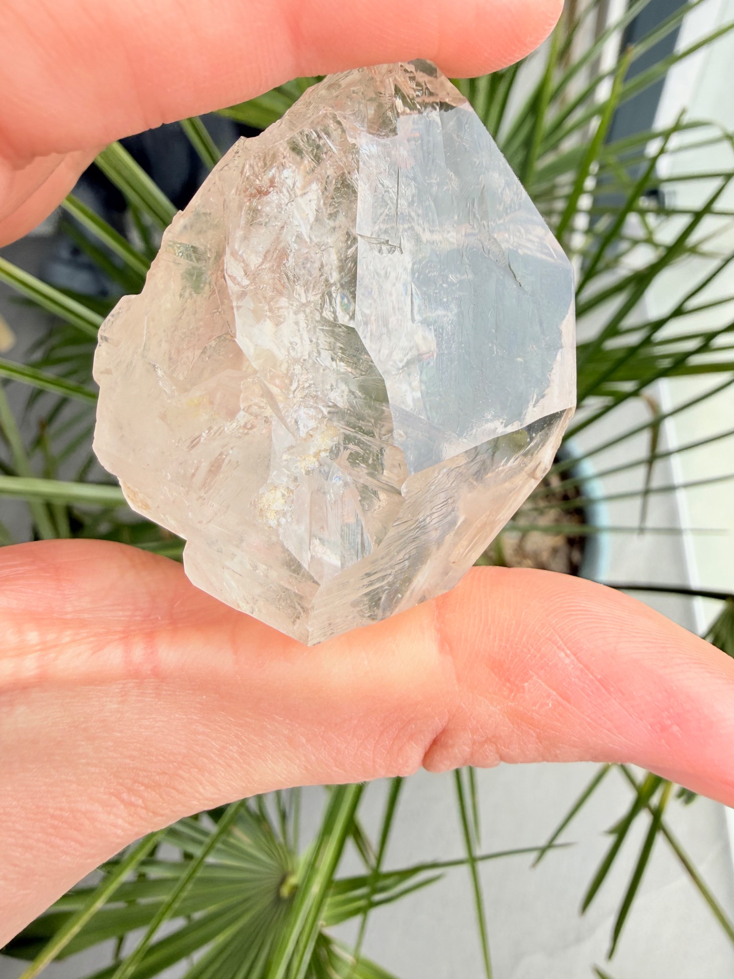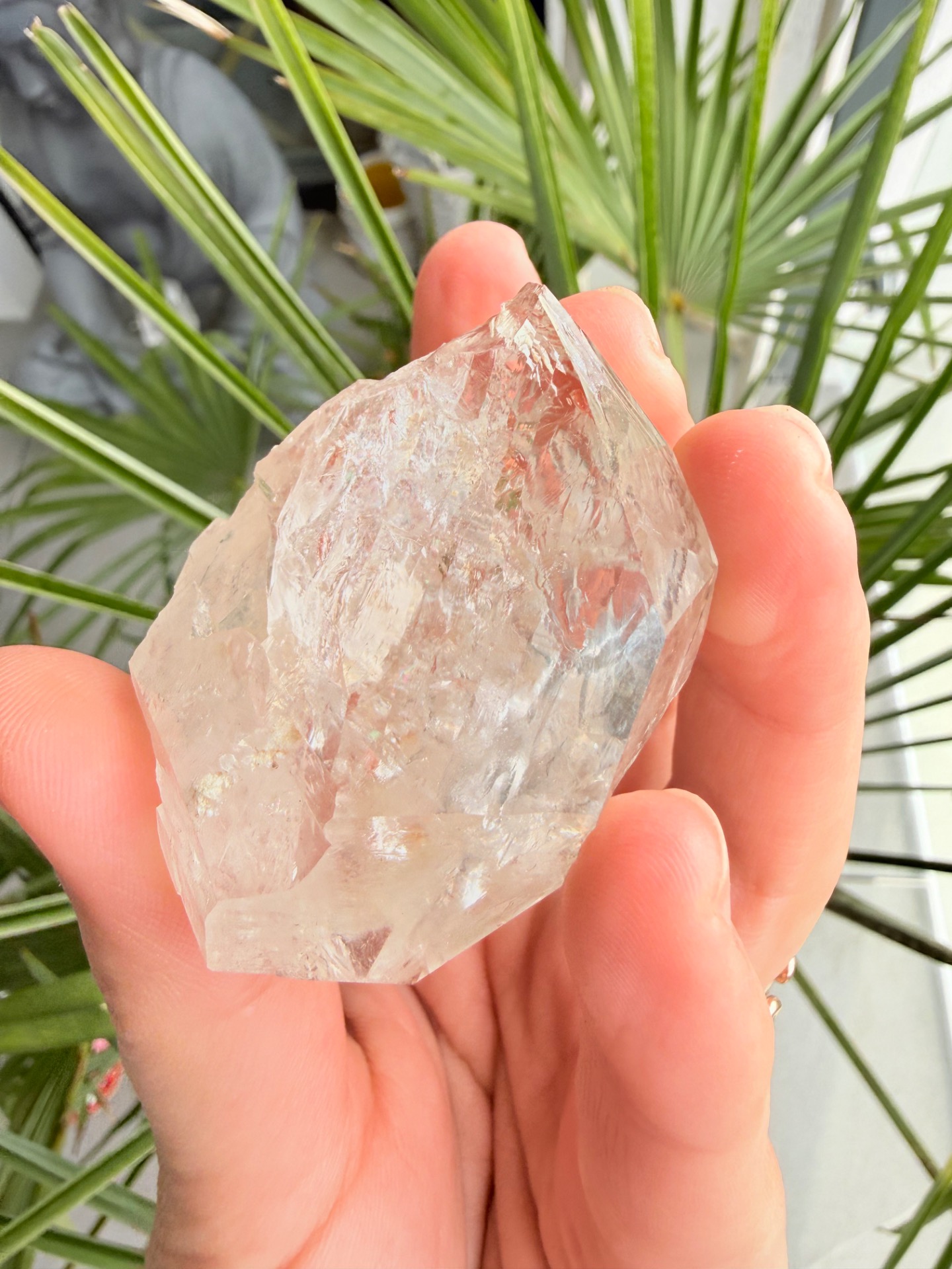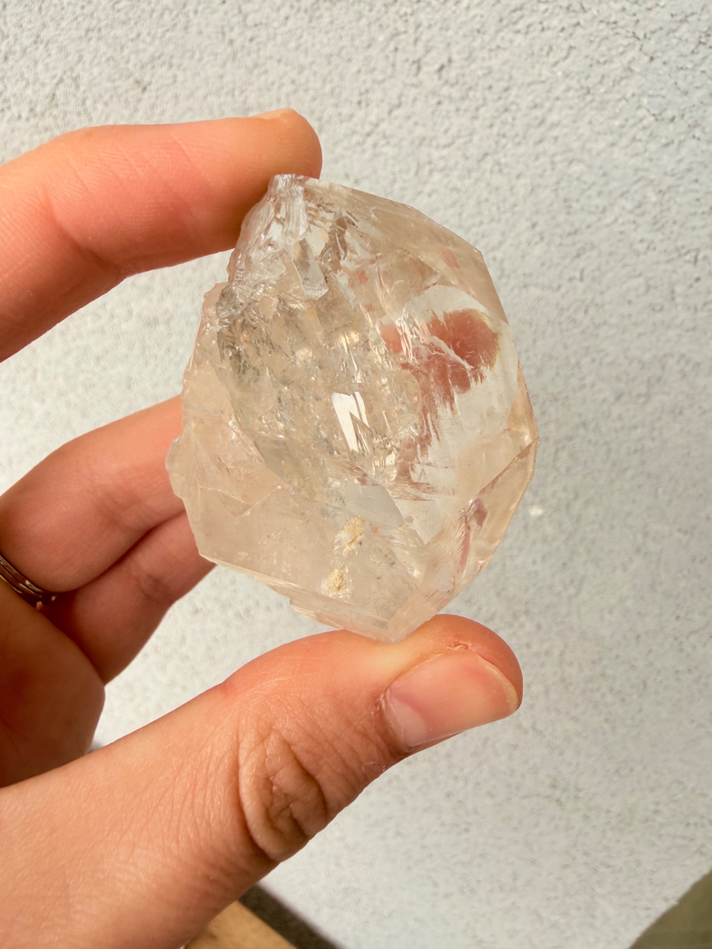 Tento jedinečný Herkimer diamant v surovej forme je výnimočný svojou prirodzenou krásou a silnou energiou. Kryštál má nádhernú kombináciu čírej a jemne tmavšej časti, ktorá vytvára fascinujúcu hru svetla a tieňa – ako symbol duality života.
