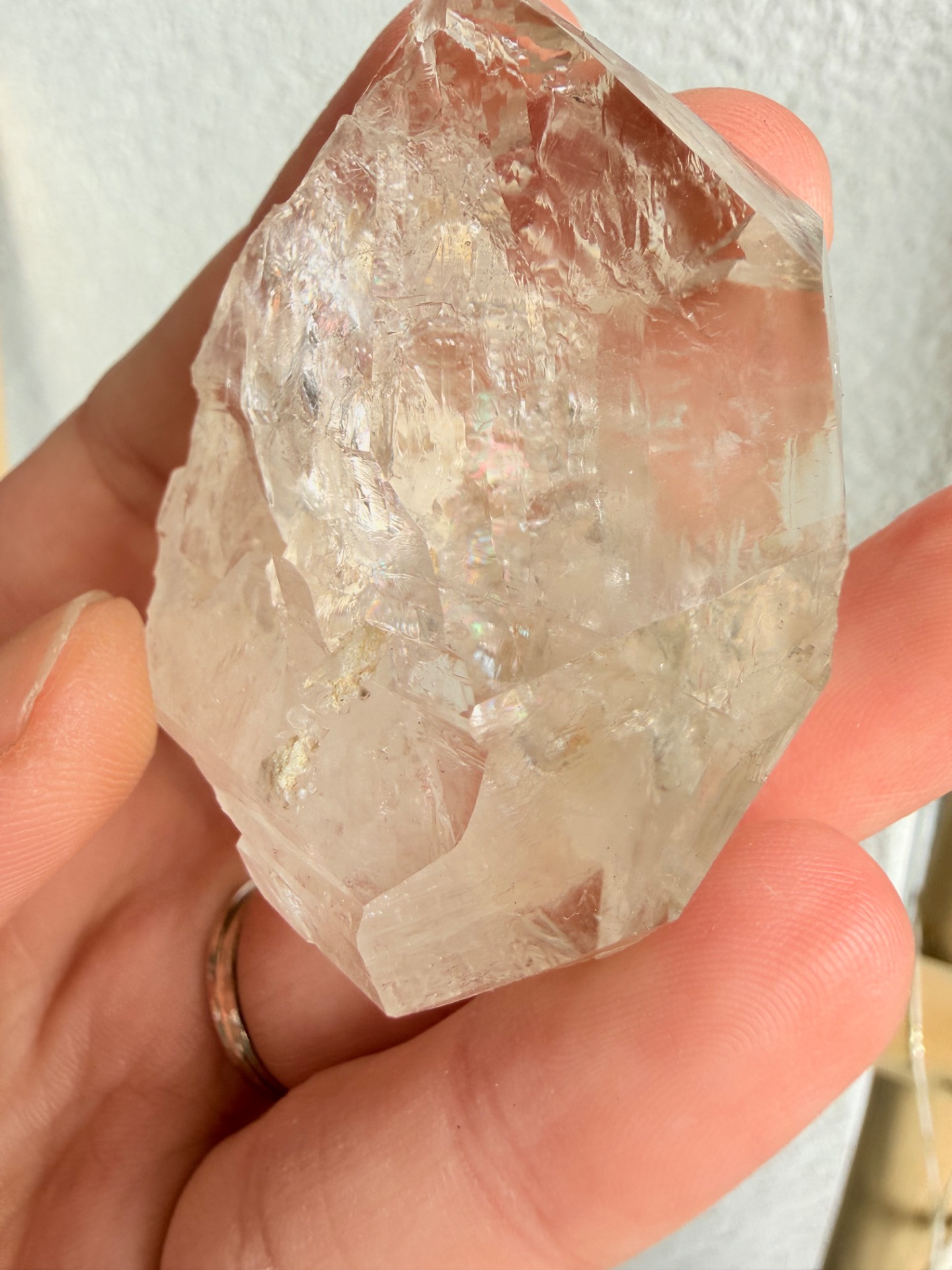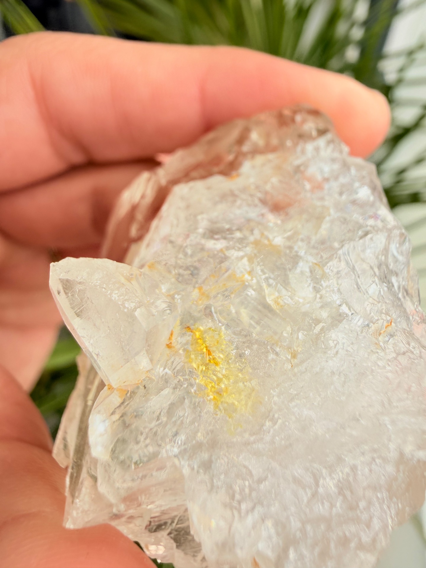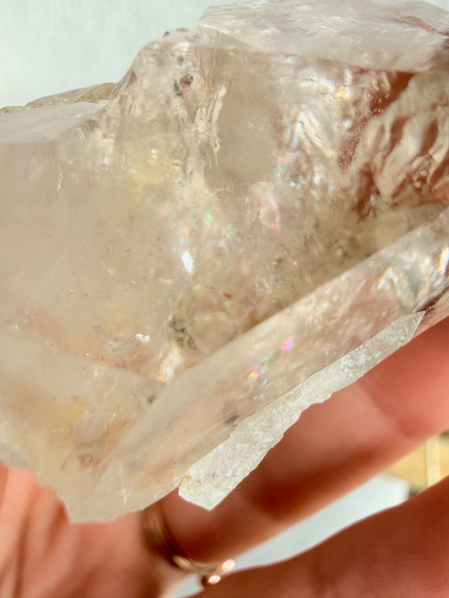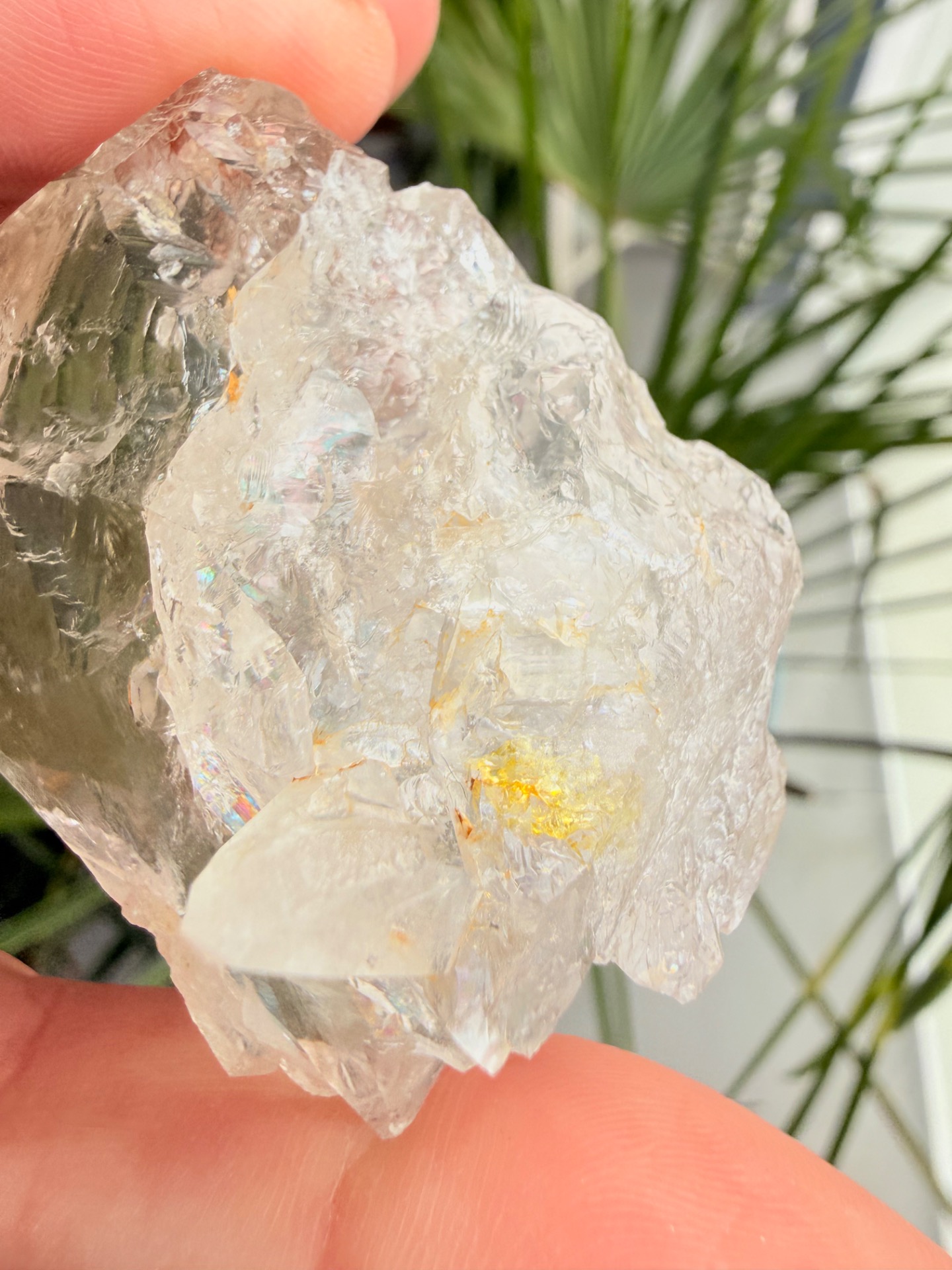 Tento jedinečný Herkimer diamant v surovej forme je výnimočný svojou prirodzenou krásou a silnou energiou. Kryštál má nádhernú kombináciu čírej a jemne tmavšej časti, ktorá vytvára fascinujúcu hru svetla a tieňa – ako symbol duality života.