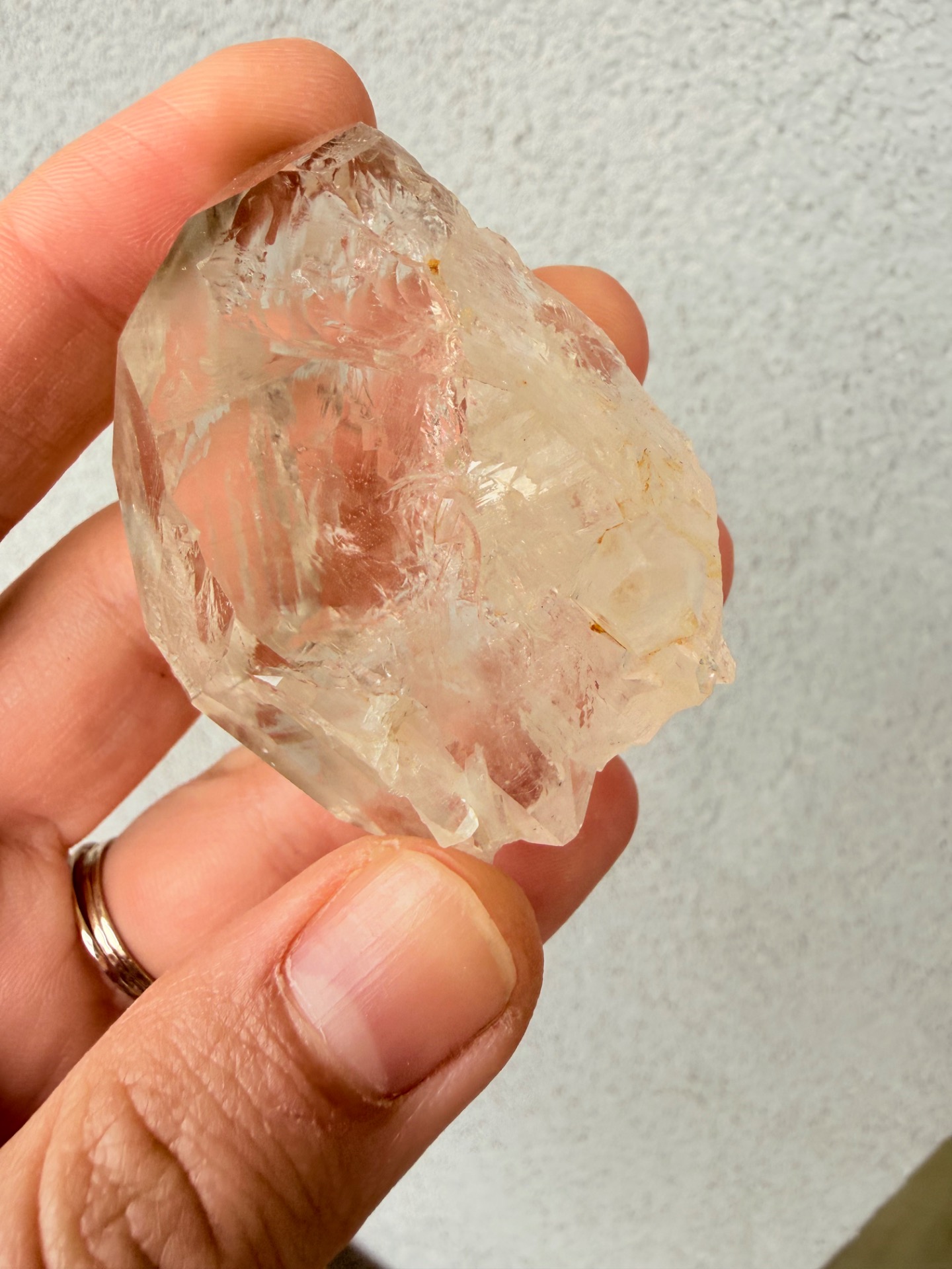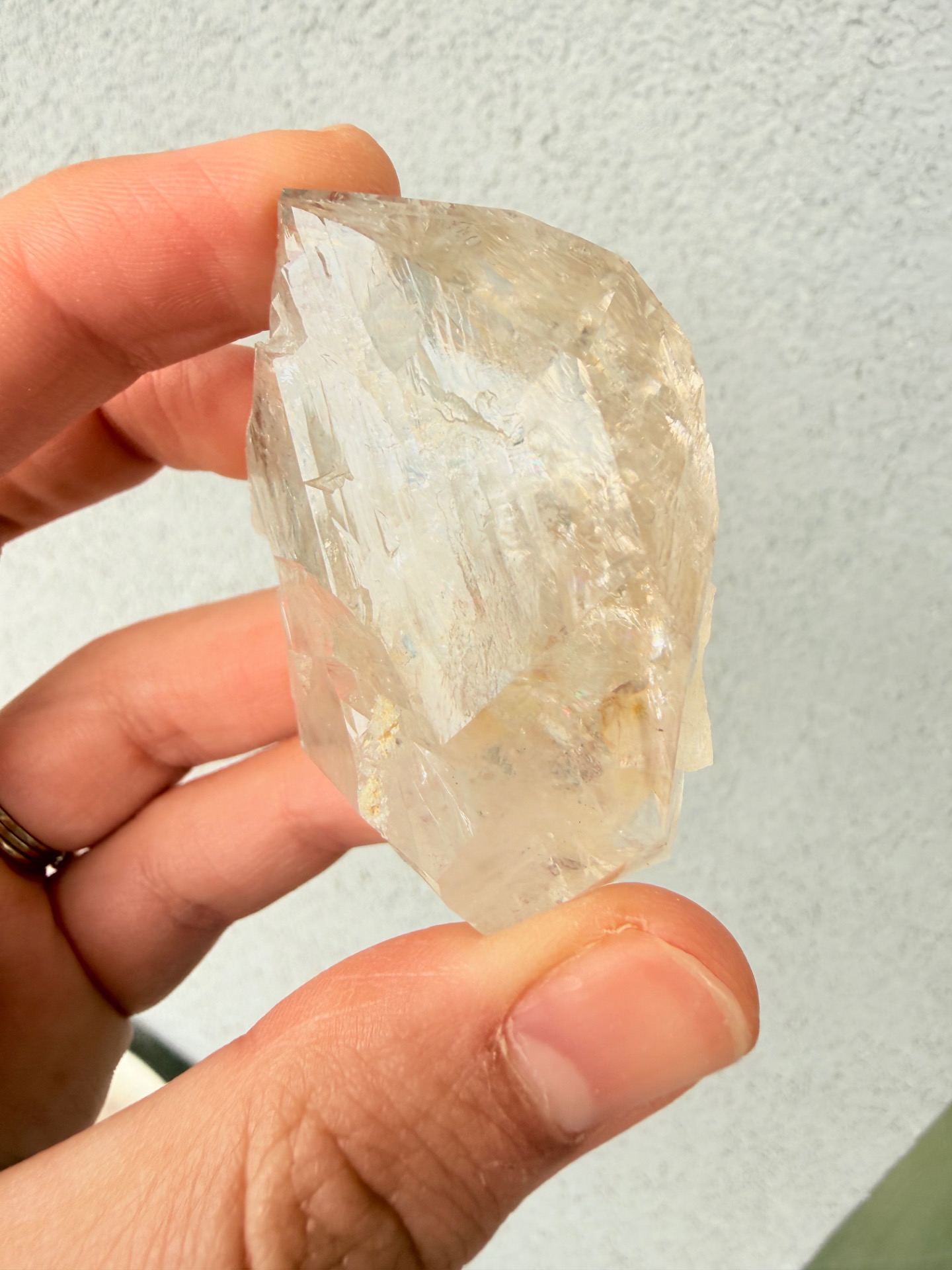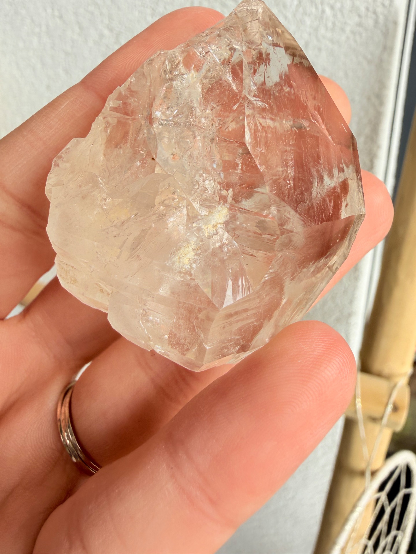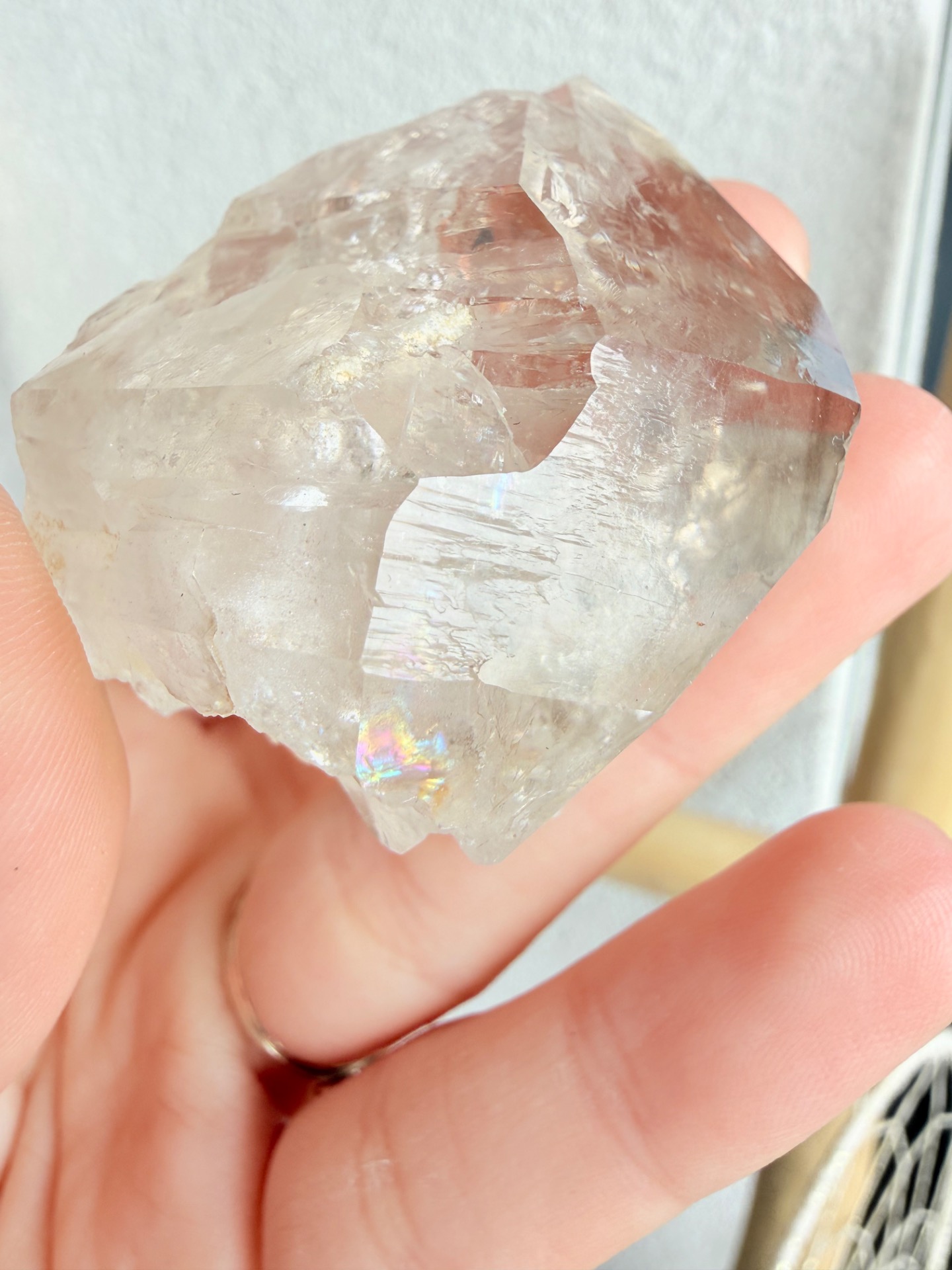 Tento jedinečný Herkimer diamant v surovej forme je výnimočný svojou prirodzenou krásou a silnou energiou. Kryštál má nádhernú kombináciu čírej a jemne tmavšej časti, ktorá vytvára fascinujúcu hru svetla a tieňa – ako symbol duality života.