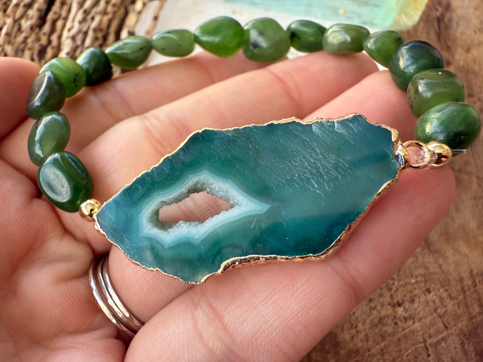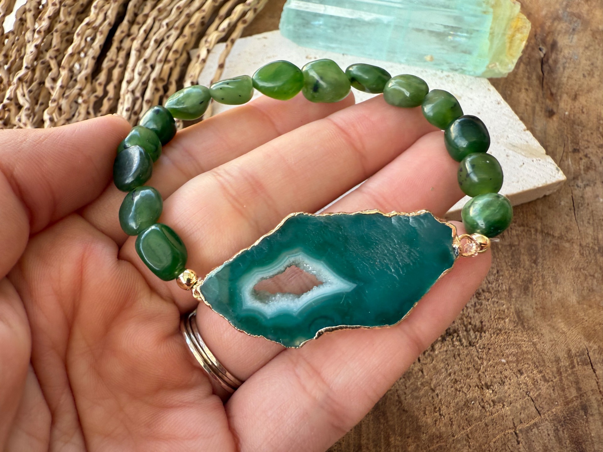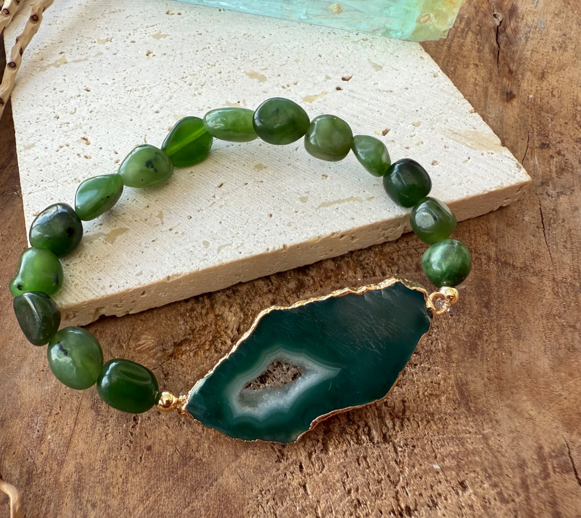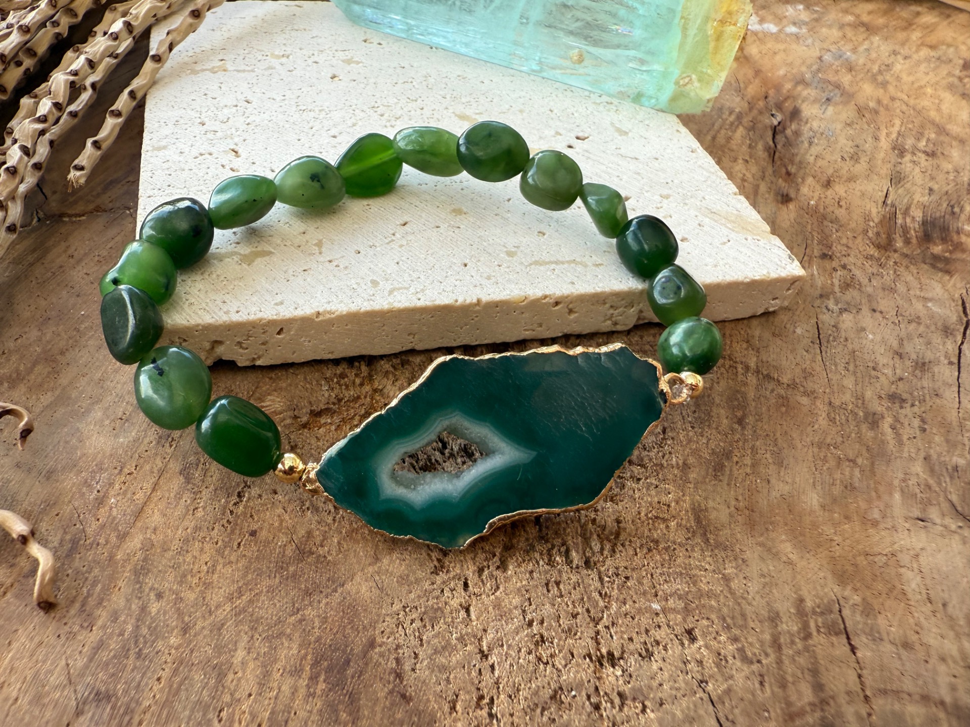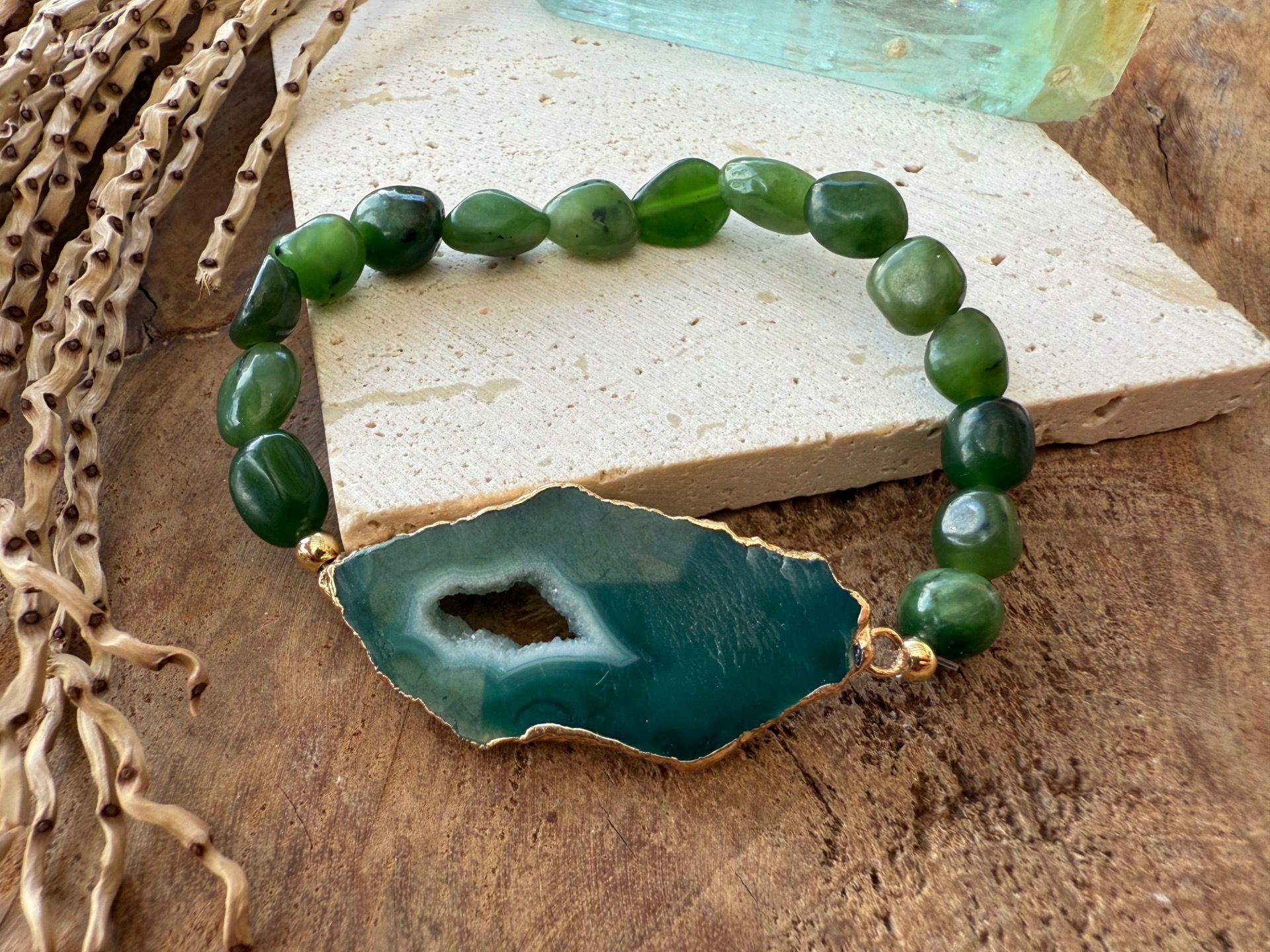 Náramok z minerálov zelený achát drúza + nefrit - podpora uzdravenia