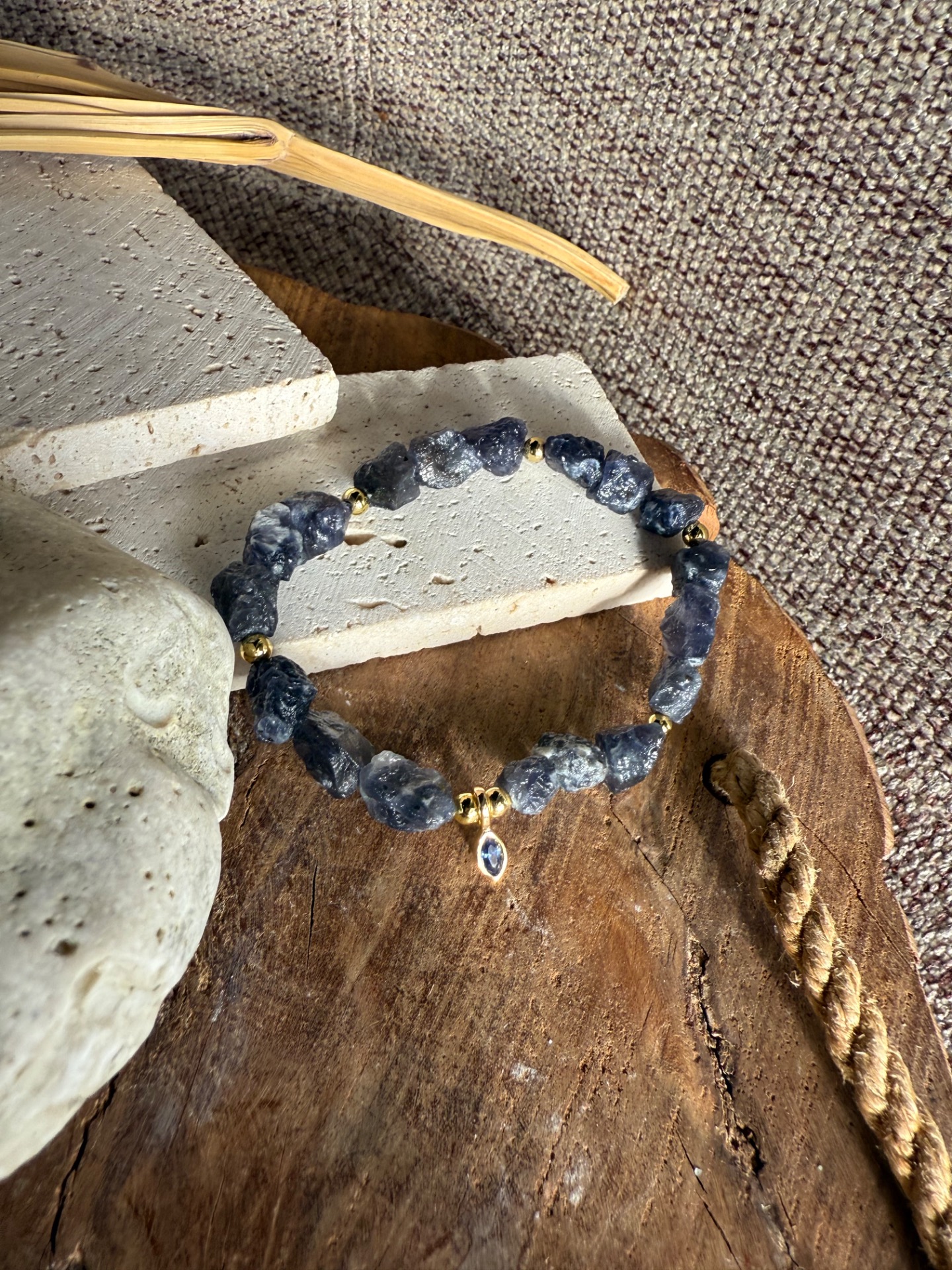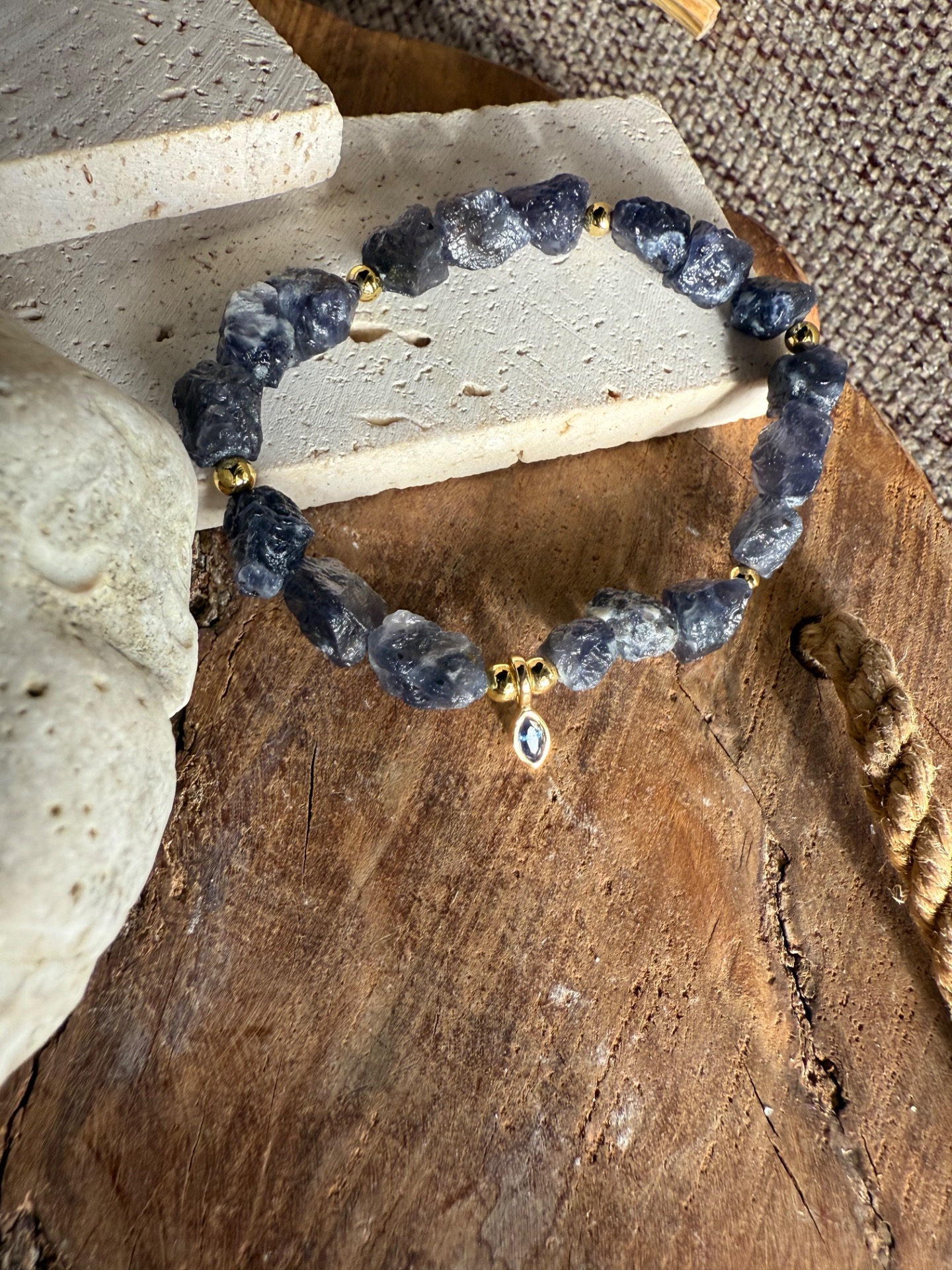 Objavte silu prírodného iolitu a prepojte sa s vlastnou intuíciou pomocou tohto jedinečného náramku. Každý kúsok je ručne vyrobený zo surového iolitu, ktorý svojou hlbokou modro-fialovou farbou evokuje pokoj, jasnosť a vnútornú múdrosť. Jemný prívěsek dodáva náramku nádych elegancie a zvýrazňuje jeho mystický charakter.