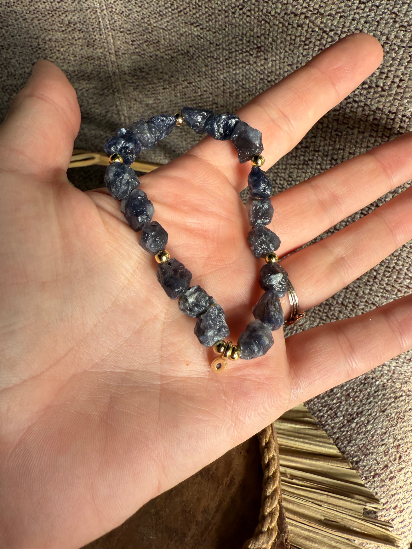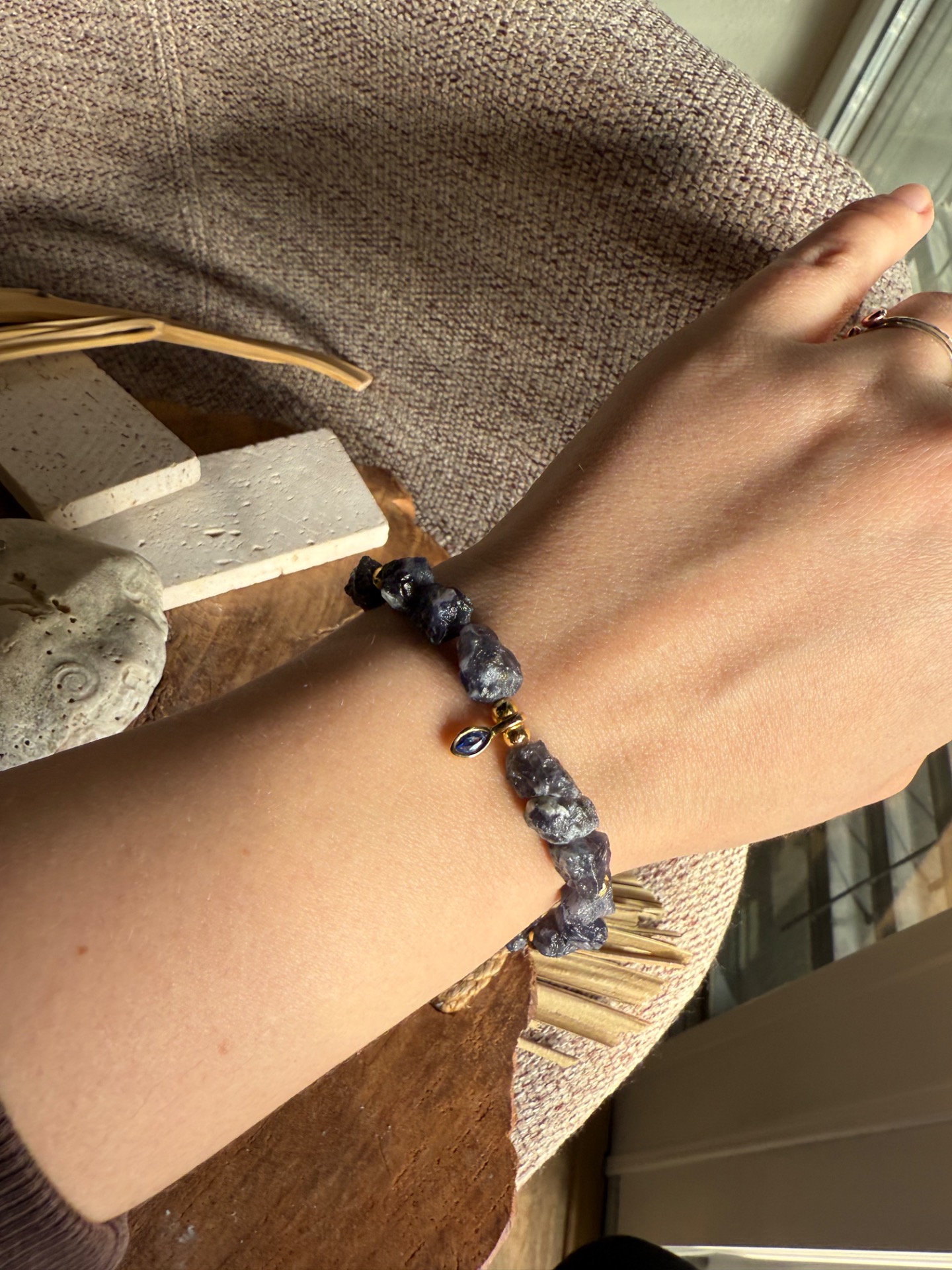 Náramok z minerálu iolit – Surový & Intuícia (17 cm)