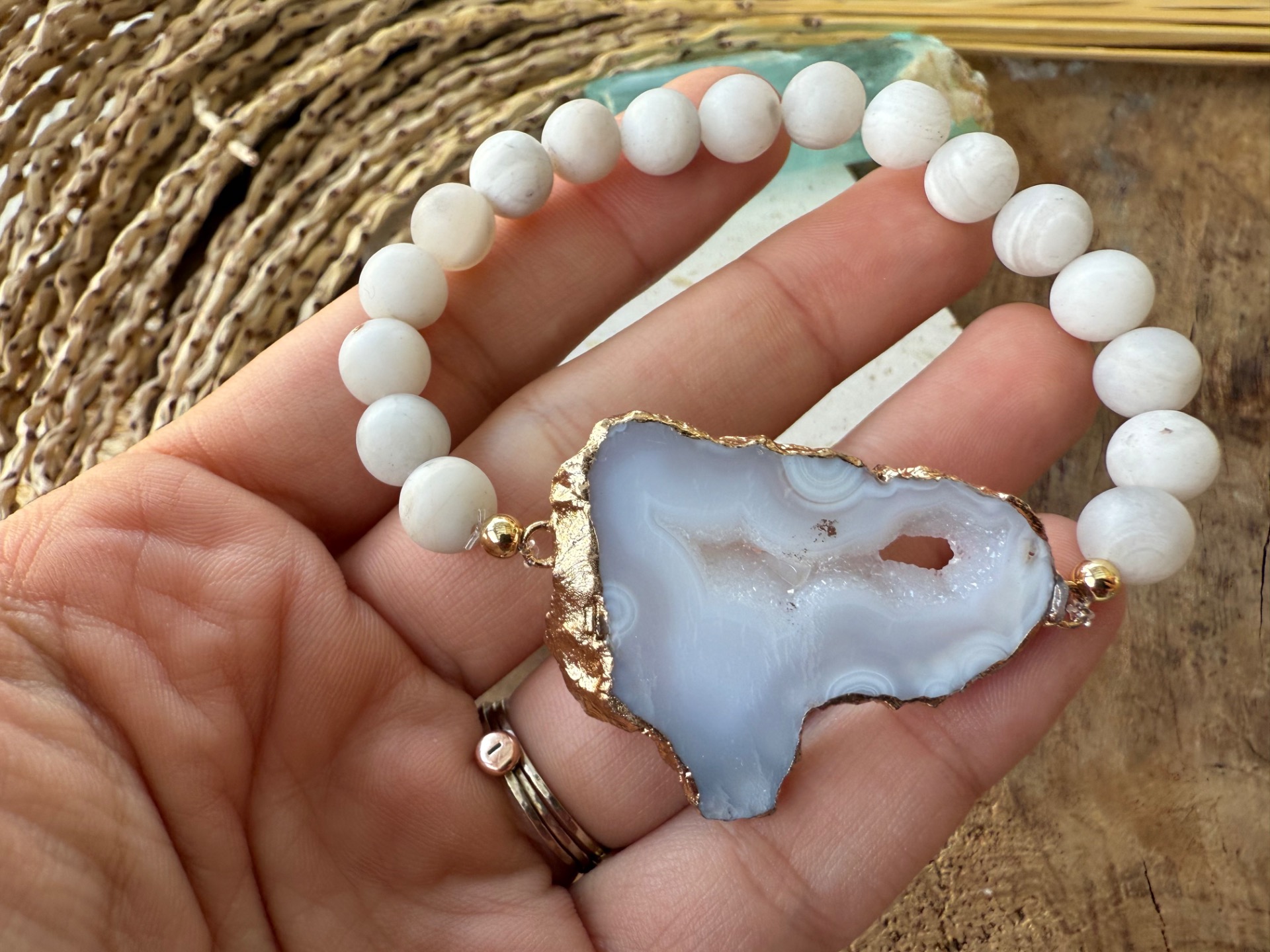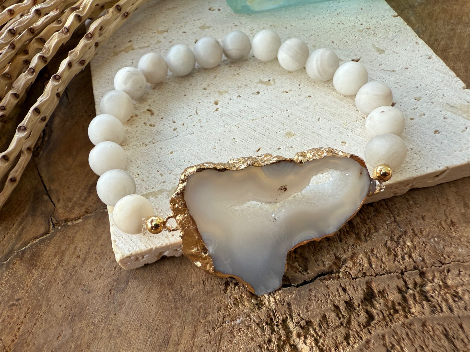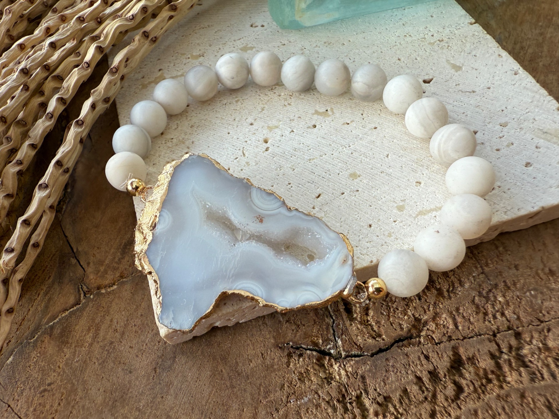 Ľahkosť bytia – Matný sivo-biely achát 8mm + Achátová drúza náramok
