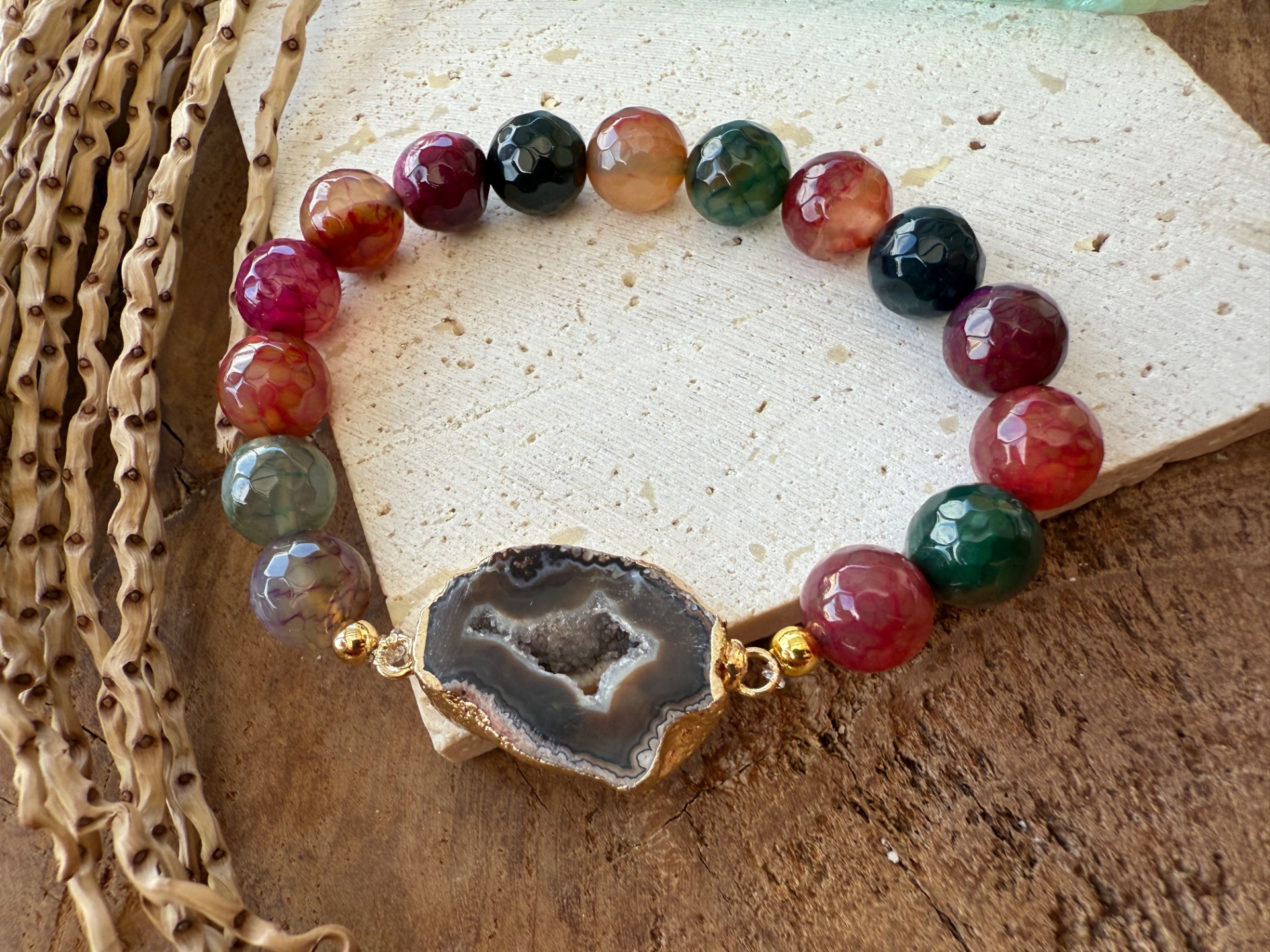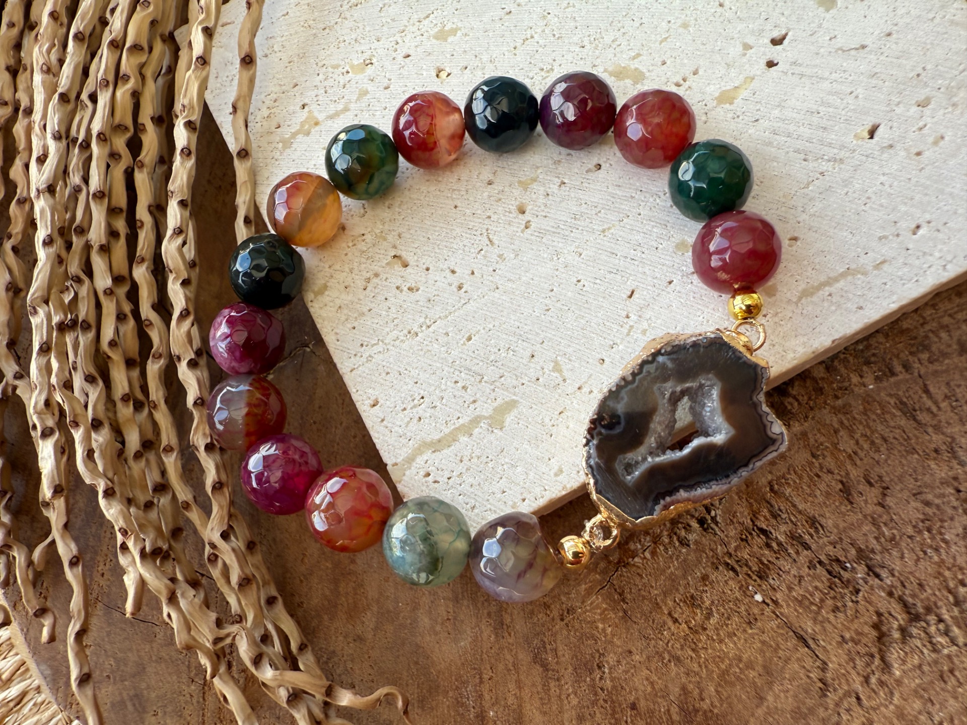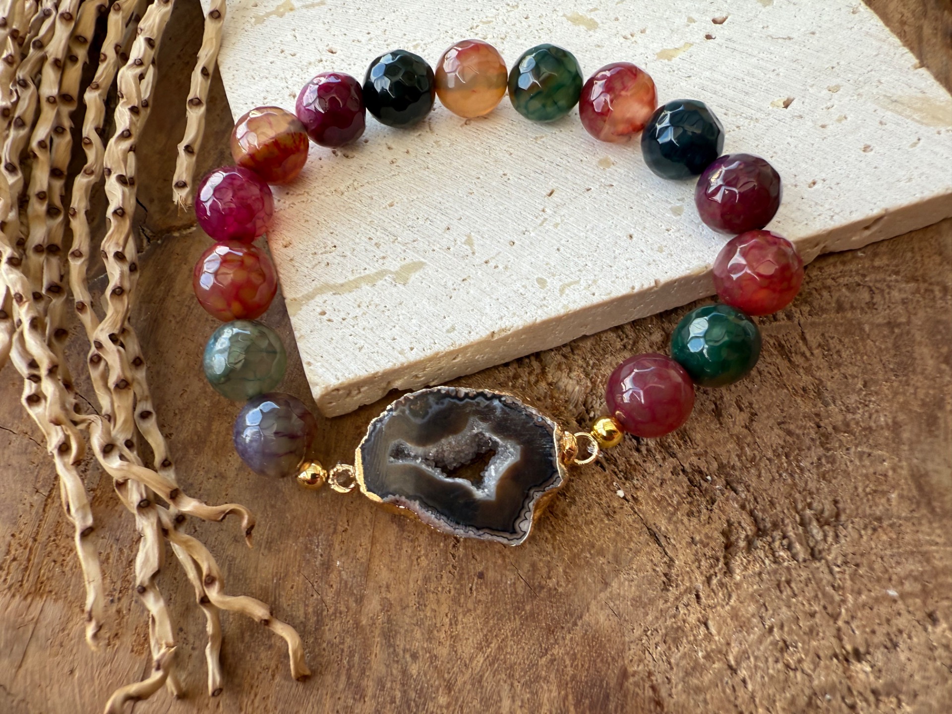 Náramok z farebného achátu +achát drúza - jesenná harmónia č.2