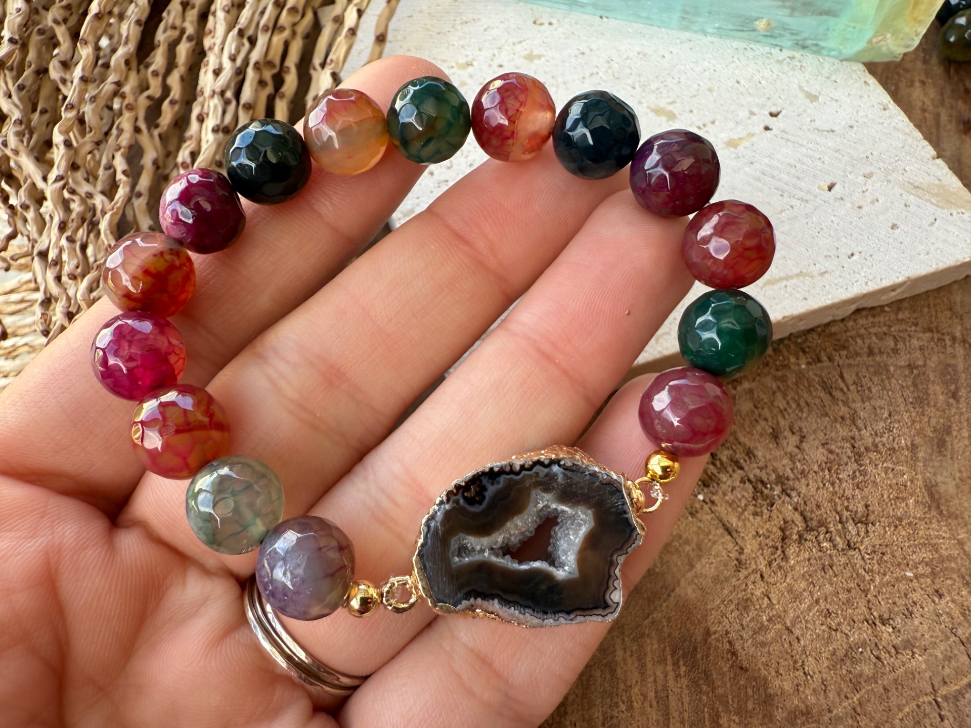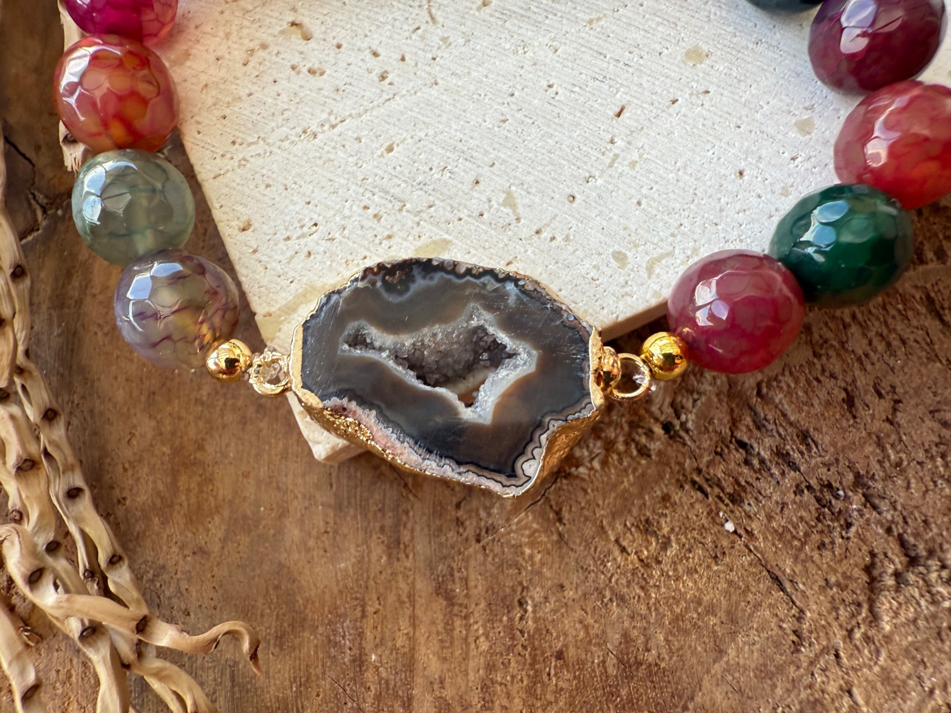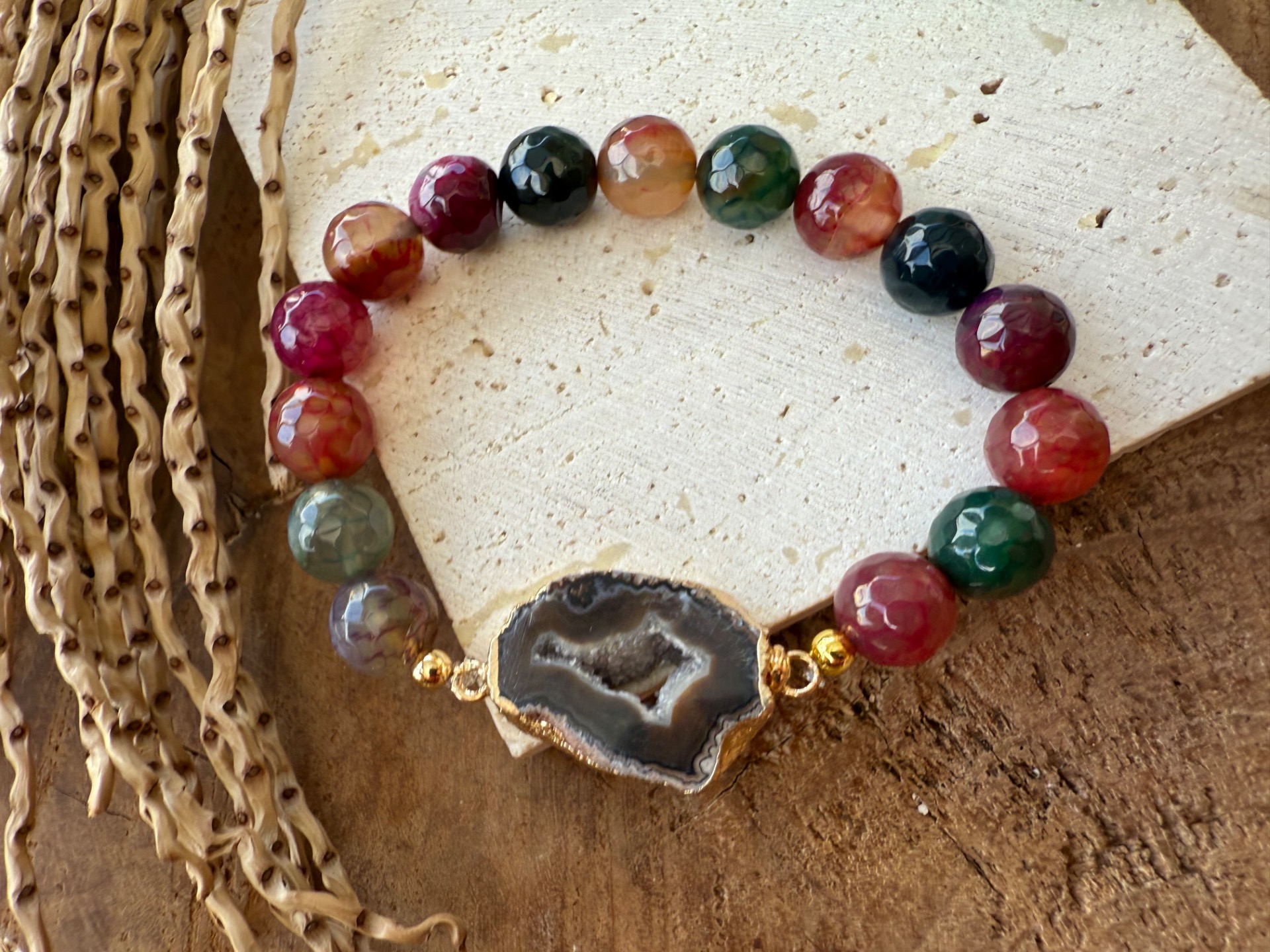 Náramok z farebného achátu +achát drúza - jesenná harmónia č.2