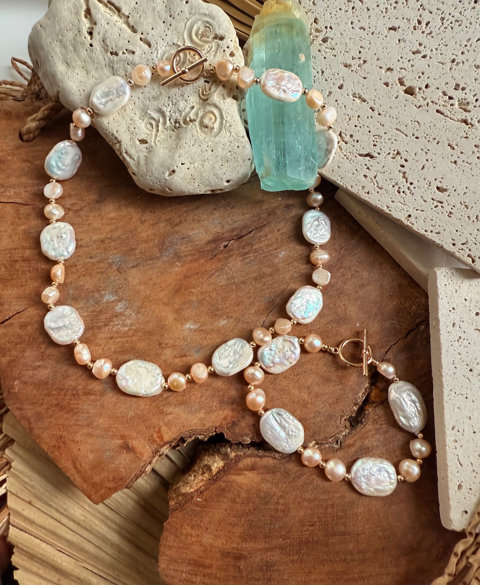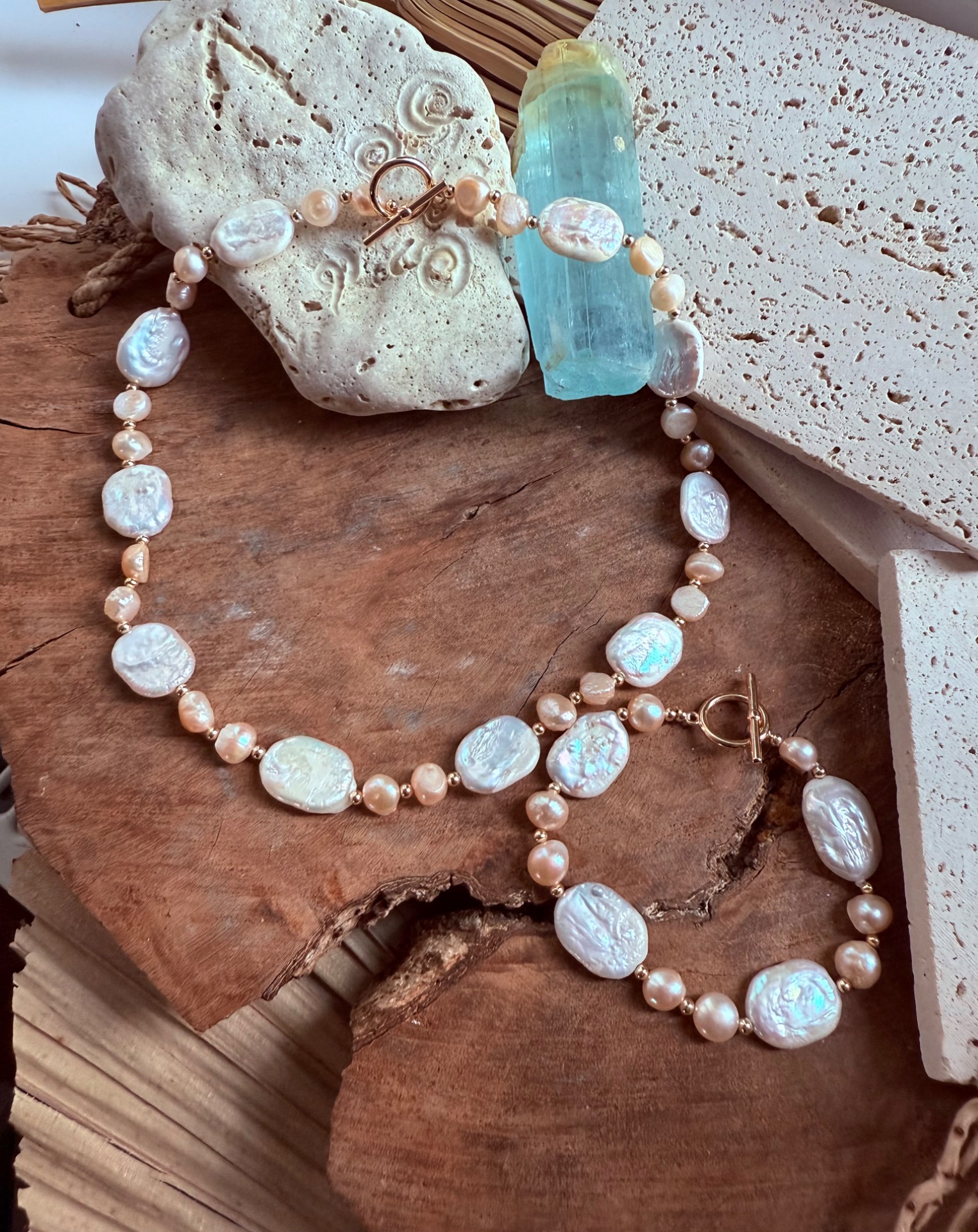 Afrodita – Set náhrdelníka a náramku z riečnych a barokových perál