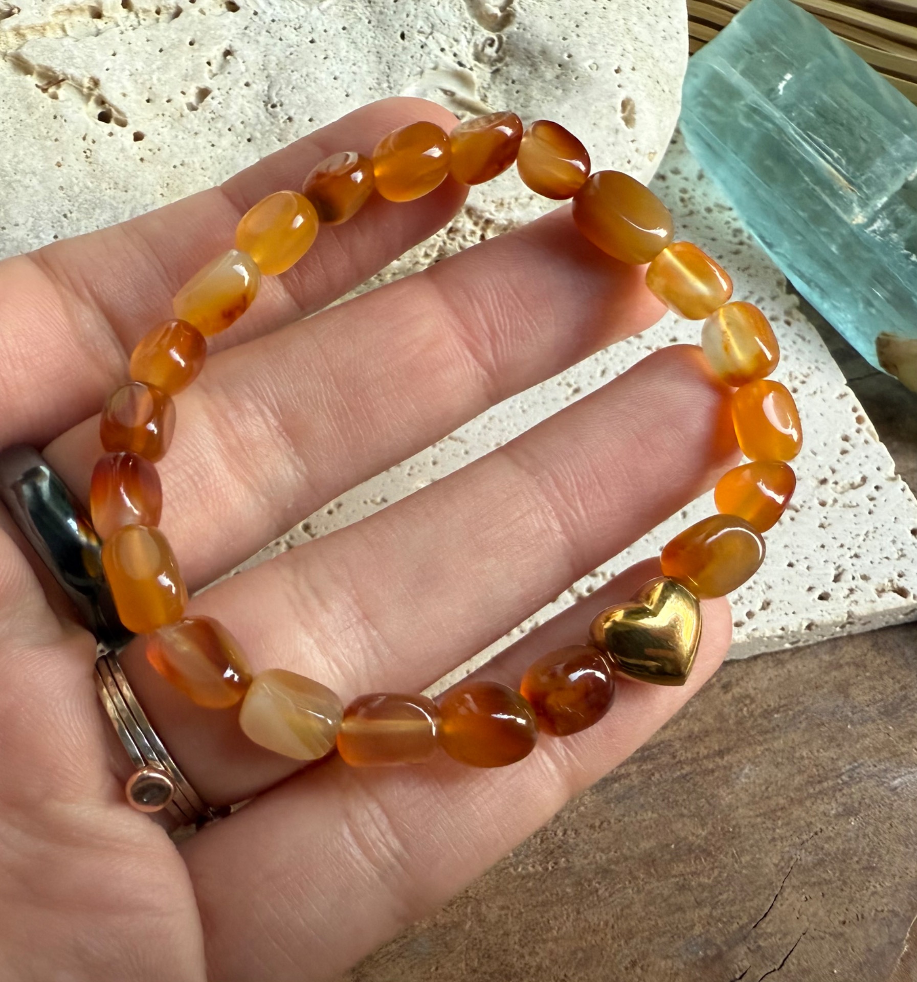 Tento náramok spája energiu karneolu s jemným symbolom srdca, čo z neho robí krásny a silný doplnok pre vás alebo vašich blízkych.