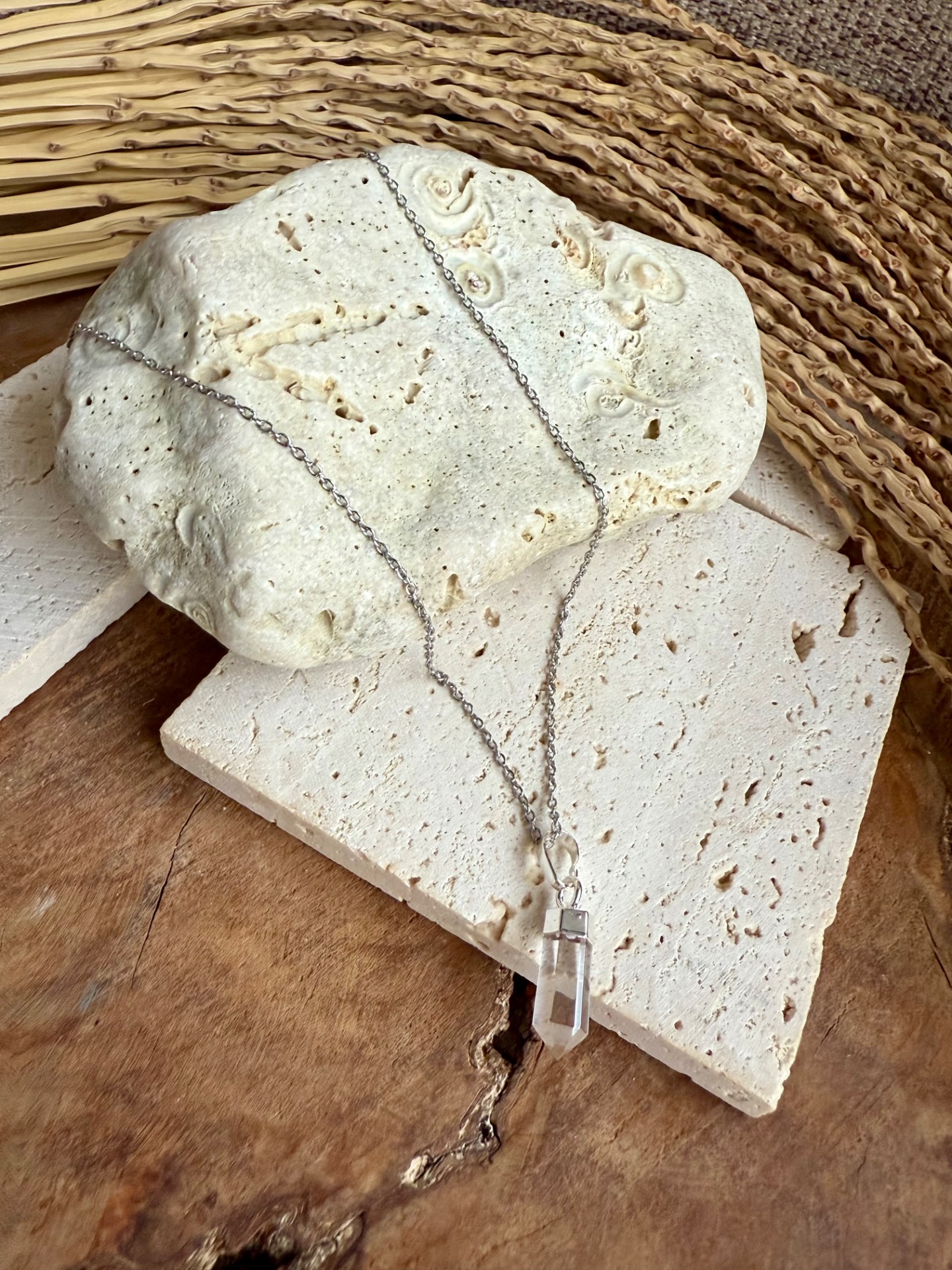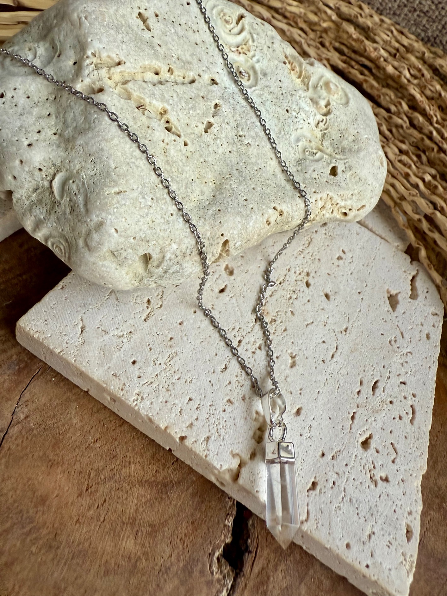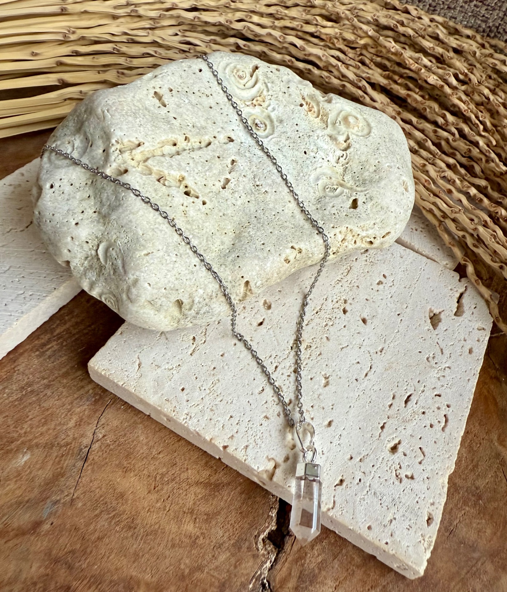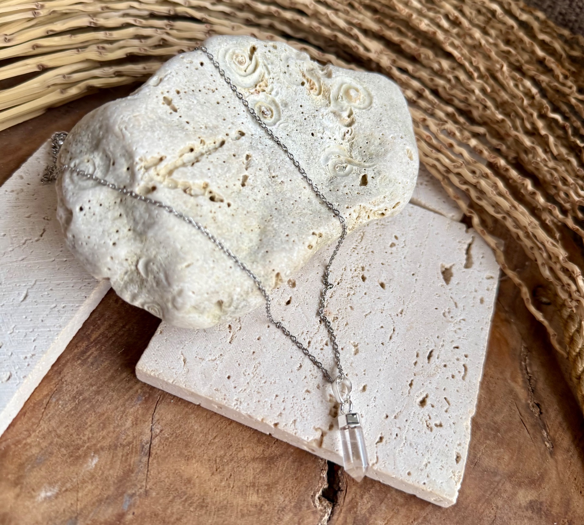 Jemný krištáľový prívesok na elegantnej nerezovej retiazke prináša čistotu energie, rovnováhu a vnútorný pokoj priamo k vám.