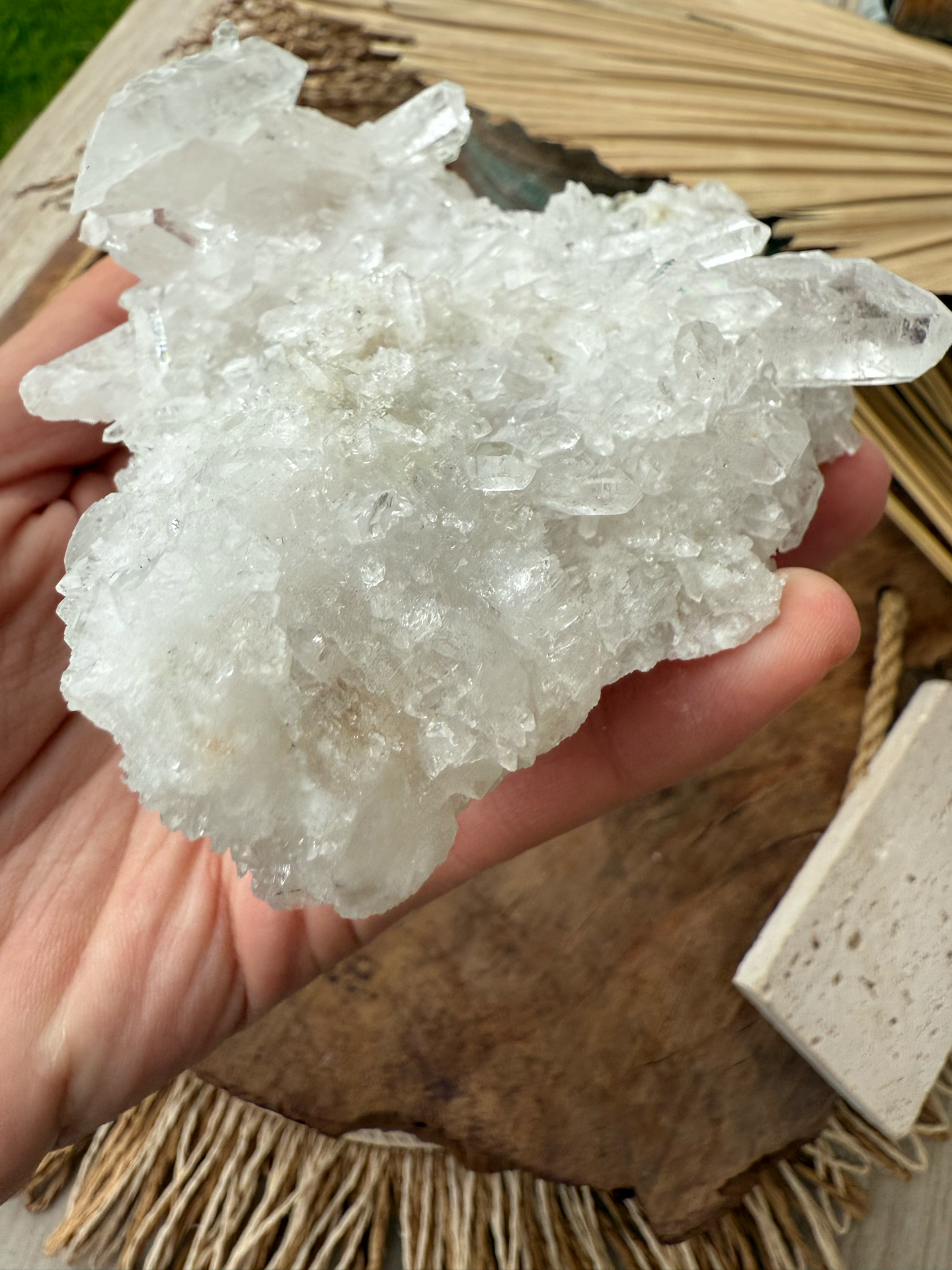 V priestore pôsobí ako dokonalý harmonizátor. Krištáľová drúza by nemala chýbať v žiadnom domove – čistí prostredie, neutralizuje negatívne vplyvy, zharmonizuje energiu medzi ľuďmi a jemne nabíja ostatné kamene vo svojom okolí. Vnáša do miestnosti pocit pokoja, svetla a obnovenej rovnováhy.