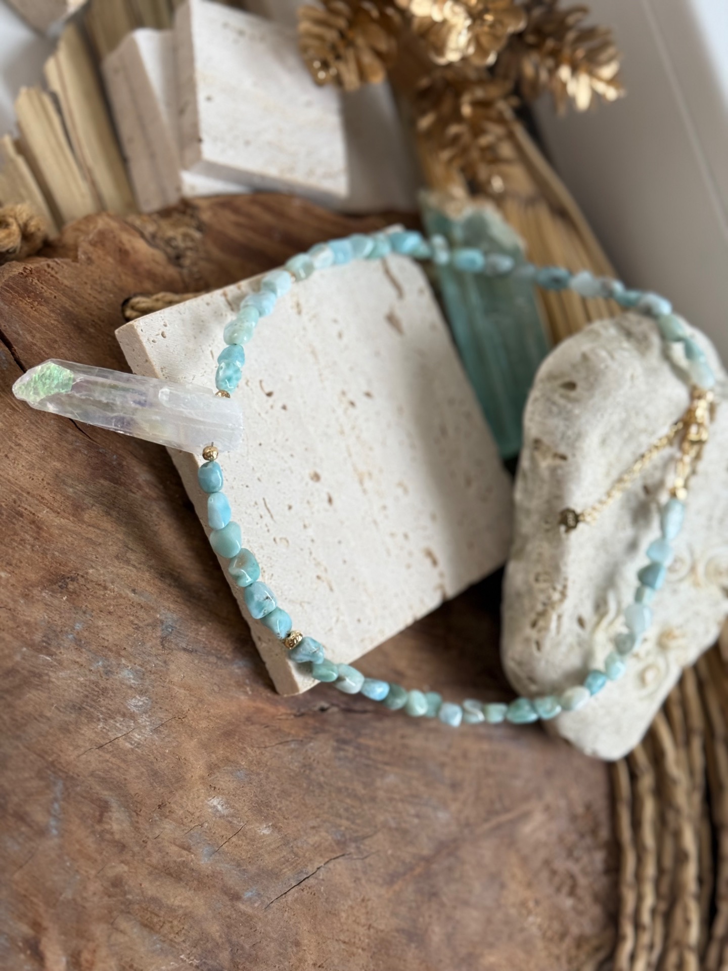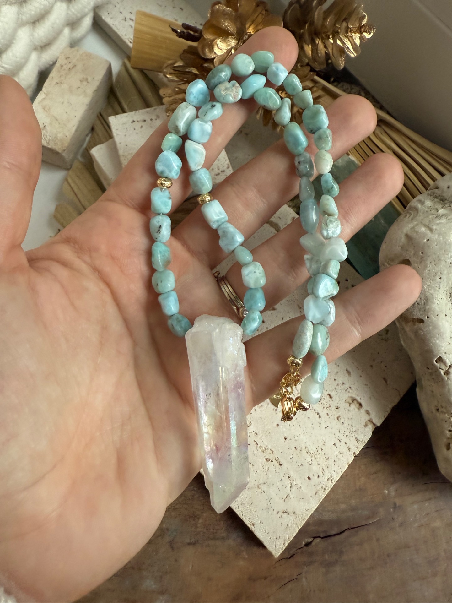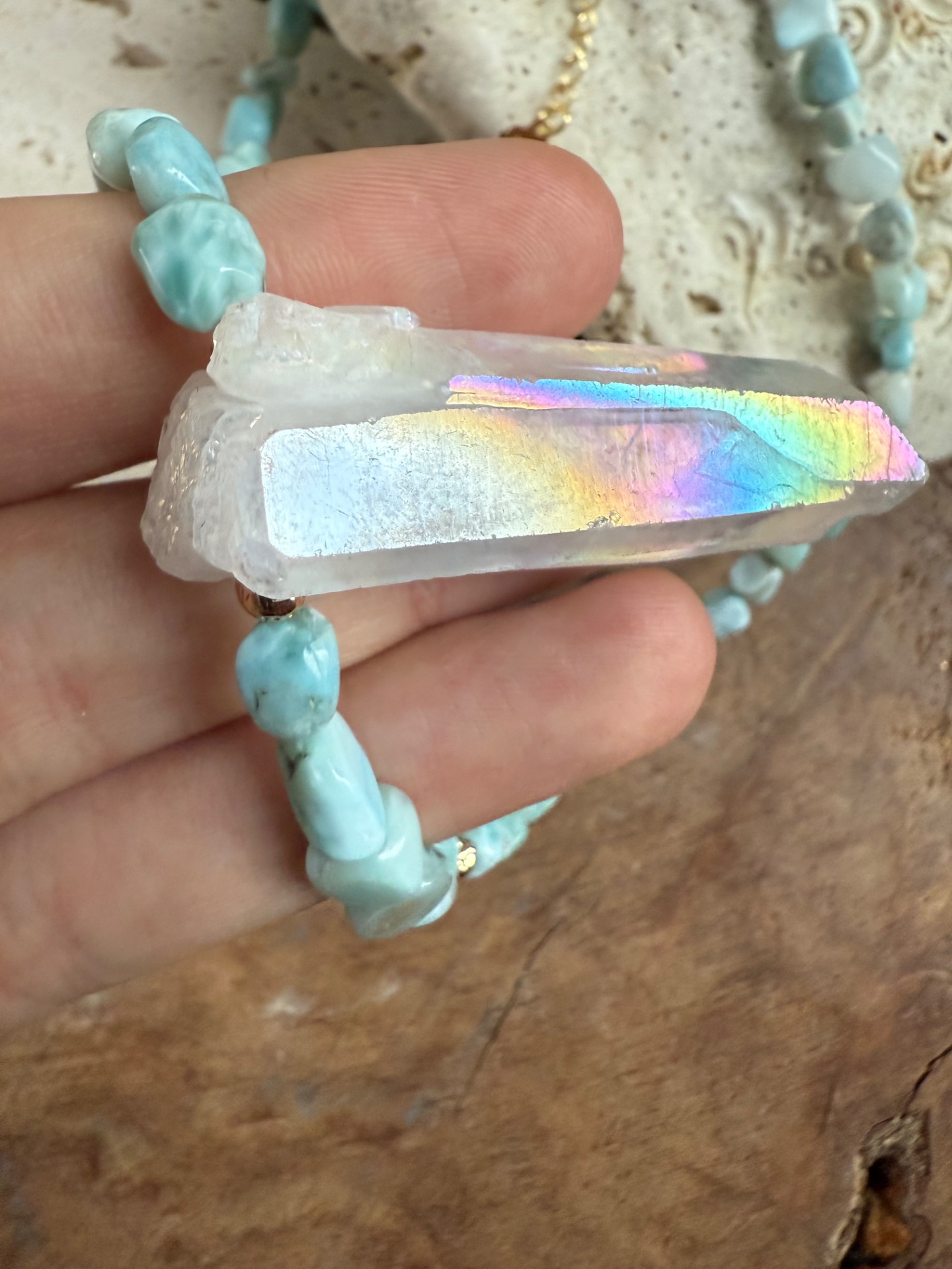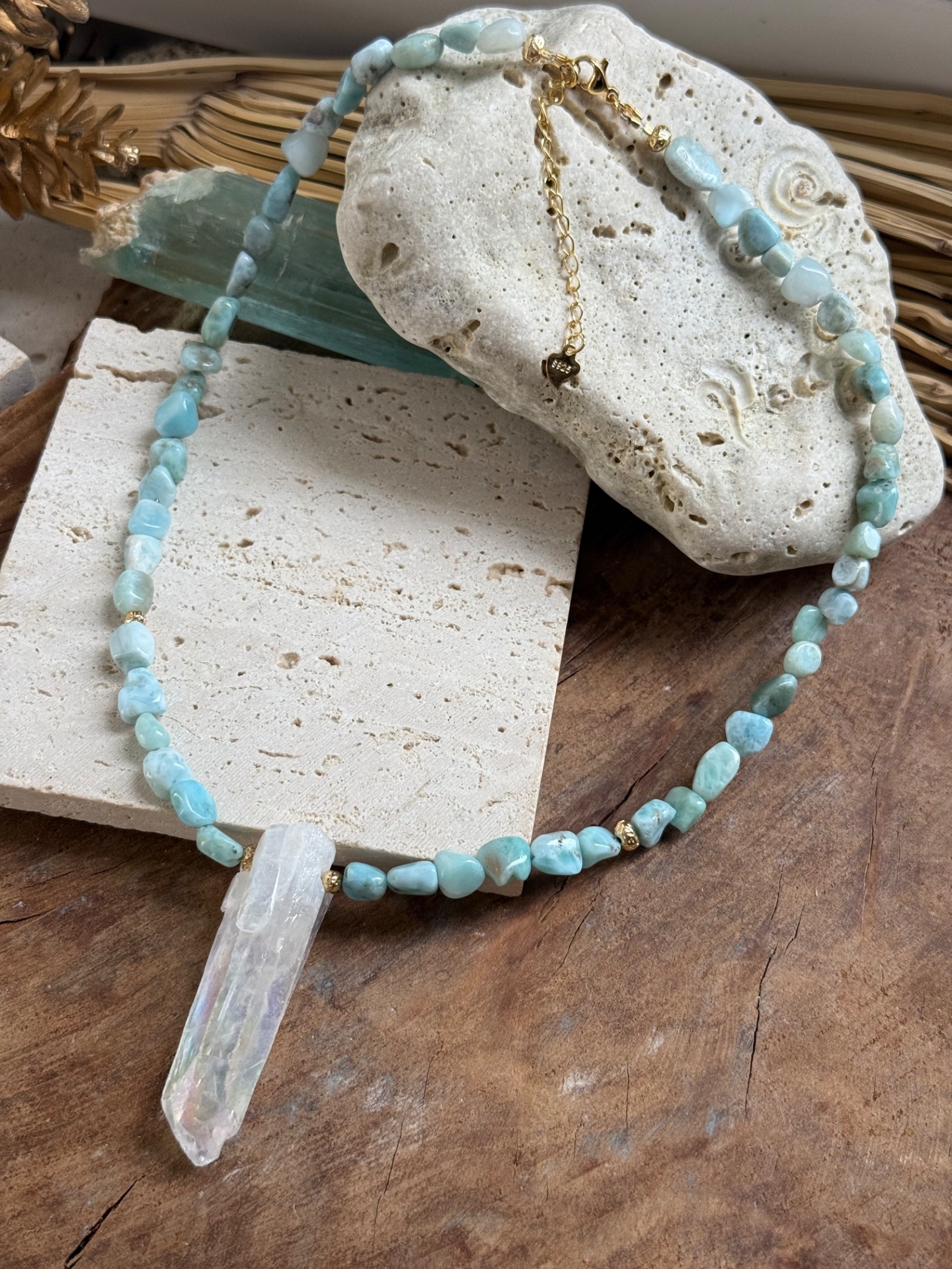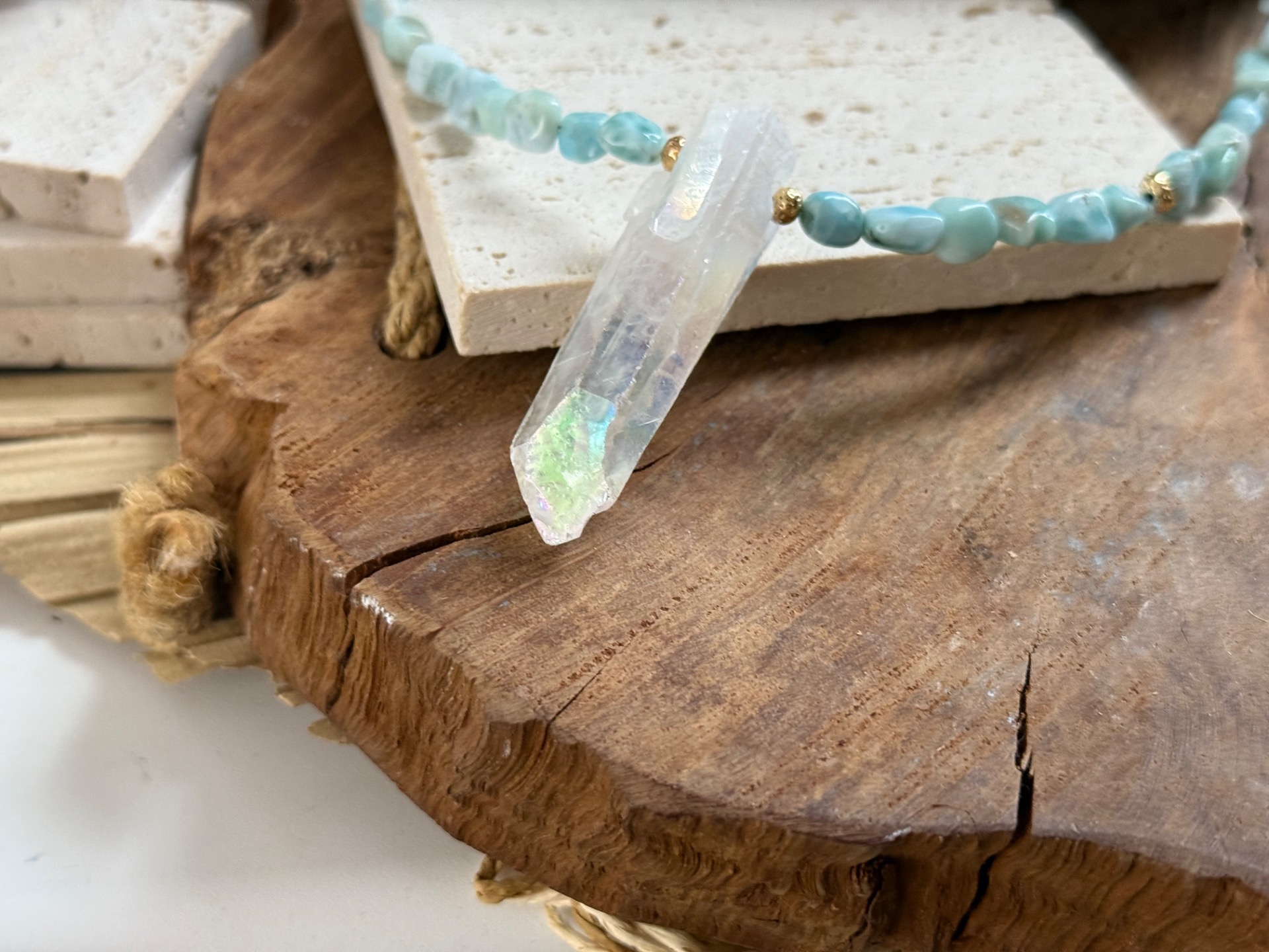 Náhrdelník z Larimaru & Aqua Aura krištáľu – svetlo oceánu a duše